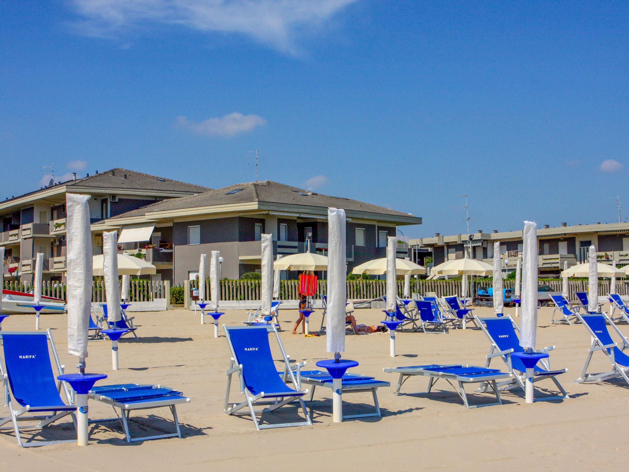 Holiday development "Green Marine, Palme, Ismare". 2 km from the centre of Silvi Marina, 50 m from the sea, 50 m from the beach. For shared use: garden, parking (limited number of spaces, extra). Grocery, restaurant, bar 100 m, bus stop 2.3 km, sandy beach 50 m. Nearby attractions: Pescara. Please note: no lift. The photograph shows a typical example.