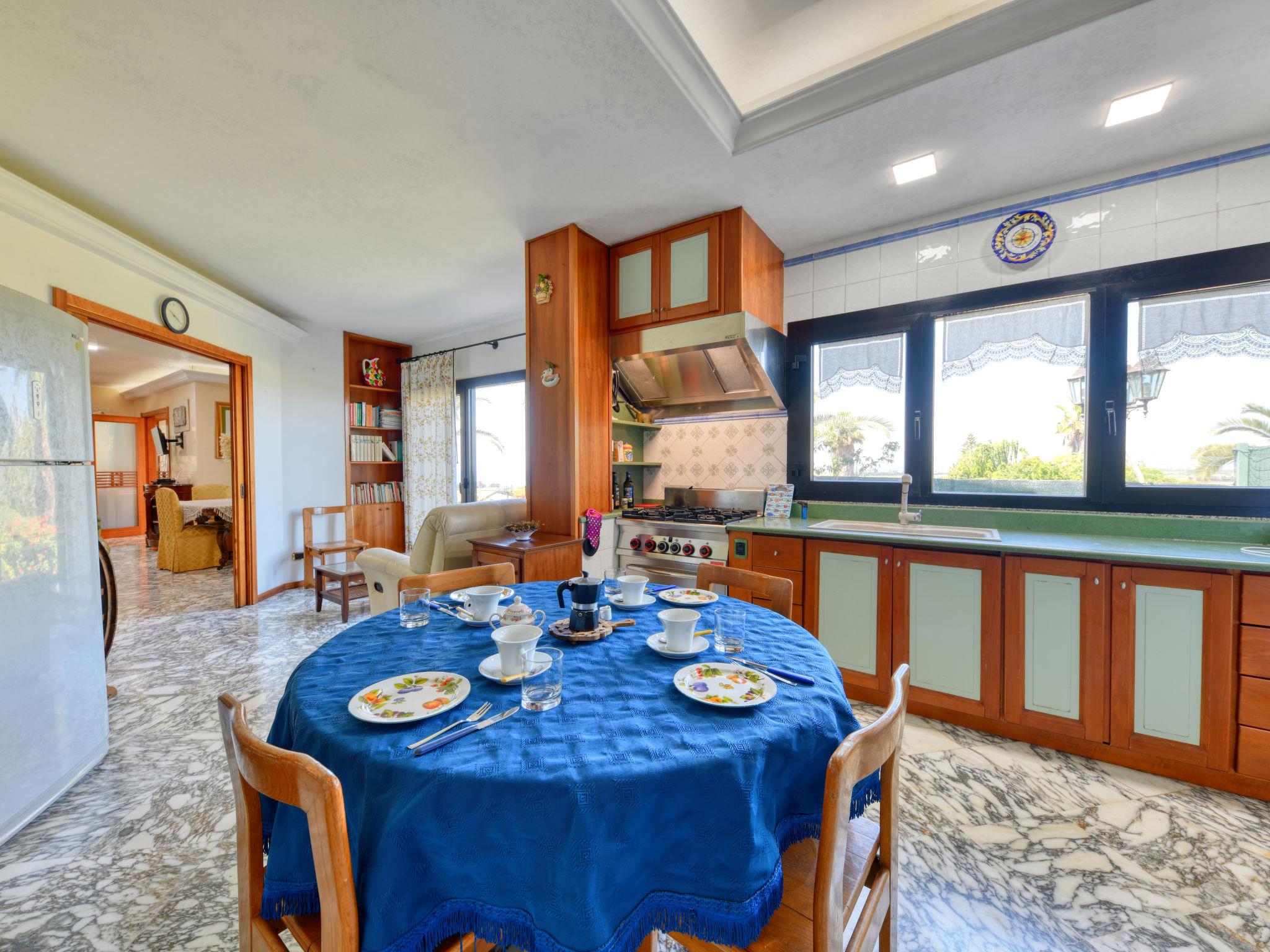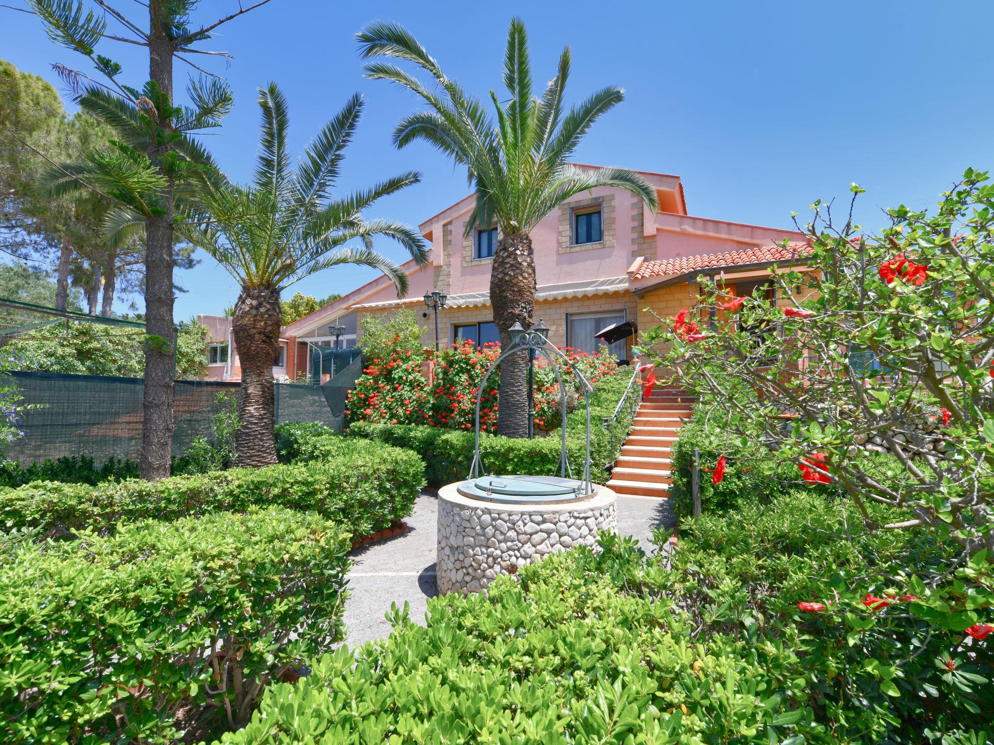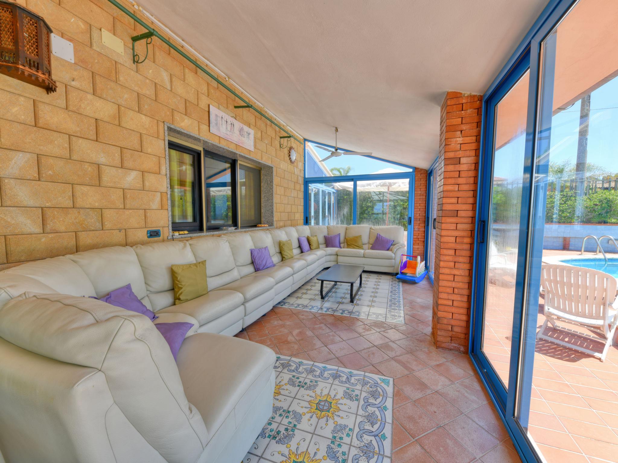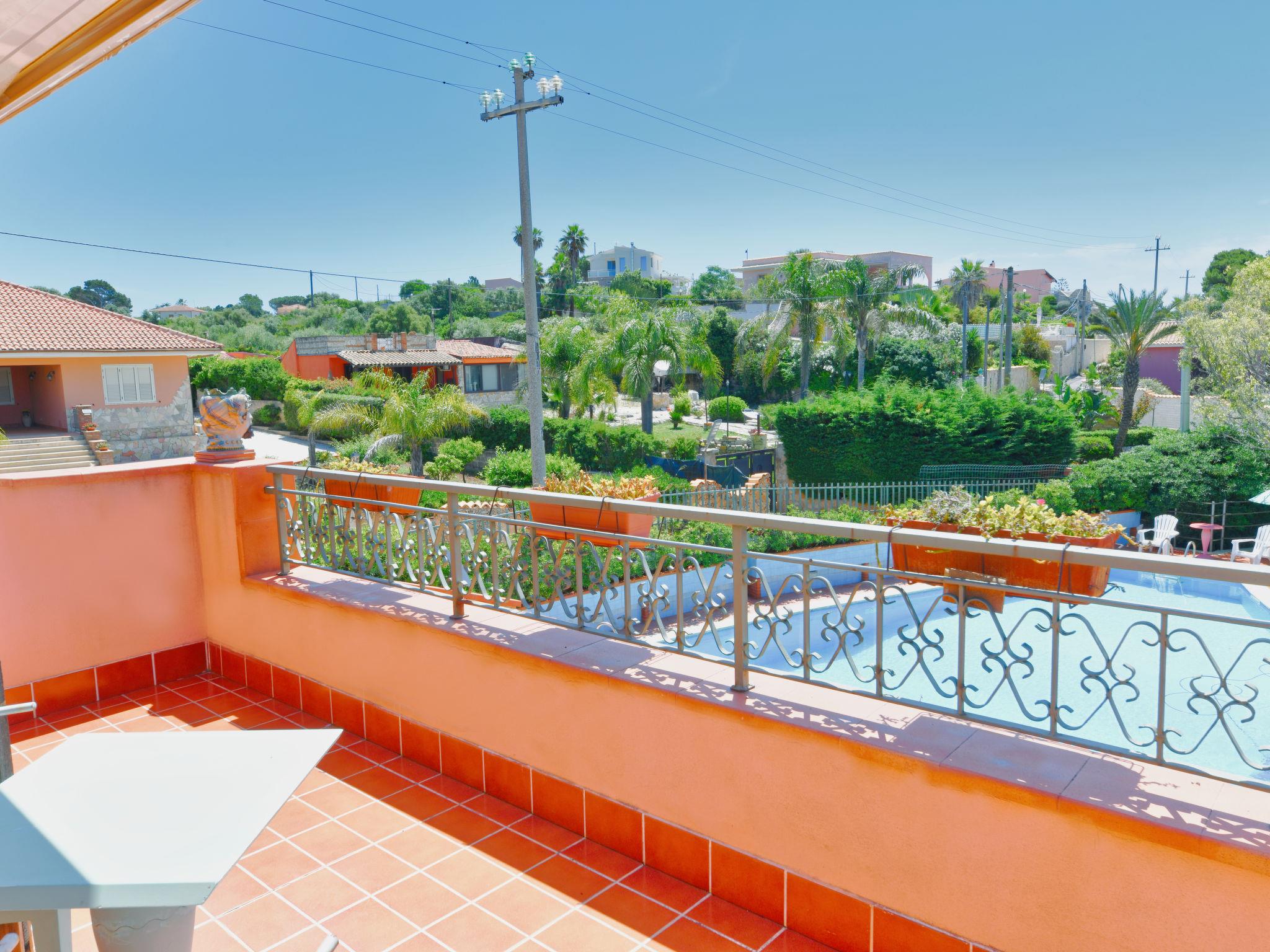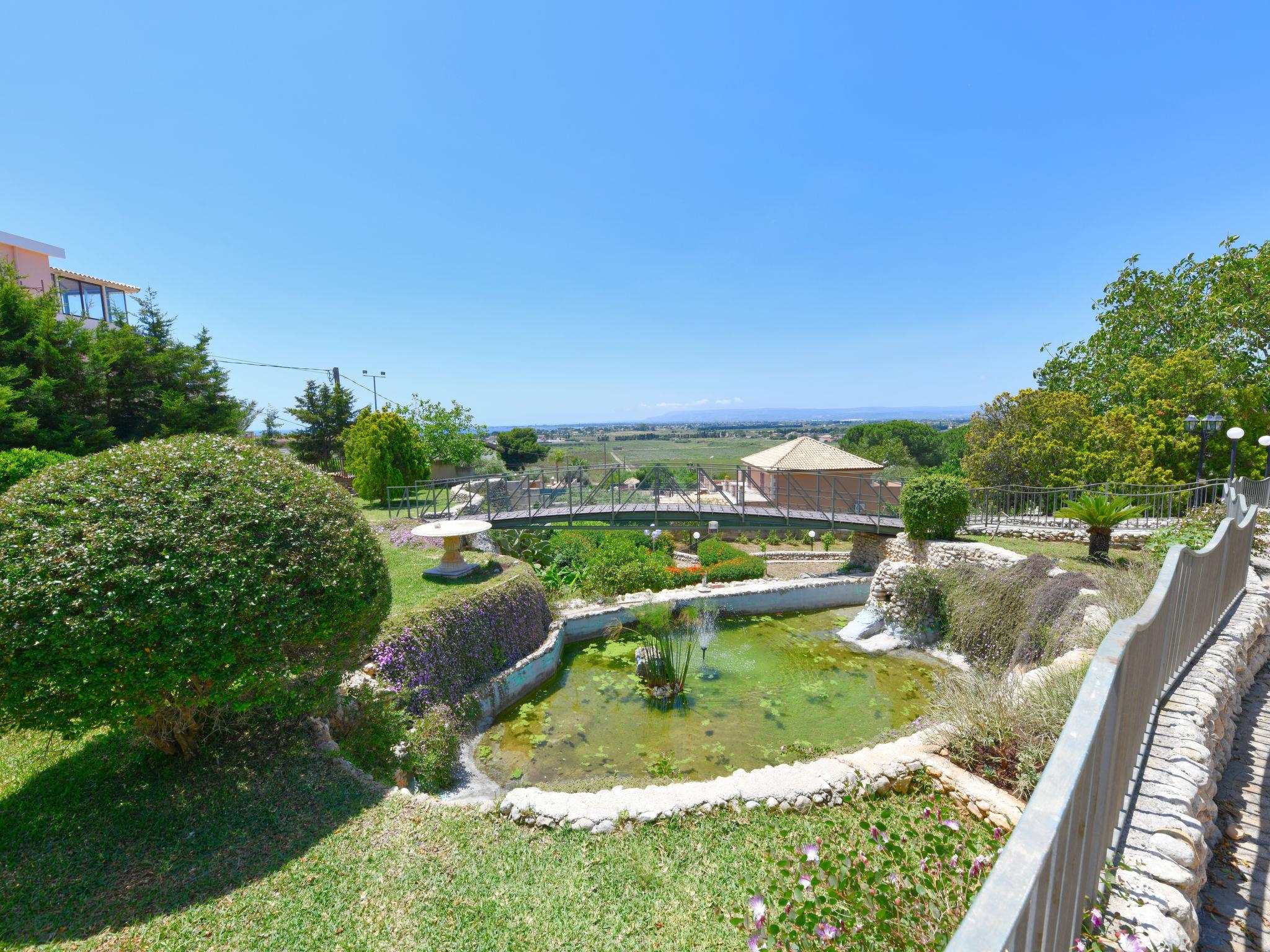 Large villa "Vella", surrounded by meadows. In the resort Terrauzza, 10 km from the centre of Siracusa, in a quiet, sunny position, 700 m from the sea, 700 m from the beach. Private: property 3'000 m2 (fenced), large, well-kept garden 2'100 m2 with lawn and trees, swimming pool (80 m2, depth 120 - 150 cm, seasonal availability: 01.Apr. - 31.Oct.). Outdoor shower, barbecue. In the house: fitness room. Parking. Bus stop 200 m, railway station "Siracusa" 9 km, sandy beach "Arenella" 5.5 km, rocky beach "Terrauzza" 700 m. Nearby attractions: Avola 23 km, Noto 32 km, Marzamemi 50 km, Ispica 53 km, Isola delle Correnti Punto Sud Sicilia 58 km, Modica 68 km. Well-known ski regions can easily be reached: Punto Partenze Sud Escursione Etna 105 m. Well-known lakes can easily be reached: Riserva Naturale Laghetti del Cassibile 34 km. Hiking paths: Riserva Naturale Faunistica di Vendicari 40 km. Please note: car recommended. The owner lives in the same residence.