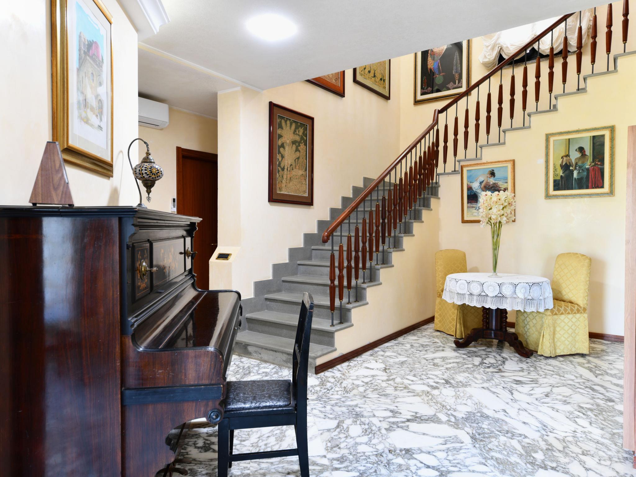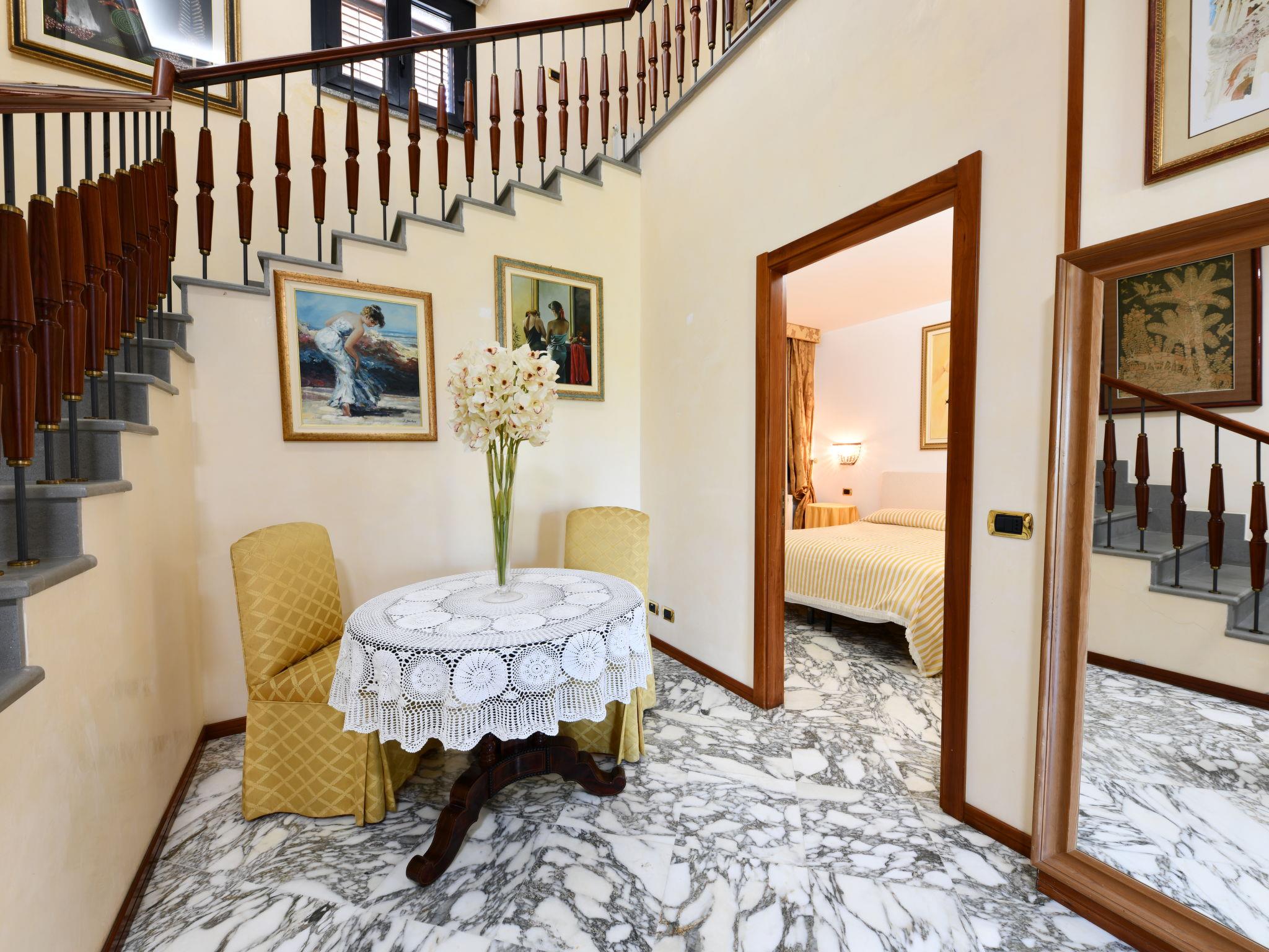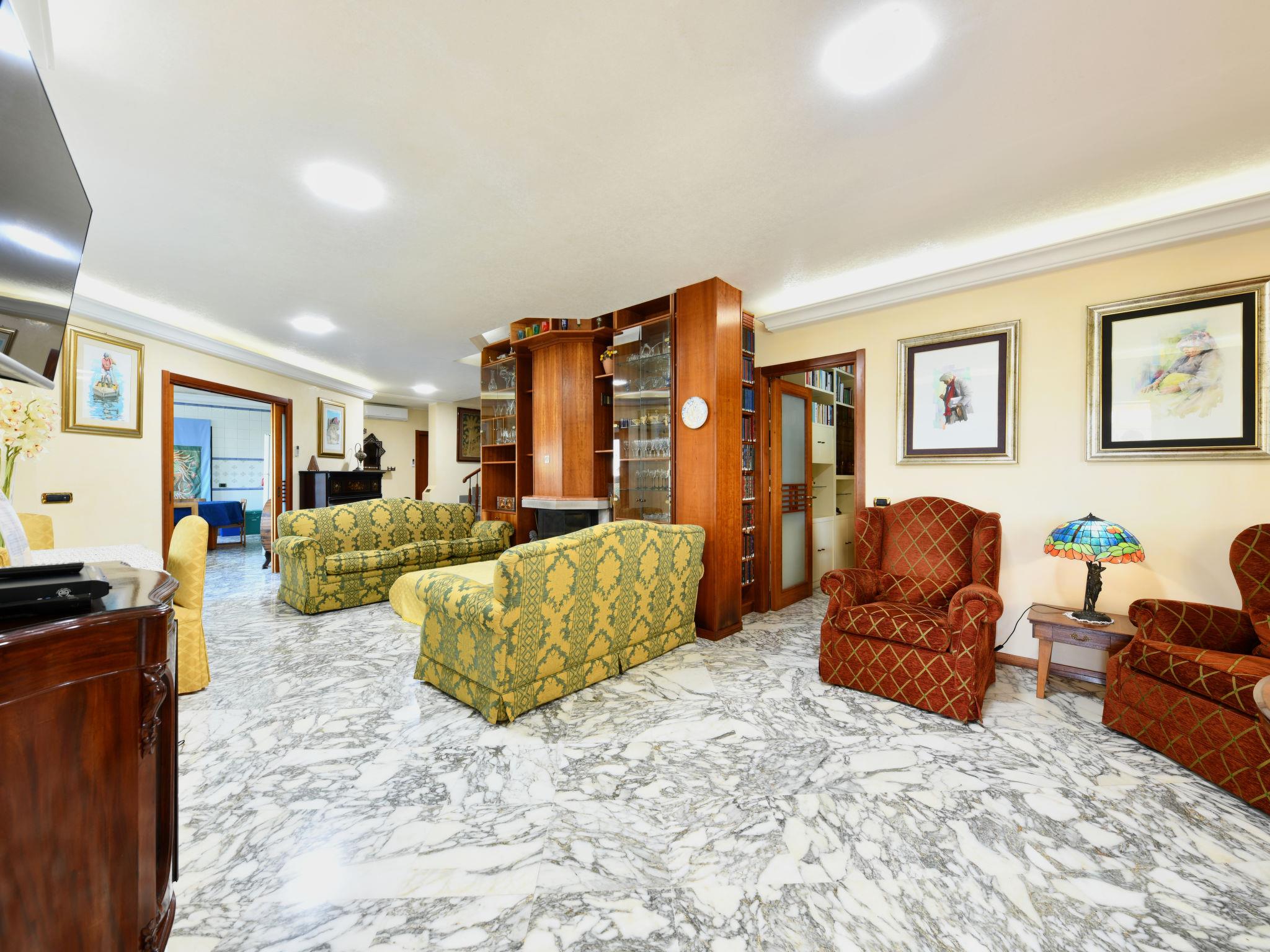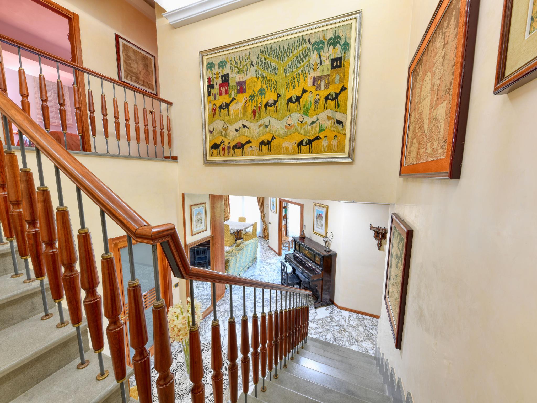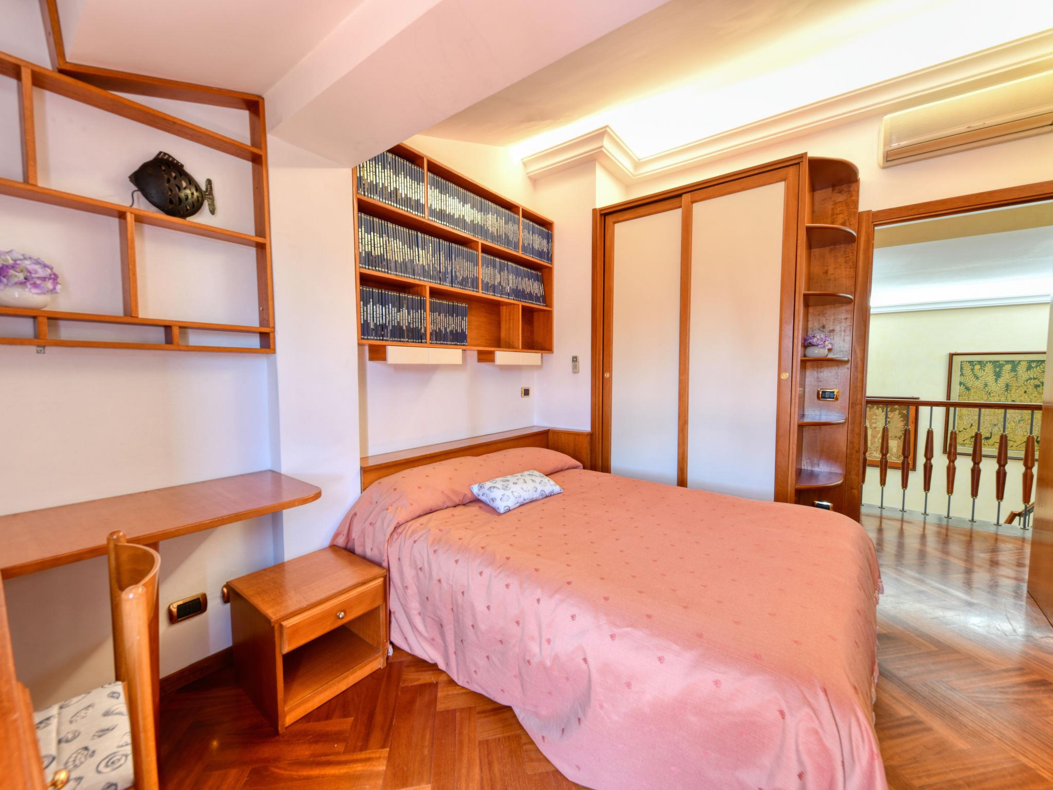 7-room villa 220 m2 on 2 levels, on the ground floor. Comfortable and stylish furnishings: entrance hall. Large living/dining room with open-hearth fireplace, TV, air conditioning and forced-air heating. Exit to the terrace. Office with air conditioning and forced-air heating. 1 double bedroom with 1 double bed (140 cm), air conditioning and forced-air heating. Large kitchen (mini-oven, oven, dishwasher, Gas stove, 4 gas rings, toaster, microwave) with dining table, Scandinavian wood stove. Exit to the garden. Shower/bidet/WC. Heating, air-conditioning, forced-air heating. Heating available only from 01.12. to 31.03. Upper floor: 1 double bedroom with shower/bidet/WC, air conditioning and forced-air heating. Exit to the terrace. 1 double bedroom with 1 double bed (140 cm), shower/bidet/WC, air conditioning and forced-air heating. Exit to the terrace. 1 double bedroom with bath/shower/bidet/WC, air conditioning and forced-air heating. Exit to the terrace. Parquet floors. Small terrace 6 m2, small terrace 8 m2, porch 16 m2. Terrace furniture, balcony furniture, barbecue, deck chairs, conservatory. Beautiful view of the sea, the lake, the swimming pool and the garden. Facilities: washing machine, iron, children's high chair, baby cot for up to 2 year olds, hair dryer, logs (extra). Internet (WiFi, free). Parking (3 cars). Please note: smoke alarm, fire extinguisher. No internal connecting door between the separated properties. The pool mentioned in the description is for private use. IT089017C2W5ZGNSL3