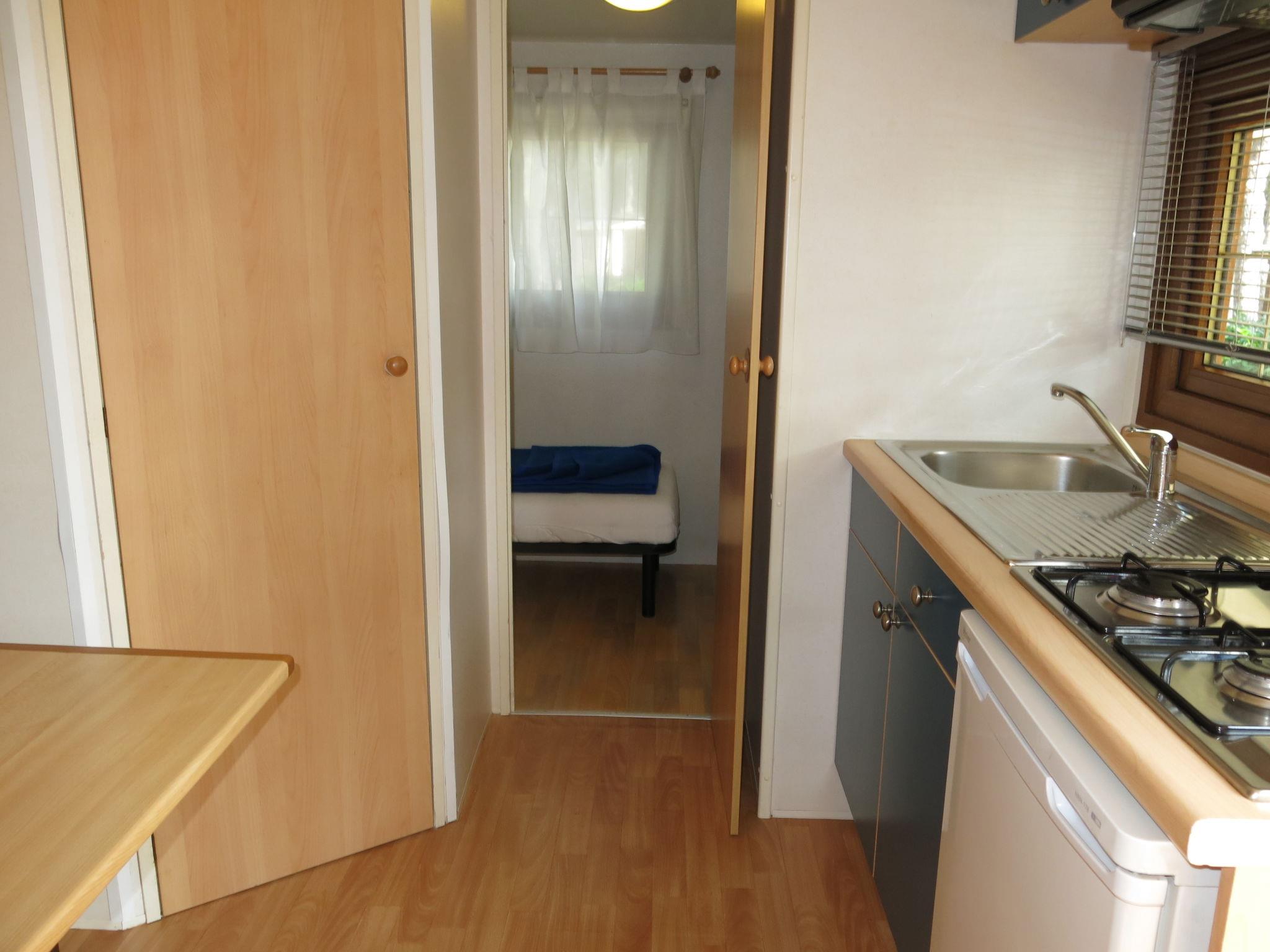 "Baia Comfort", 3-room mobile home 22 m2. Practical furnishings: living/dining room with dining table and digital TV. 1 room with 1 french bed (140 cm), separate WC. 1 room with 2 beds (70 cm). Kitchenette (4 gas rings). Shower/WC. Air-conditioning, forced-air heating (extra). Terrace roofed. Terrace furniture. Parking (1 car). Please note: non-smokers only. Maximum 2 small pets/ dogs allowed. IT032001B169XD3QUG