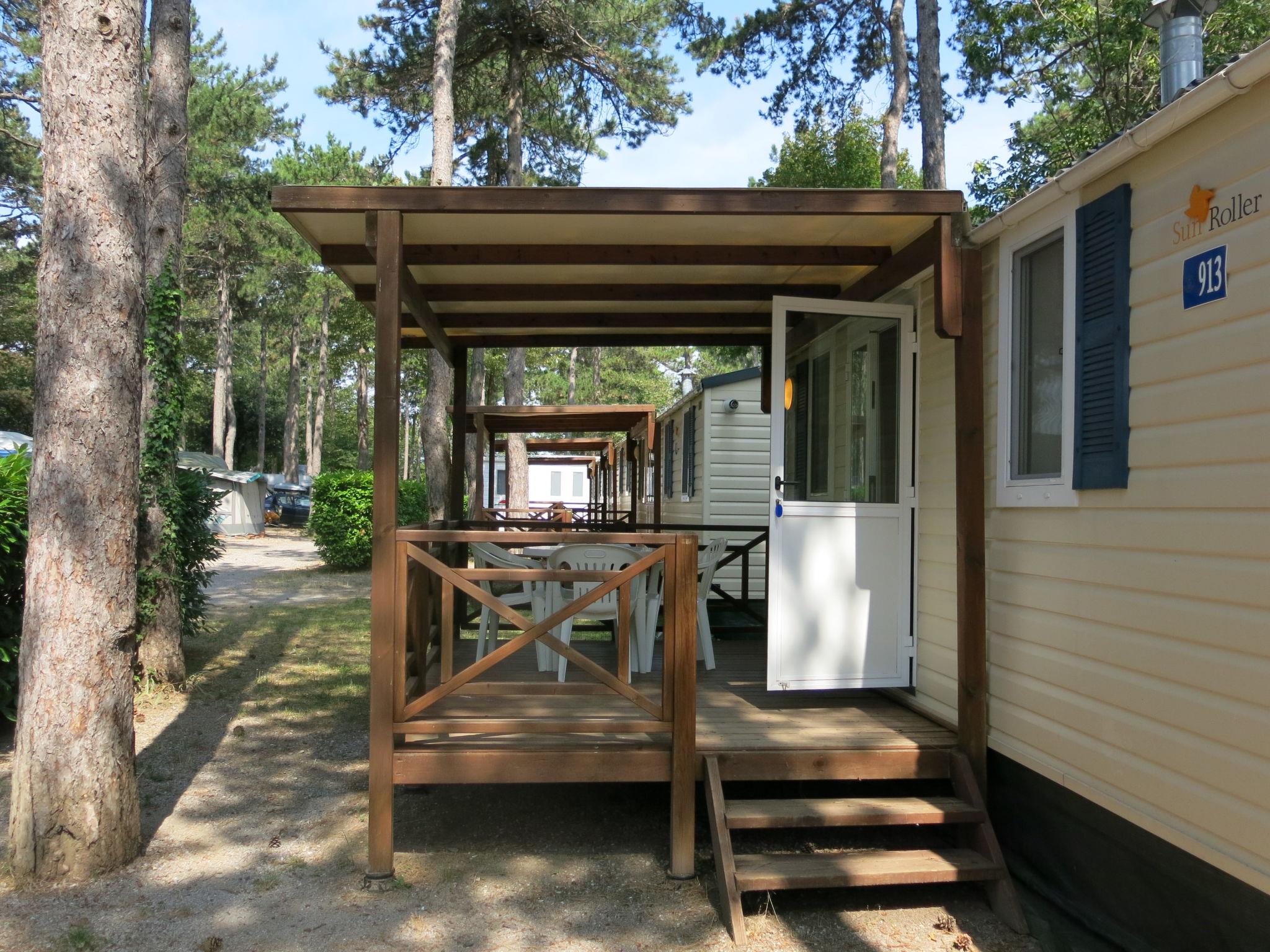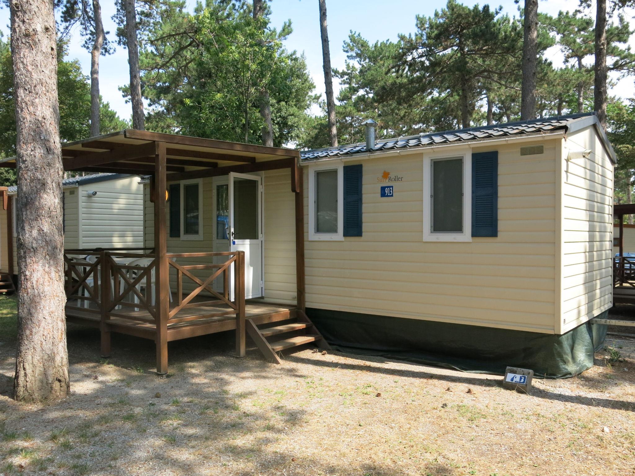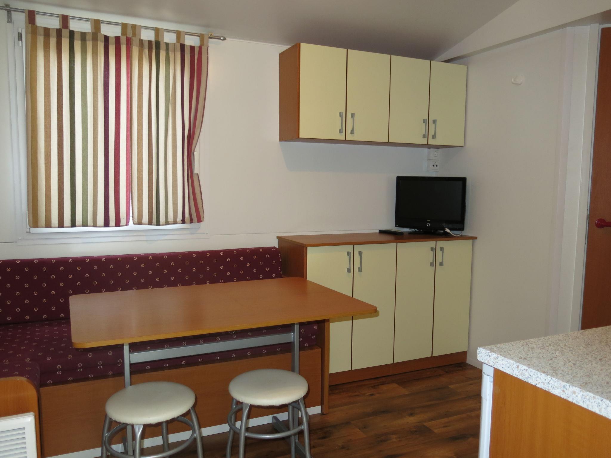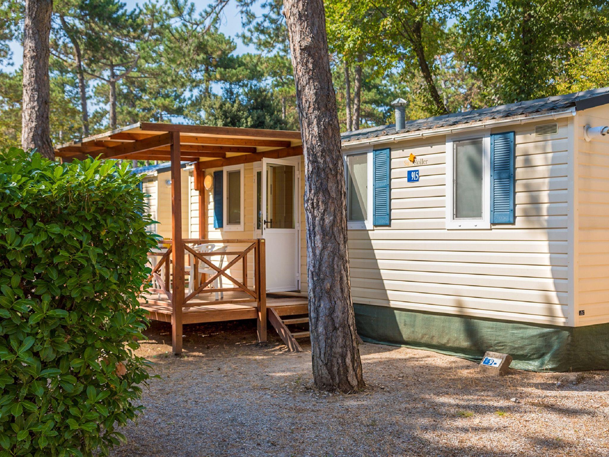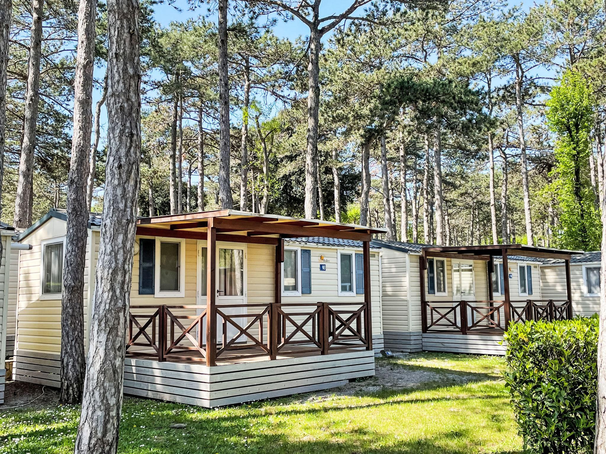 "Baia Blu Romantic", 3-room mobile home 24 m2. Modern furnishings: living/sleeping room with 1 sofabed (70 cm, length 160 cm), dining table and digital TV. 1 room with 1 french bed (140 cm). 1 room with 2 beds (70 cm), 1 x 1 bunk beds (70 cm, length 120 cm). Kitchenette (4 gas rings). Shower, sep. WC. Air-conditioning, forced-air heating (extra). Terrace roofed. Terrace furniture. Parking (1 car). Please note: non-smokers only. Bed layout is flexible. There are more sleeping options available than the maximum number of people allowed which may, however, not be exceeded. IT032001B169XD3QUG