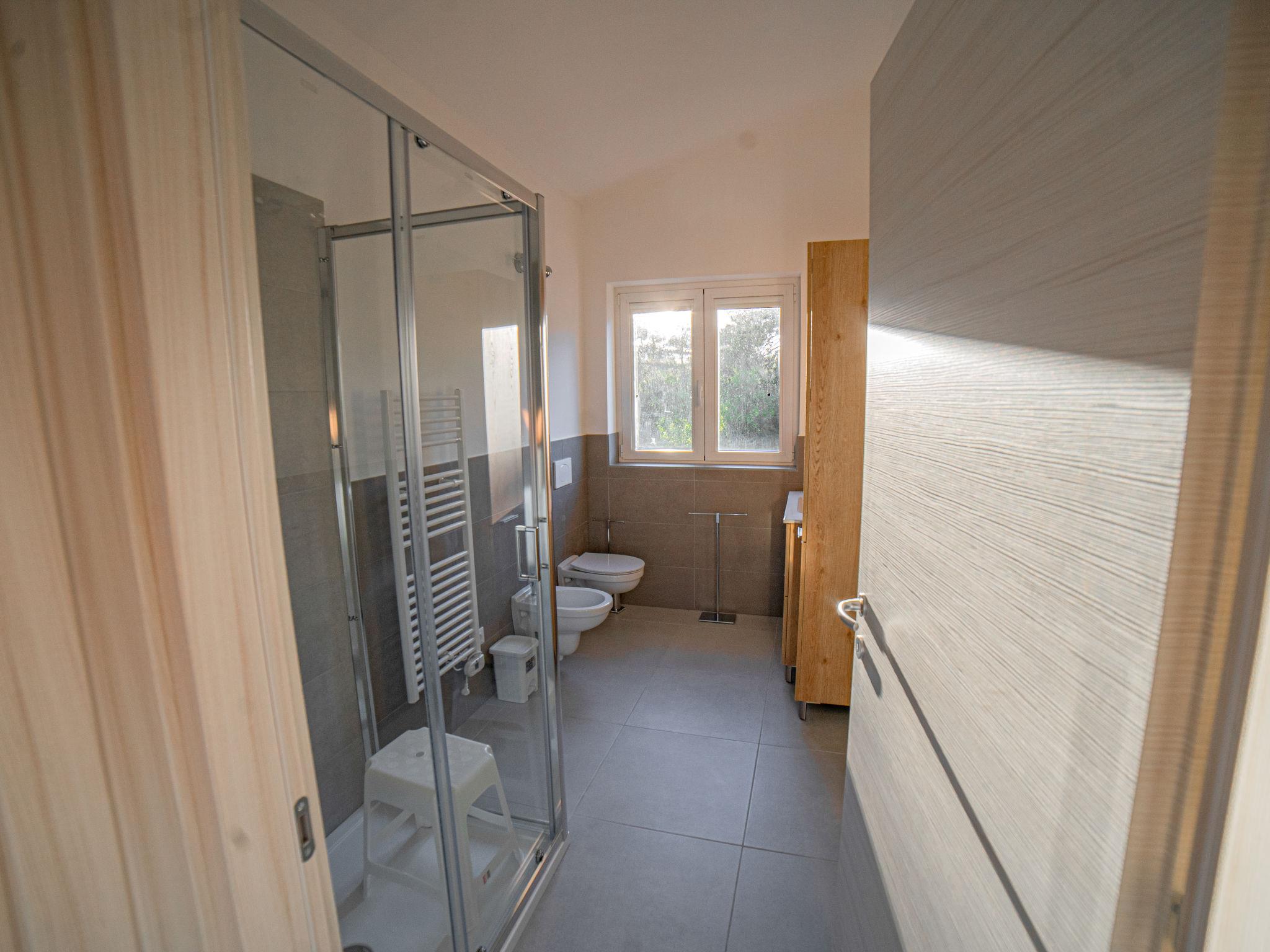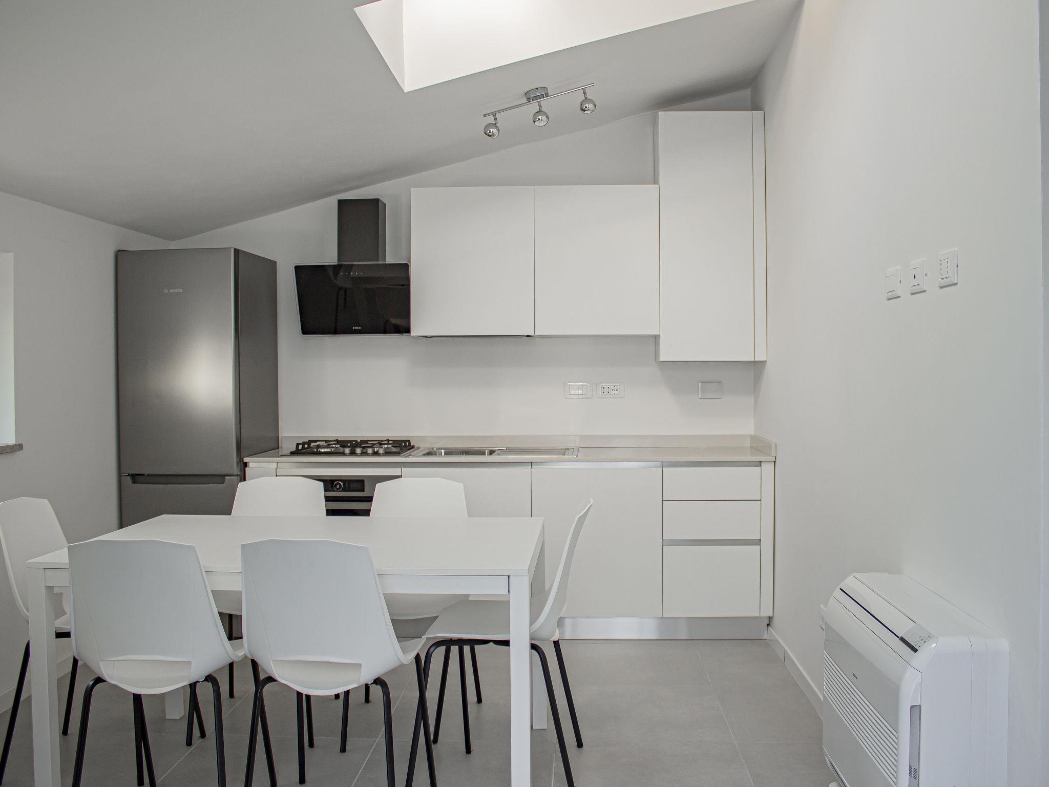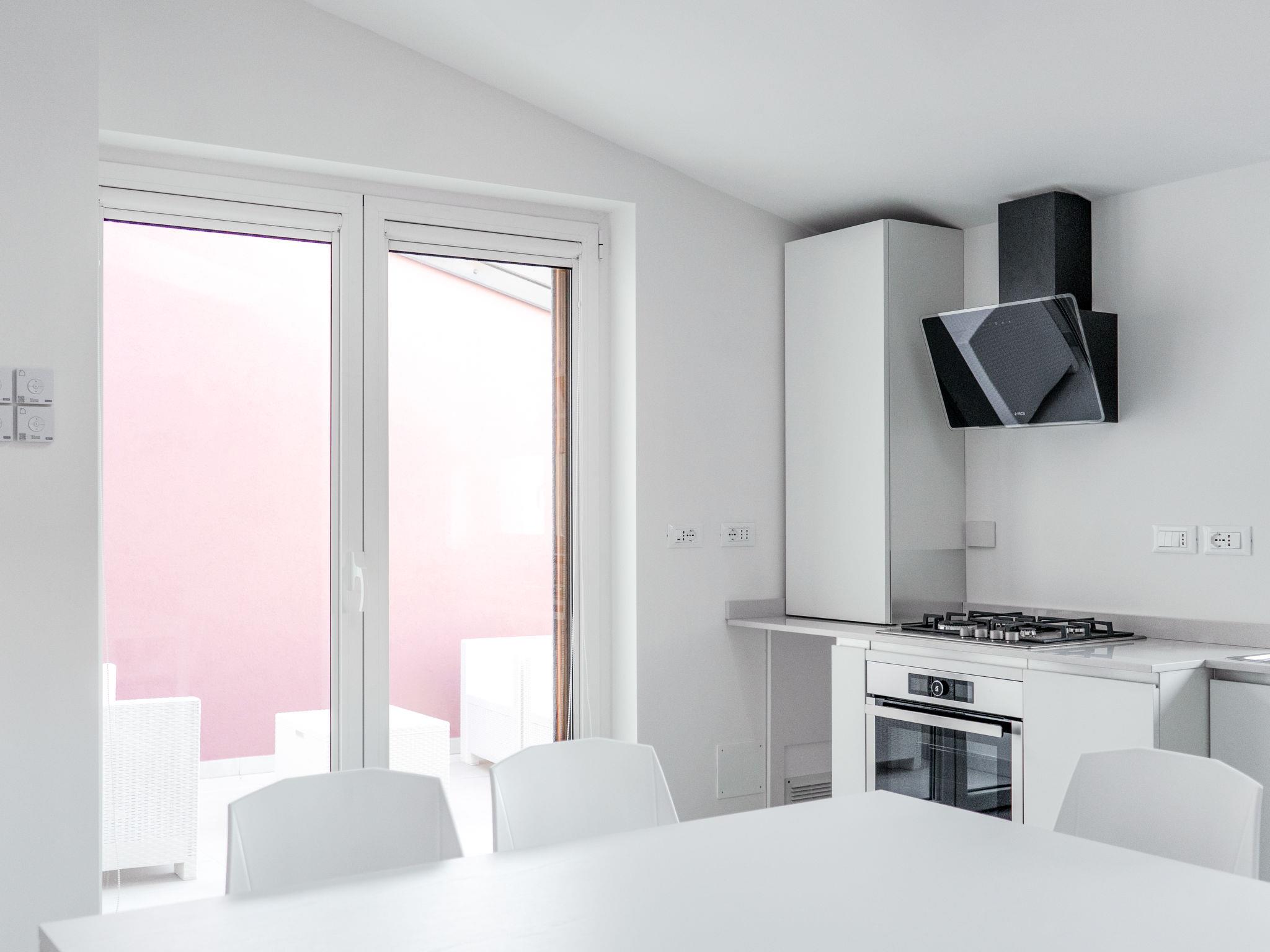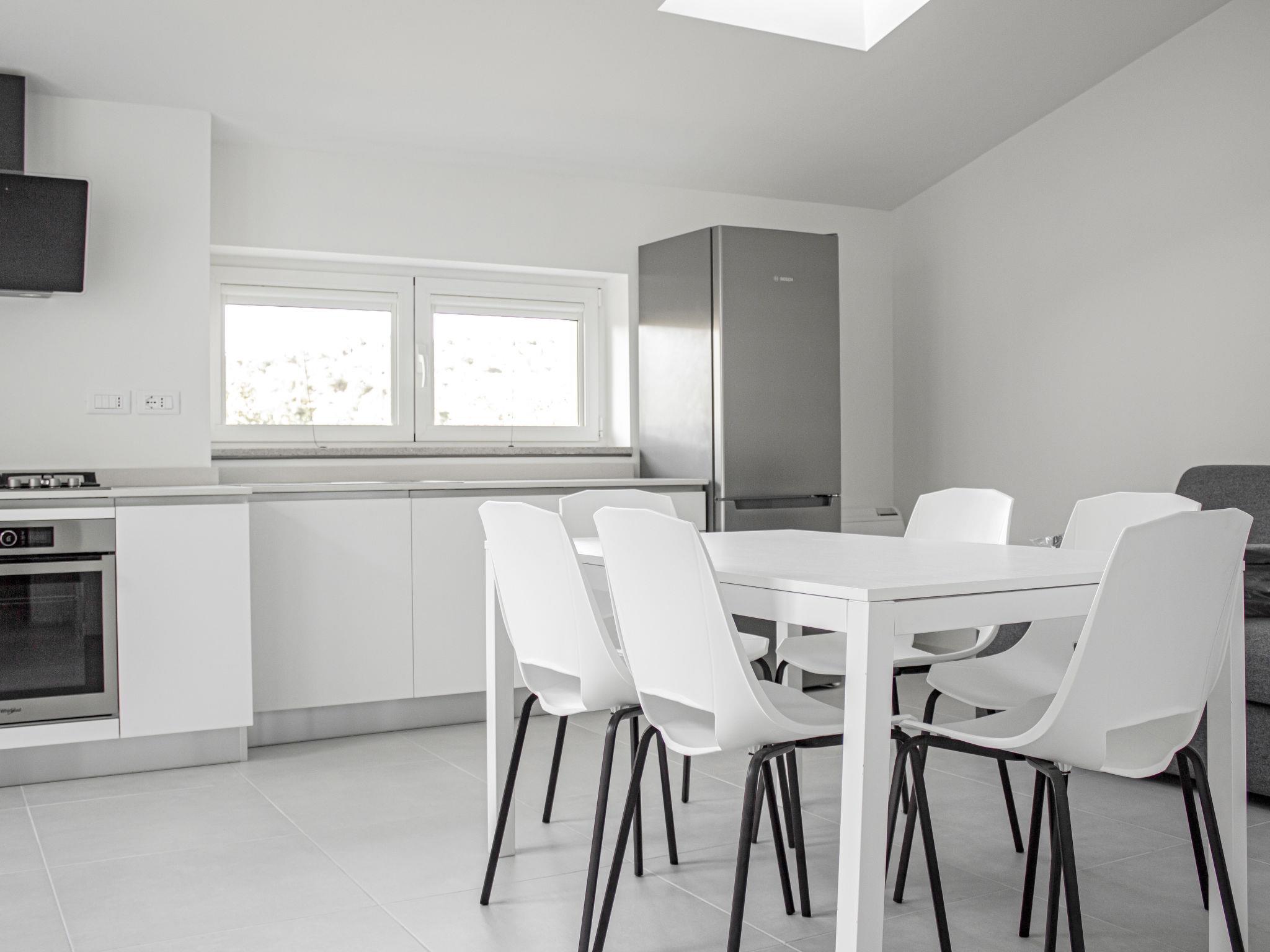 "Residence Mare Azzurro, App. Falesie", 3-room apartment 85 m2, on the top floor. Spacious and bright, modern furnishings: living/sleeping room with 1 double sofabed, dining table and satellite TV. 1 double bedroom with shower/WC. 1 room with 2 beds. Kitchenette (oven, dishwasher, 4 gas rings, microwave, freezer, electric coffee machine). Shower/bidet/WC. Air-conditioning, forced-air heating. Terrace partly roofed. Terrace furniture. Facilities: washing machine, baby cot for up to 2 year olds (extra). Internet (WiFi, extra). Parking (1 car) at the house. Please note: non-smokers only. This flat is located in the new small residence with a total of 6 flats, approx. 50 metres from Camping Village Mare Pineta. Lift in the residence. IT032001B4K8LW2DT5