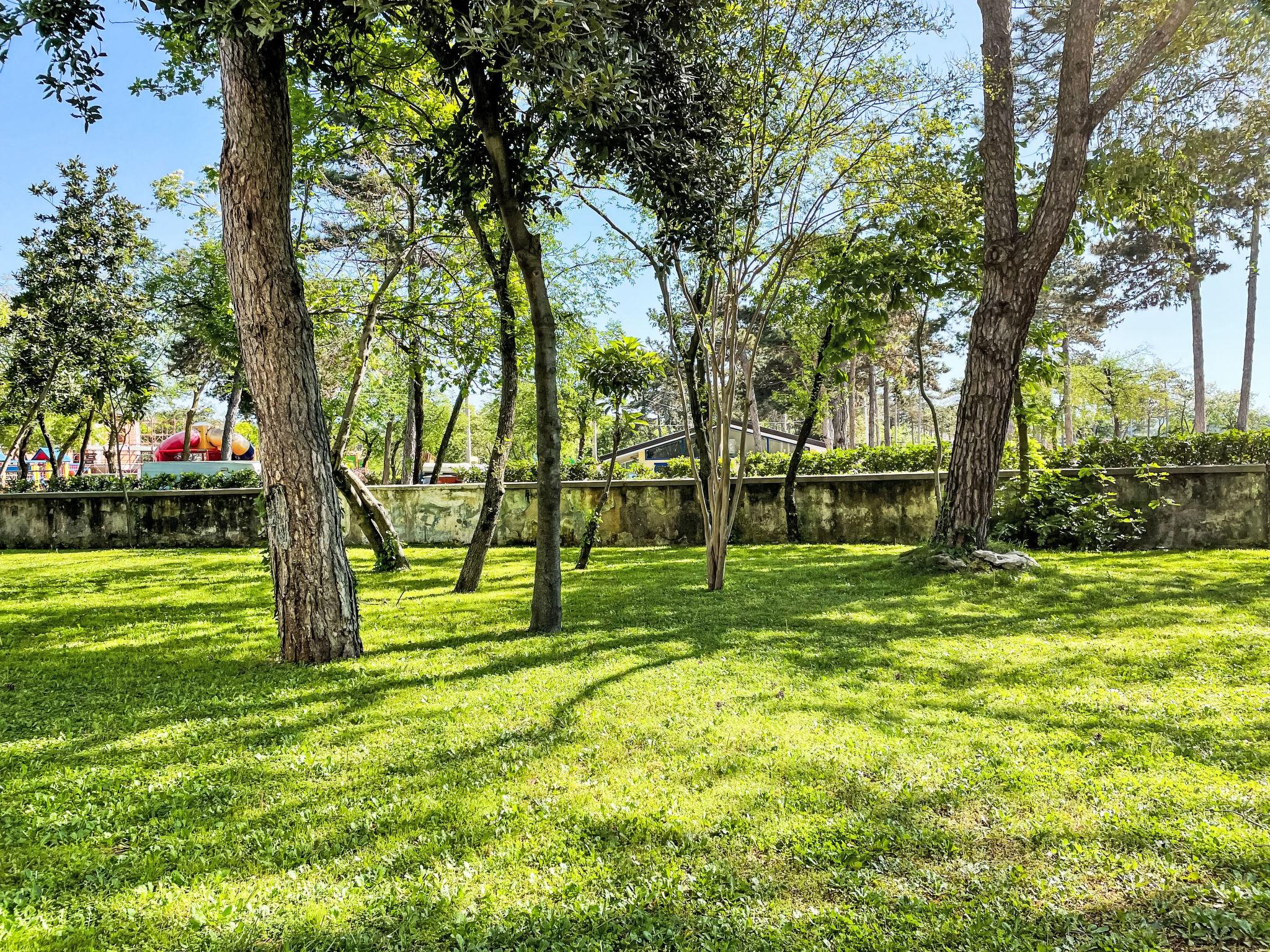 Large, child friendly holiday village "Camping Village Mare Pineta". 115 houses in the resort. 6 apartments in the residence. 1 km from the centre of Sistiana, 18 km from the centre of Trieste, in an elevated position on a slope, 1.6 km from the sea, 1.6 km from the beach. For shared use: property 10 ha (fenced) with trees, swimming pool (30 x 20 m, seasonal availability: 23.May. - 15.Sep.). Children's pool, outdoor shower, tennis (extra), table tennis, basketball (extra), beach volleyball, children's playground. In the complex: reception, bistro, shopping facilities, washing machine (for shared use, extra). Grocery 100 m, supermarket 1 km, bus stop 200 m, railway station "Trieste Centrale" 18 km, rocky beach "Baia Sistiana" 1.6 km. Nearby attractions: Castello di Duino 2 km, Castello di Miramare 13 km, Sentiero Rilke 350 m. Please note: entertainment in the season. Suitable for families. Obligation to wear bathing caps.