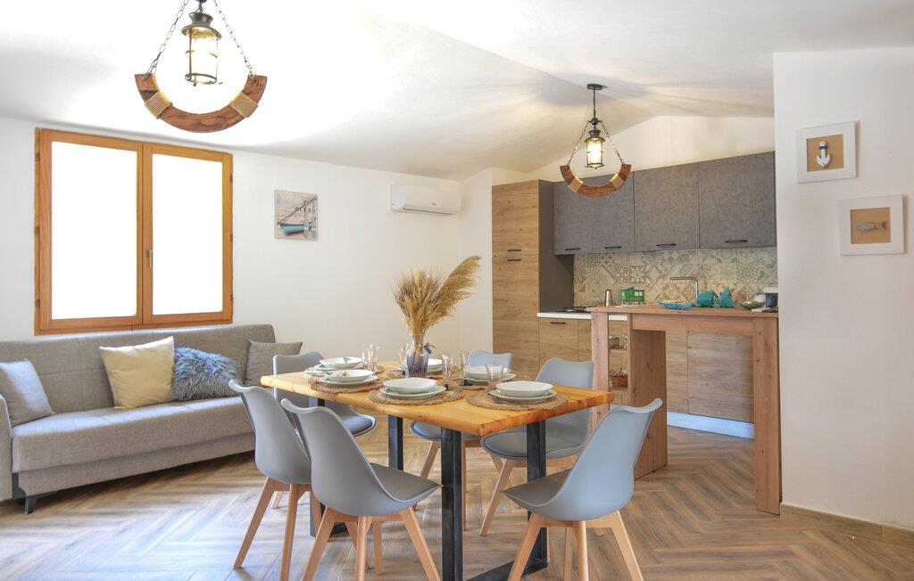 Interiøret er smagfuldt indrettet med stor sans for detaljer, hvilket skaber en varm og indbydende atmosfære. Det moderne køkken giver jer mulighed for at tilberede lækre måltider, mens den tilstødende hyggelige stue er ideel til afslappende aftener. Soveværelserne er klassisk og charmerende indrettede og tilbyder plads til afslappende nætter.