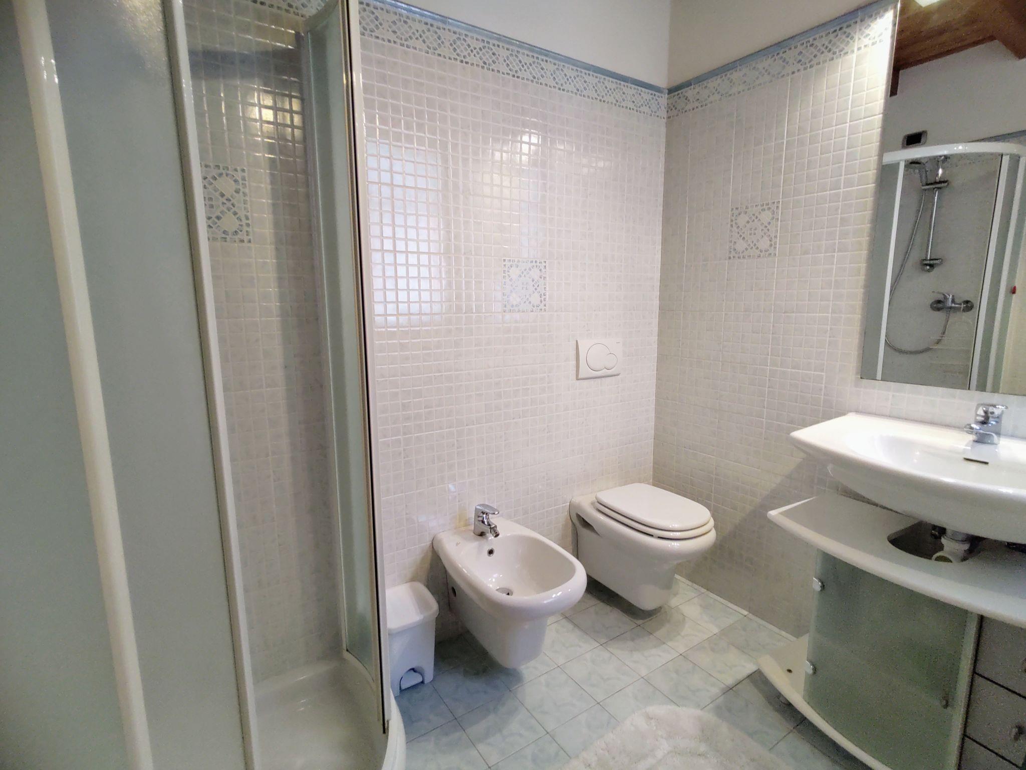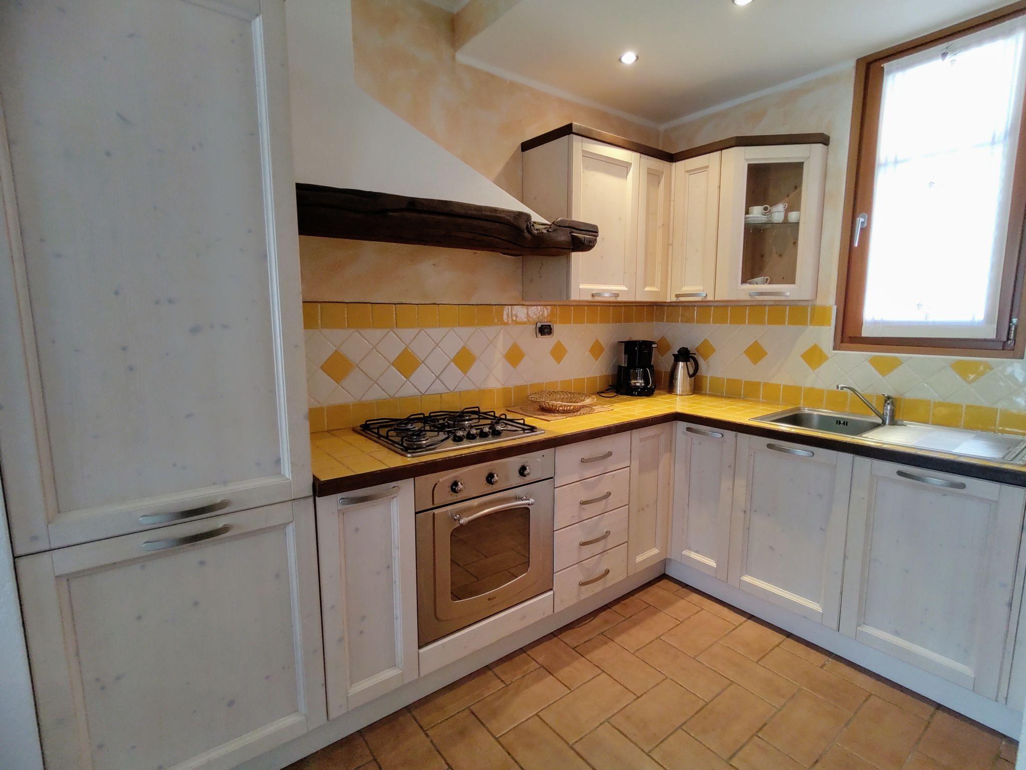 "Leonardo", 3-room house 80 m2 on 3 levels. Object suitable for 4 adults + 1 child. Comfortable furnishings: living/dining room with dining table and satellite TV. Exit to the terrace. Open kitchen (oven, dishwasher, 4 gas rings, freezer, electric coffee machine). Upper floor: 1 room with Dressing room with 1 double bed. Exit to the balcony. Shower/WC. Gas heating. 2nd upper floor: 1 open room with sloping ceilings with 1 bed and 1 double bed. Parquet floors. 2 balconies, large terrace 25 m2, small terrace. Terrace furniture, barbecue (portable), deck chairs (2). Facilities: washing machine, children's high chair, baby cot. Internet (WiFi, free). IT013216C2M9TI4TFA