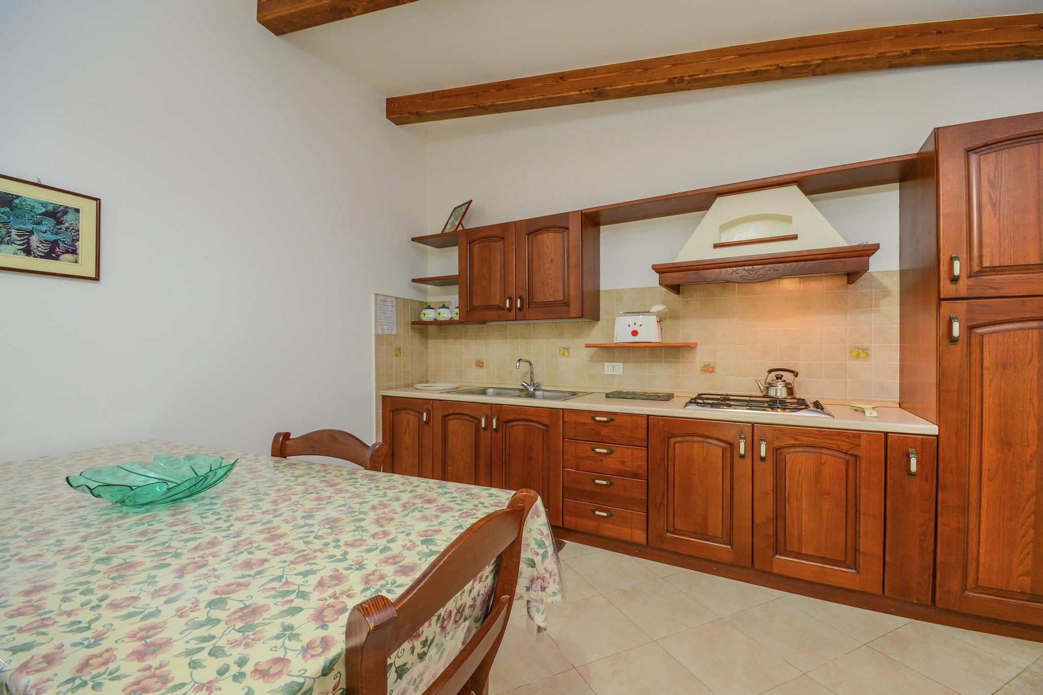 Stueetage: (Stue(2x enkeltseng, Fjernsyn), åbent køkken(kaffemaskine(kaffetragt)), soveværelse(dobbeltseng), badeværelse(bruser, håndvask, toilet, bidet)) vaskemaskine, varme, klimaanlæg, have(deles med andre gæster, 300 m2), havemøbler