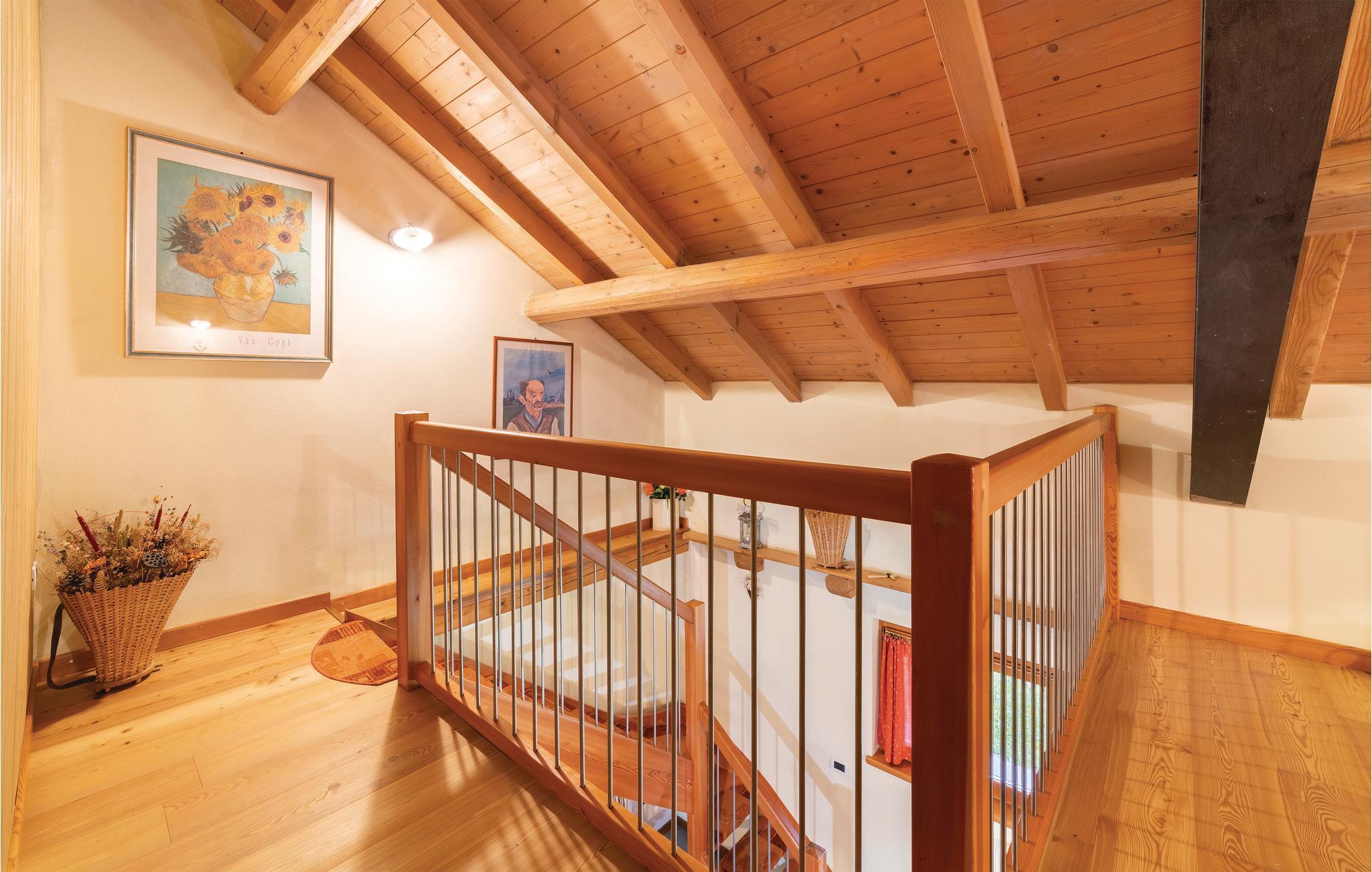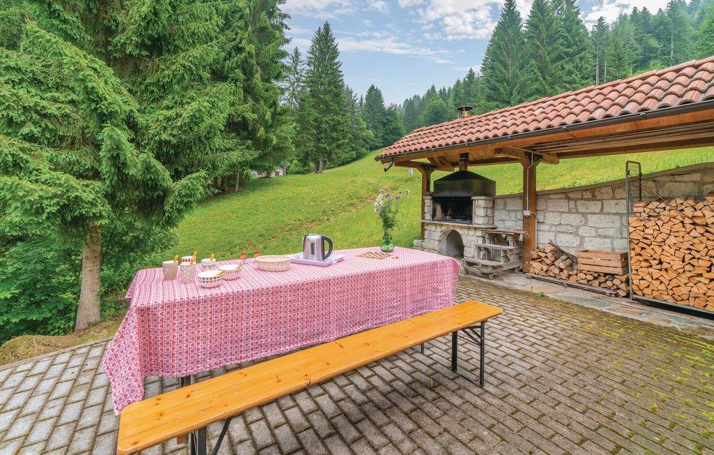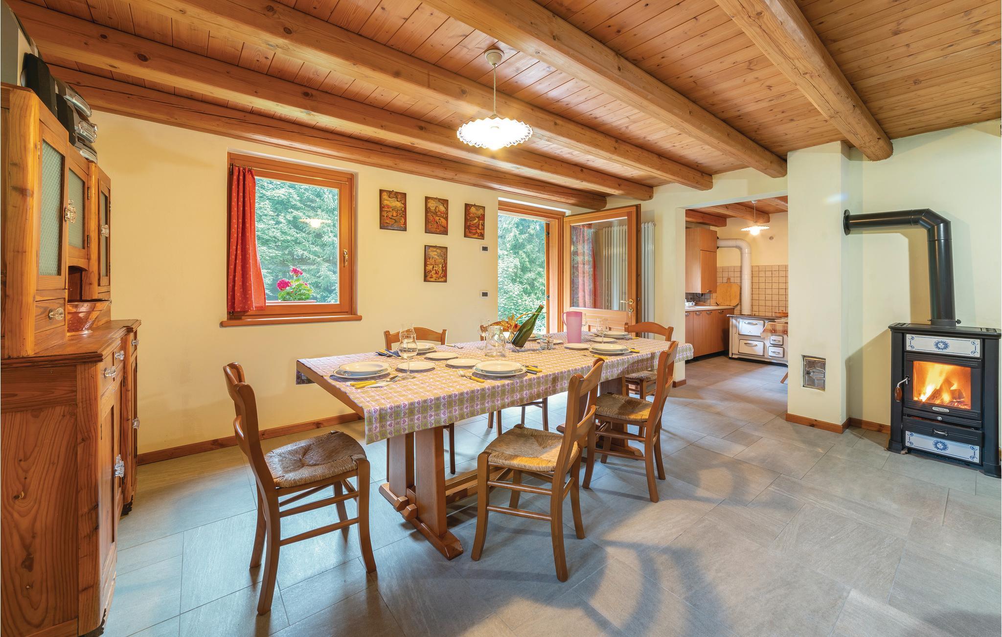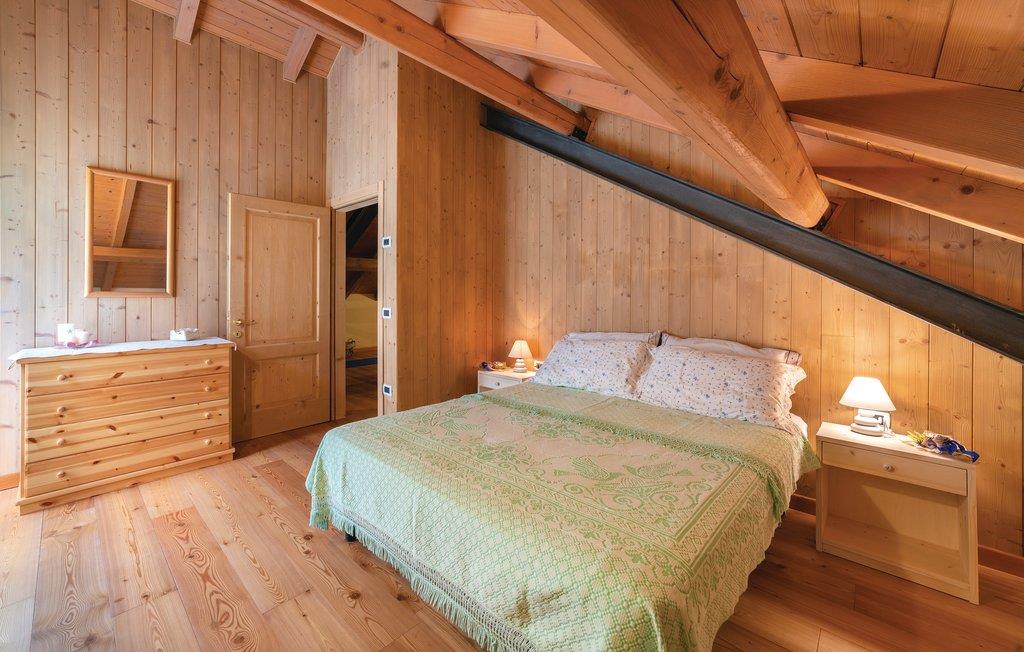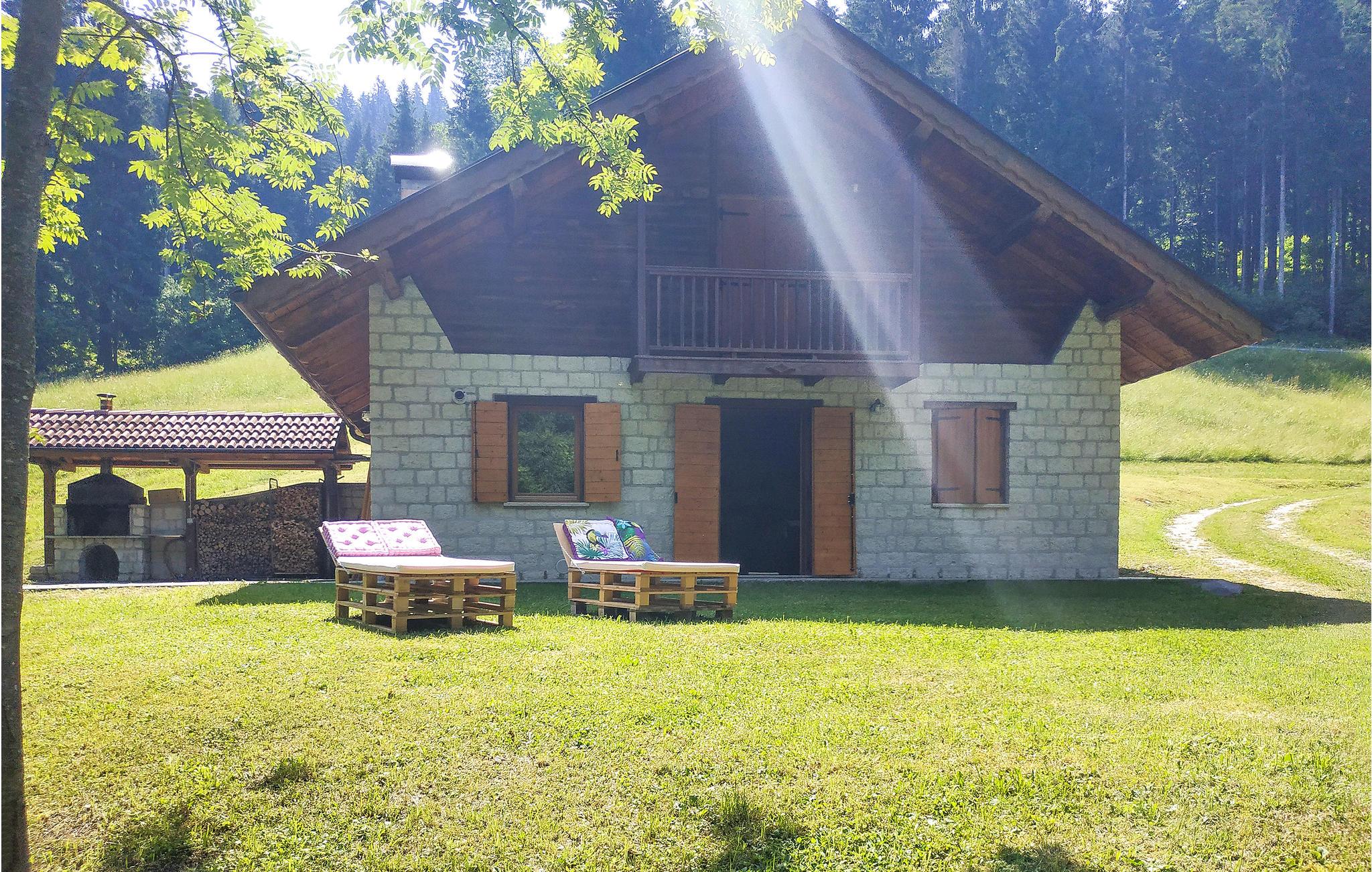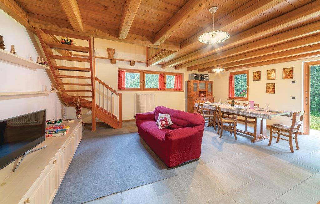 Bo ugenert og stille i skoven, men alligevel nær utallige attraktioner i dette feriehus i Sovramonte, 14 km fra Feltre, i nationalparken Belluno Dolomitterne. Bl.a. kan I besøge kunstbyerne Belluno 55 km, Vicenza og Treviso 85 km og Venedig 120 km og Trentino med bjerge og smukke søer. I feriehuset der er opført som en egnstypisk bjerghytte, er der en varm og indbydende atmosfære, om sommeren vil I sikkert opholde jer mest udendørs hvor der er dejlig have og muret grill, samt plæne til solbad, leg og boldspil. Der er fem til skisportsområdet Croce d'Aune - Monte Avena, et familievenligt område afsides fra de meste travle turistområder. For jer der søger afveksling er I nær det mest omfattende skisportsområde i landet, der strækker sig mellem Dolomitterne i Veneto og Trentino: 40 km til San Martino di Castrozza og Passo Rolle; 70 km Falcade-San Pellegrino og Civetta skiområdet. I kan gå ture fra jeres bolig, både ad afslappede, men også mere udfordrende stier. Fra Monte Avena kan I flyve i drage eller paraglide. I dalen kan I sejle kano og i de nærliggende søer dyrke vandsport: windsurfing, sejle og kitesurfe. De historisk interesserede vil sætte pris på besøg i en af de utallige omliggende gamle byer som: Venedig, Feltre, Belluno, Bassano del Grappa, Mel, Treviso, Vicenza, Trento og Rovereto. Regionen er også rig på lækker og veltillavet mad og vine, samt har en række specialiteter som det er værd at smage på under ferien. Køb gerne ind på det lokale marked og tilbered de lokale råvarer hjemme i jeres egen bolig – eller spis på en af områdets mange familiedrevne restauranter. For ølelskere er der et historisk bryggeri i Pedavena (10 km) med et stort udvalg af øl, som er berømt i hele Europa. Fra et af soveværelserne på første sal er der udgang til en terrasse, med en smuk udsigt over bjergene og hvor I kan se hjorte, der passerer huset om morgenen. En snoet vej fører op til huset, de sidste 100 m med grusbelægning.
