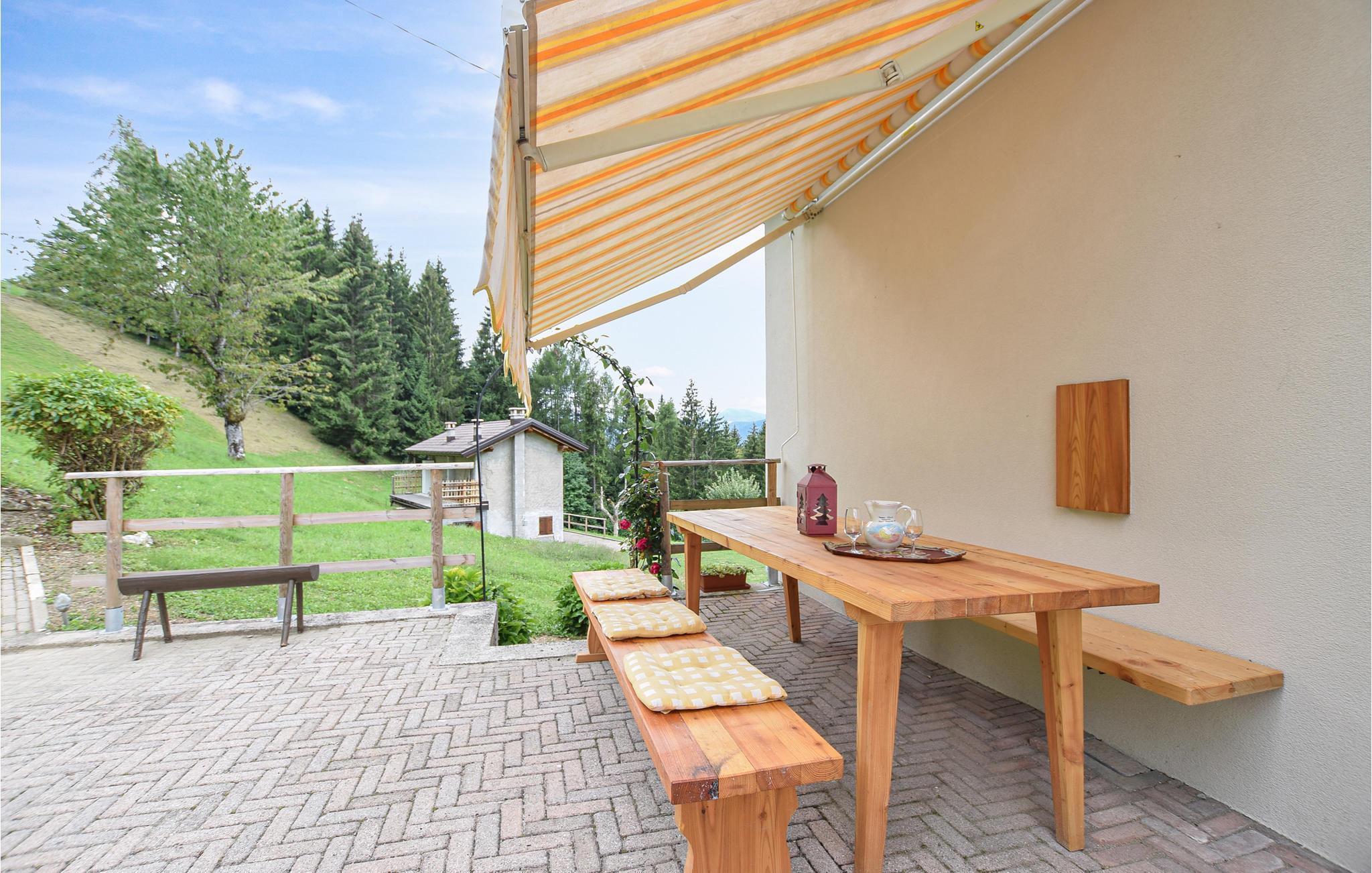 Huset IDD337 er i nærheden. I det lille centrum af Servo di Sovramonte finder I et supermarked, en bar og et apotek. Byerne Feltre, Castello Tesino og Fiera di Primiero ligger kun 15 km væk. Huset ligger i tre etager. Toilettet er placeret i stueetagen og er tilgængeligt udefra. Den første og anden etage er forbundet med en intern trappe. Udendørs område er dedikeret til afslapning. Liggestole til solbadning, grill og bord. Sammen med det andet hus kan I bruge legepladsen med en gynge, sandkasse og legeredskaber.