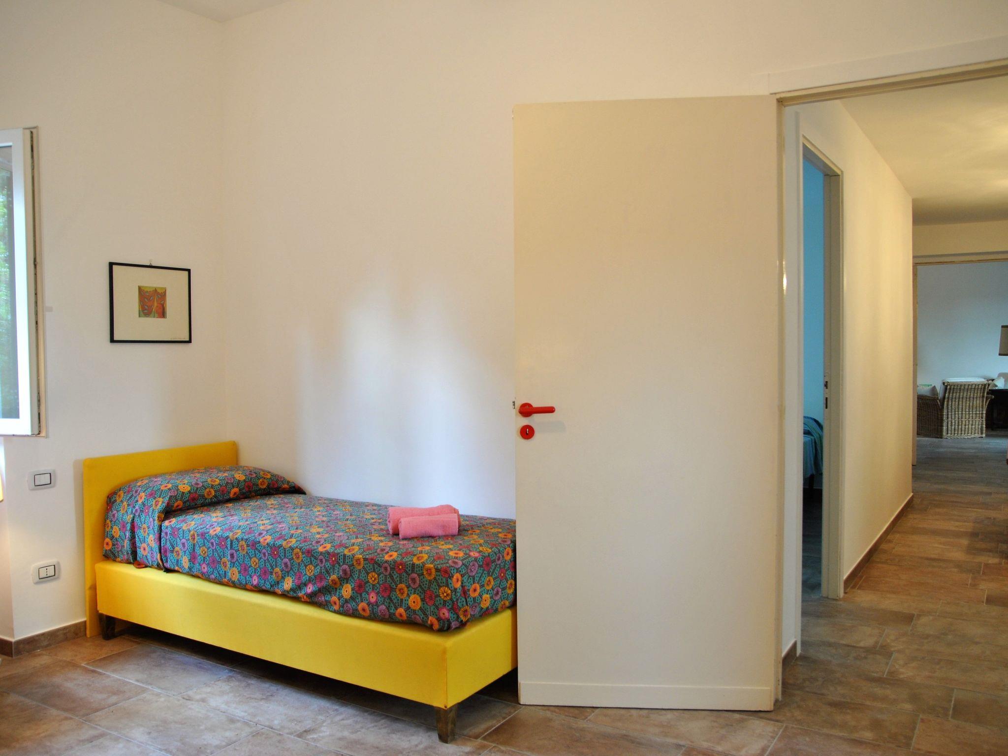 Villa for 6 persons. The villa of about 100 sqm consists of an entrance into the large living room with dining area with table and chairs and living area with sofa. Separate kitchen equipped with 4 burners, dishwasher, oven. The corridor disengages 2 double bedrooms and 1 bedroom with 2 single beds. A bathroom complete with shower is accessible from both the double bedroom and the twin bedroom. Another bathroom with shower is located opposite the kitchen. Renovated in recent months, the villa has simple and functional furnishings to enjoy the space fluidly.