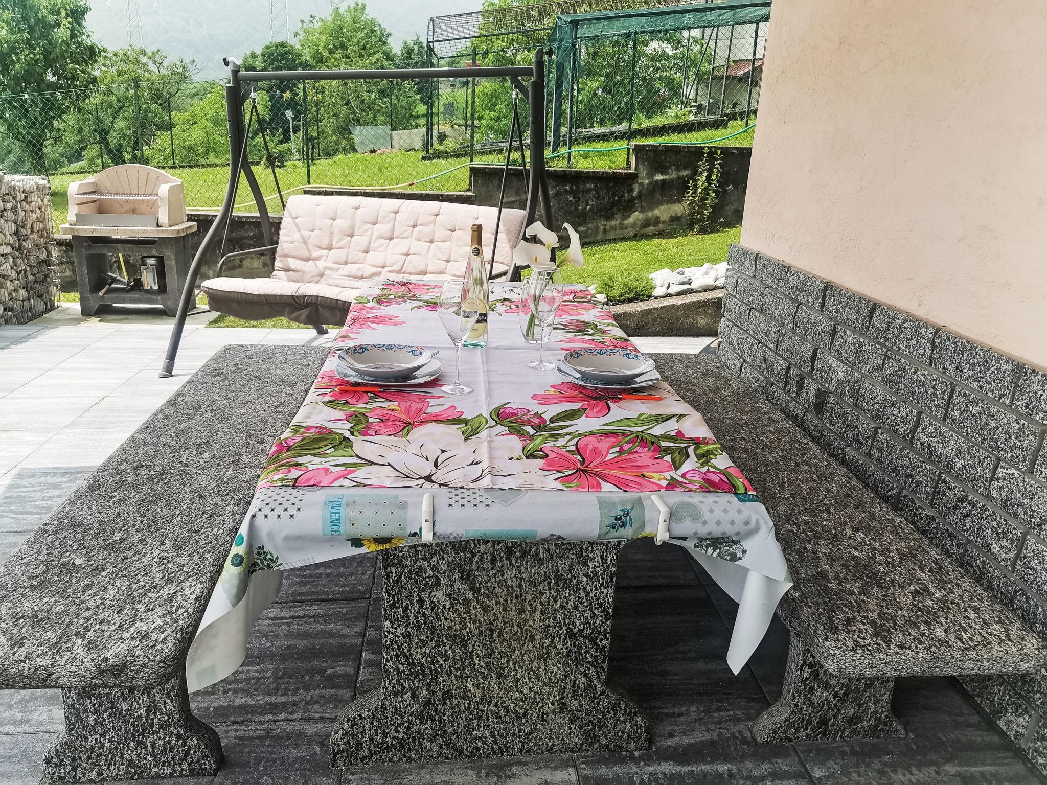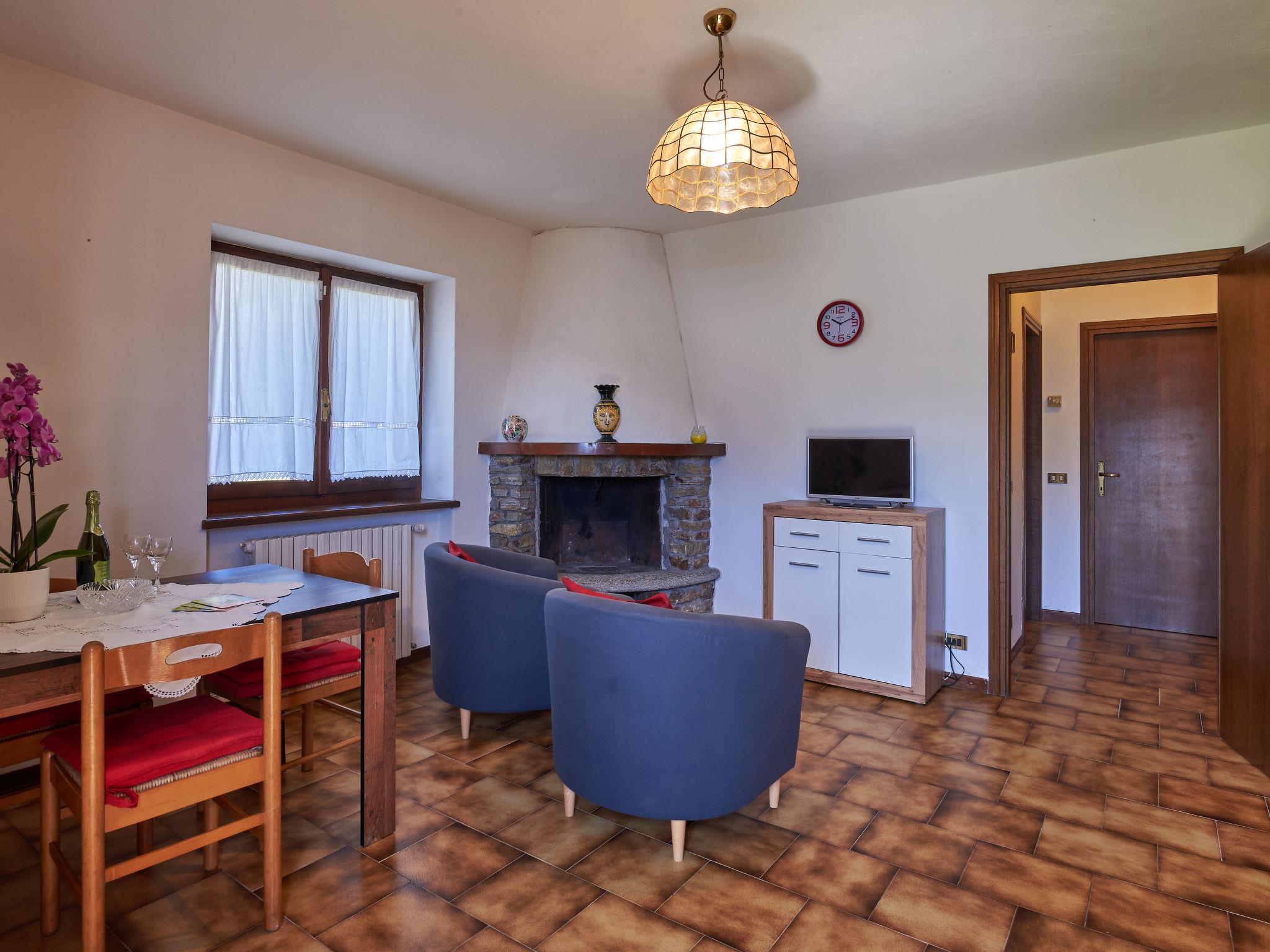 2-room apartment 50 m2, on the ground floor. Practical furnishings: living/dining room with open-hearth fireplace, dining table and satellite TV. Exit to the terrace. 1 double bedroom. Open kitchen (oven, dishwasher, Gas stove, 4 gas rings, toaster, kettle, microwave, electric coffee machine). Exit to the terrace. Shower/bidet/WC. Gas heating. Natural stone floors. Large terrace partly roofed, patio. Terrace furniture, barbecue, deck chairs (2). Marvellous panoramic view of the lake, the mountains and the valley. Facilities: children's high chair, baby cot for up to 2 year olds. Internet (WiFi, free). Please note: private entrance. IT013218C2EMJLITQD