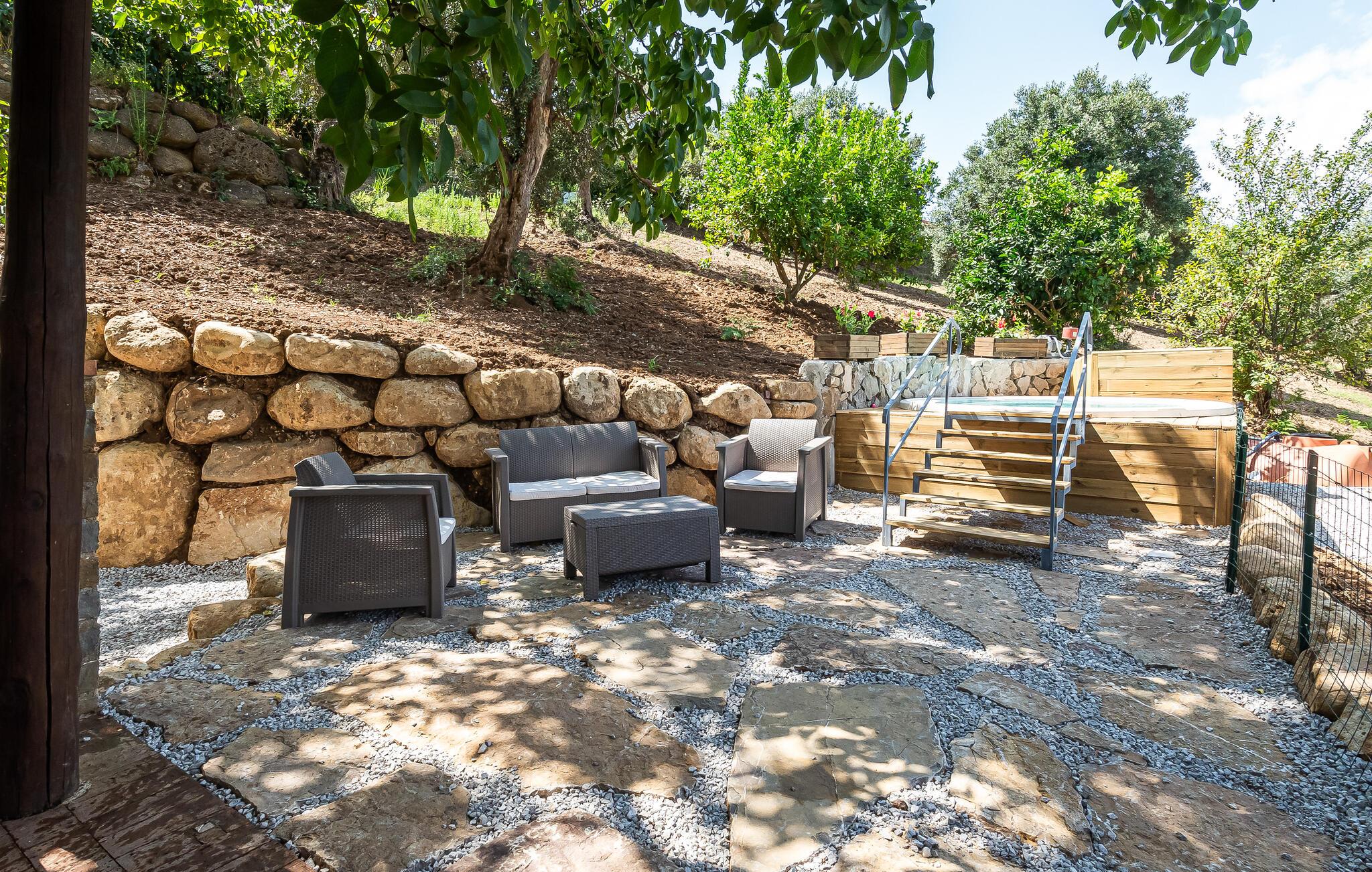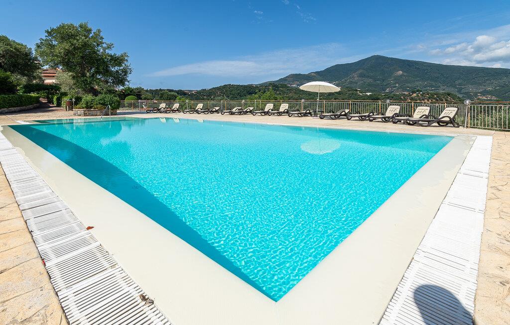 I hjertet af Cilento National Park, på en bakke med flere hundrede år gamle oliventræer ligger dette skønne hus, som er en del af et lille feriekompleks med andre huse. Huset har en behagelig atmosfære præget af lyse farver, træ- og stenfliser. Her finder I alt det, I skal bruge for at have det rart. Den store, overdækkede terrasse giver jer et skønt sted til afslappende læsestunder i solen eller hyggelige madprojekter og grillretter i sommerkøkkenet. I kan snuppe en dukkert i den opvarmede fælles pool, hvor I er omgivet af det vidunderlige landskabspanorama.