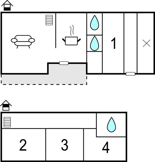 Opholdsstue/køkken - 2 Sovepladser. (Sofa, madras eller lignende).