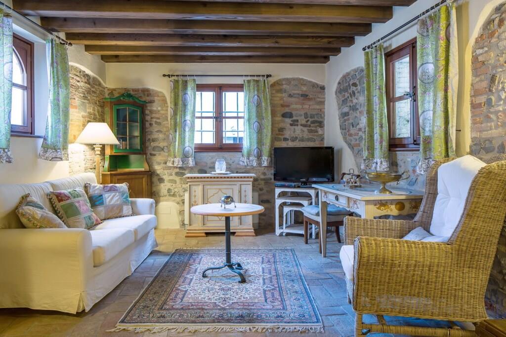 Eingebettet in einem der schönsten Dörfer Italiens, steht La Vicinia als fesselnder Wohnsitz, umschlungen von den Armen eines antiken Schlosses. Sein Garten garantiert Privatsphäre durch einen umgebenden Zaun, und Gäste schlendern frei durch den weiten Park des Schlosses. Beim Betreten des Erdgeschosses wird man von einem geräumigen Ess- und Wohnbereich begrüßt, mit einer eingerichteten Küche, die sich zu einem einladenden, gewölbten Portikus öffnet, der zum Garten führt, einer idyllischen Kulisse für Essen im Freien und Entspannung. Im ersten Stock befindet sich ein gemütliches Doppelzimmer mit Bad. Angrenzend daran ist ein offener Raum mit Doppelbett und zusätzlichem Bad. Diese Mischung aus Komfort und Flair macht La Vicinia zu einem quintessentiellen Rückzugsort für diejenigen, die eine friedliche Zuflucht suchen.