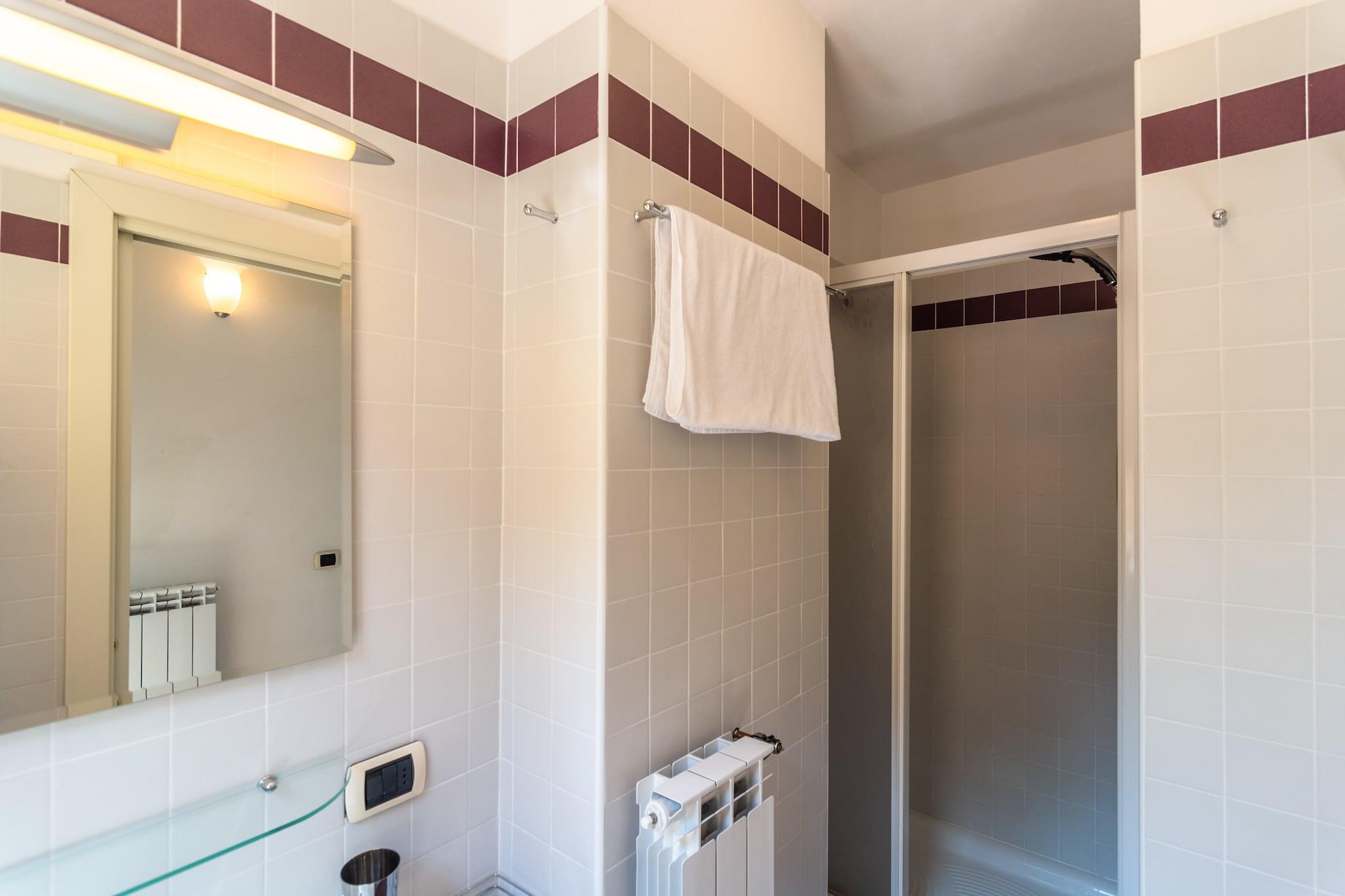 Lys stue og køkken På anden sal i Residenza Verdelago byder dette feriehus på fire personer med et solrigt åbent køkken (opvaskemaskine inkluderet) og en stue/spisestue med satellit-tv. Et komplet badeværelse med badekar, håndvask og toilet betjener denne etage, som åbner ud til to balkoner med udsigt over den fælles have og pool. Hyggelige soveværelser på loftet Gå op til loftet med to rolige soveværelser, et med en queensize-seng (160×190 cm) og et med en lille dobbeltseng (120×190 cm), plus et andet badeværelse med bruser og håndvask. Central gasvarme sikrer komfort året rundt, og gratis Wi-Fi holder dig forbundet under hele dit ophold. Fælles faciliteter og lokal adgang Nyd parkering i garage på stedet, en fælles terrasse og en 12×6 m pool (åben juni-august). Golfentusiaster kan besøge Golf Dei Laghi (37 km), mens vandsportsentusiaster finder VELA GO-udlejninger 10 km væk. Til spisning er Restaurant Hotel Luina 2,2 km væk, og Cafe de la Sera er 15,6 km væk. Malpensa Lufthavn ligger 44 km derfra, ideel til en problemfri ferie ved Lago Maggiore.