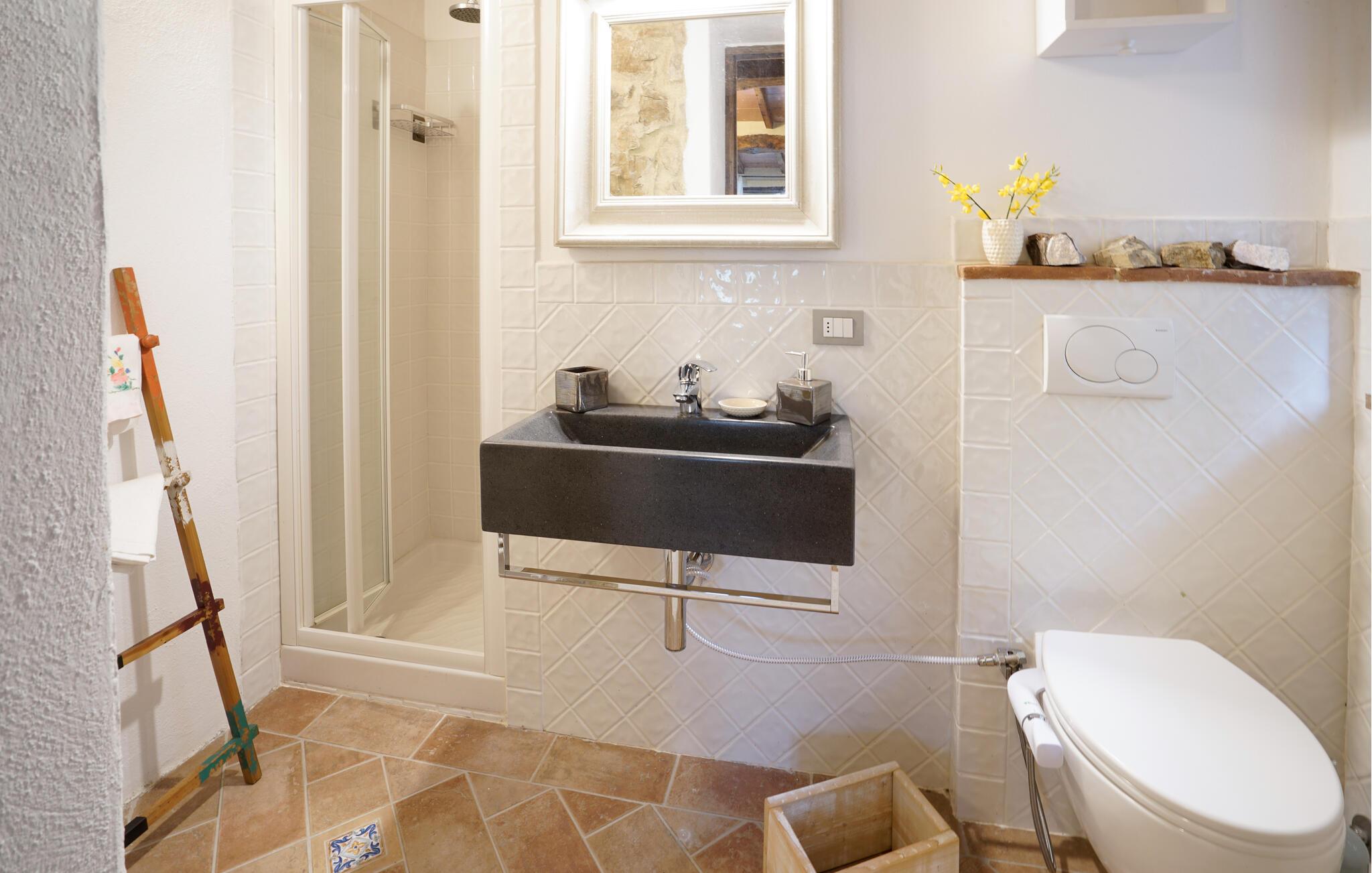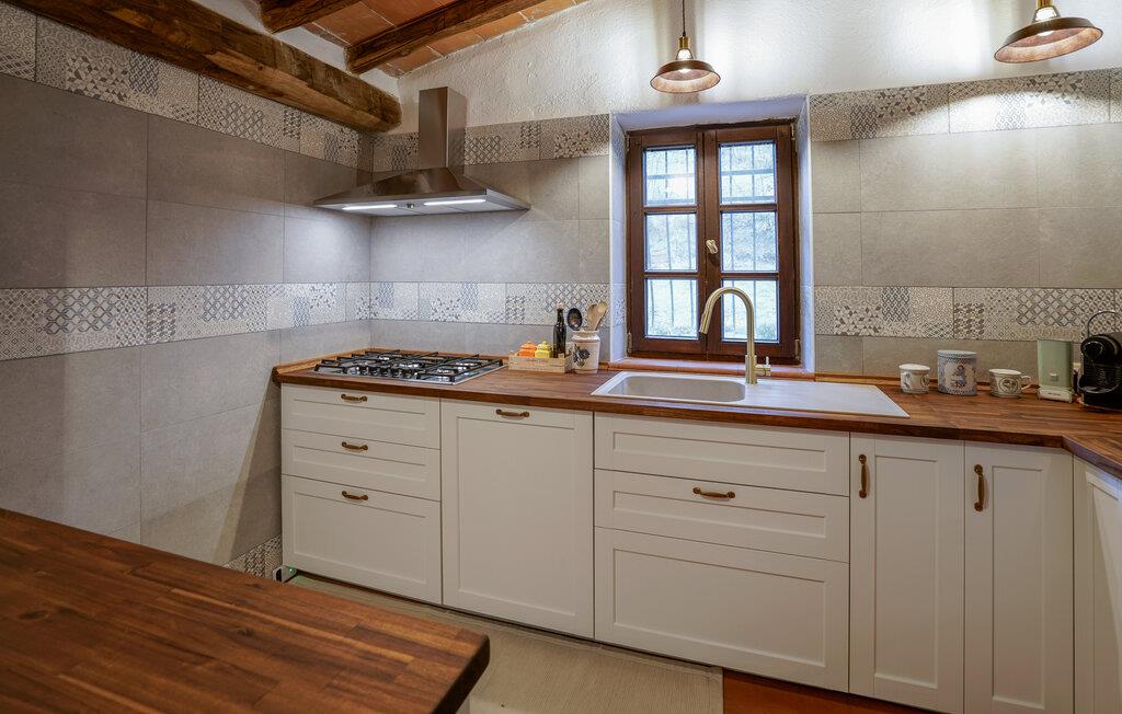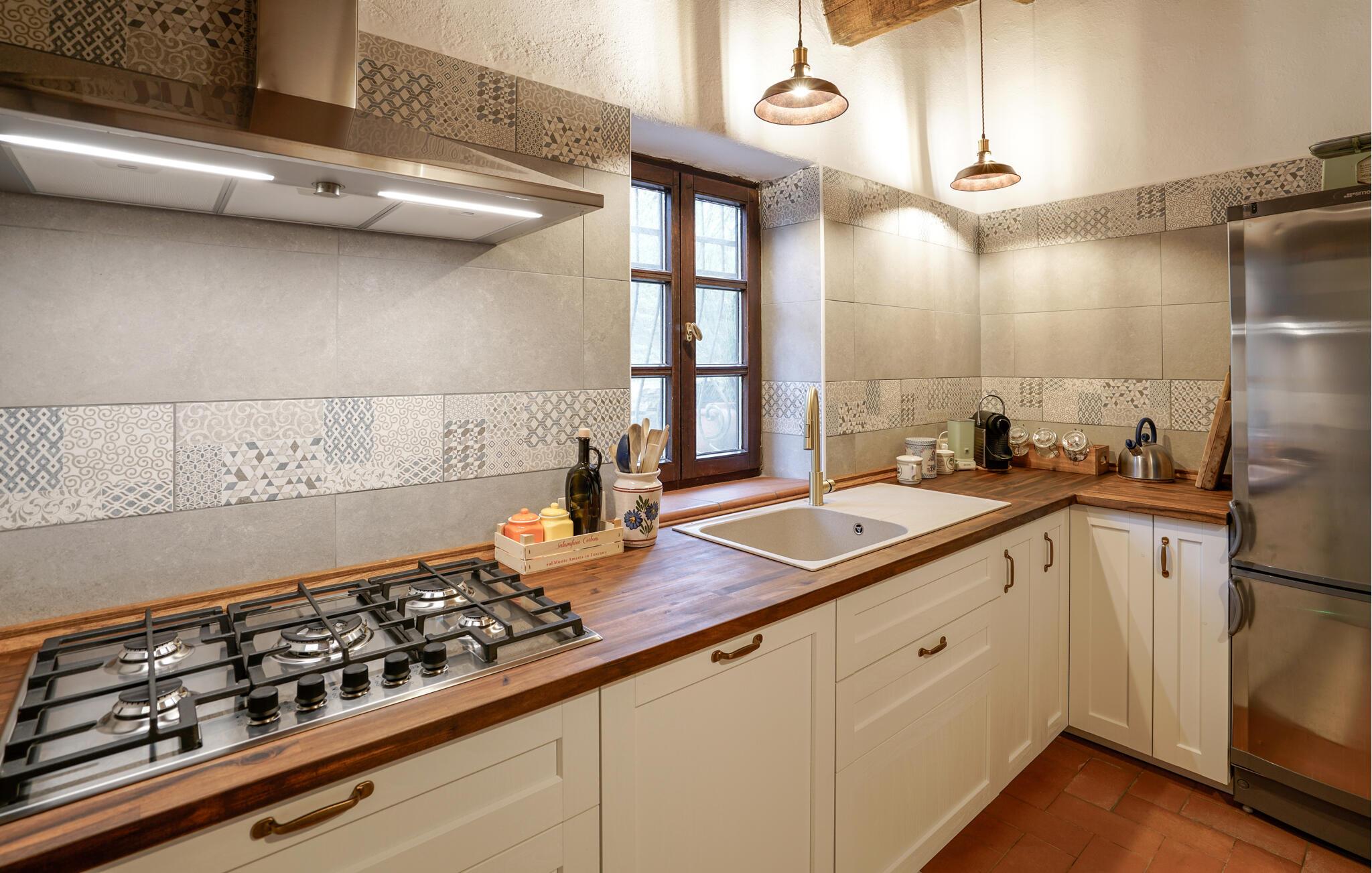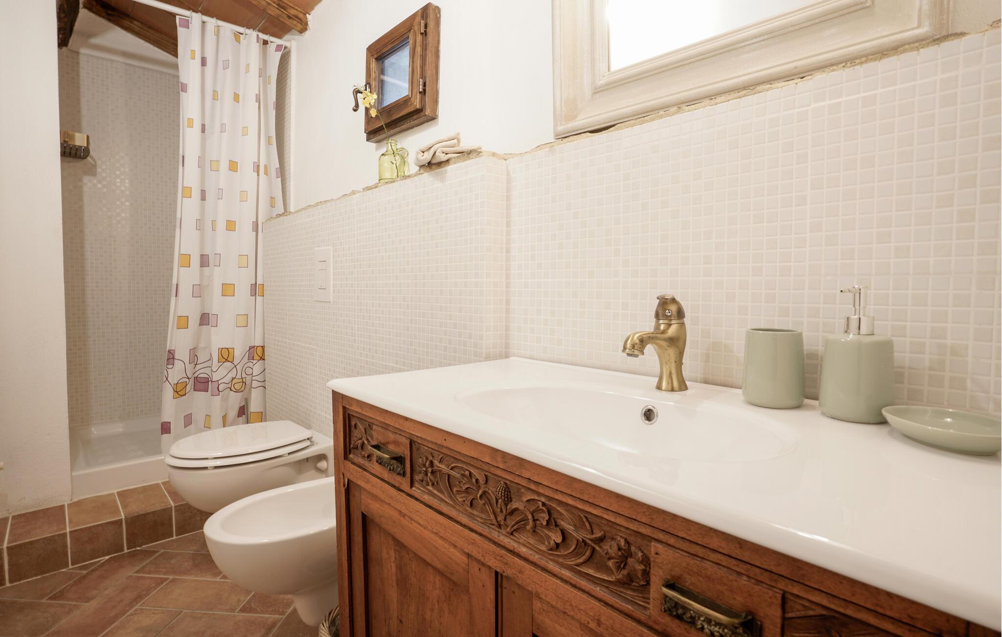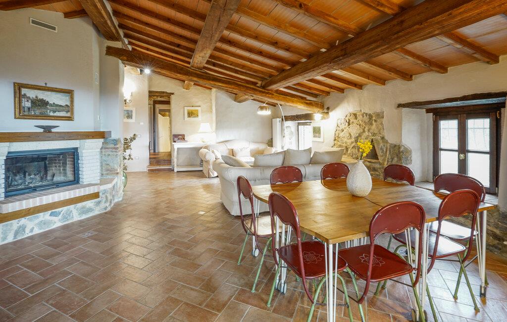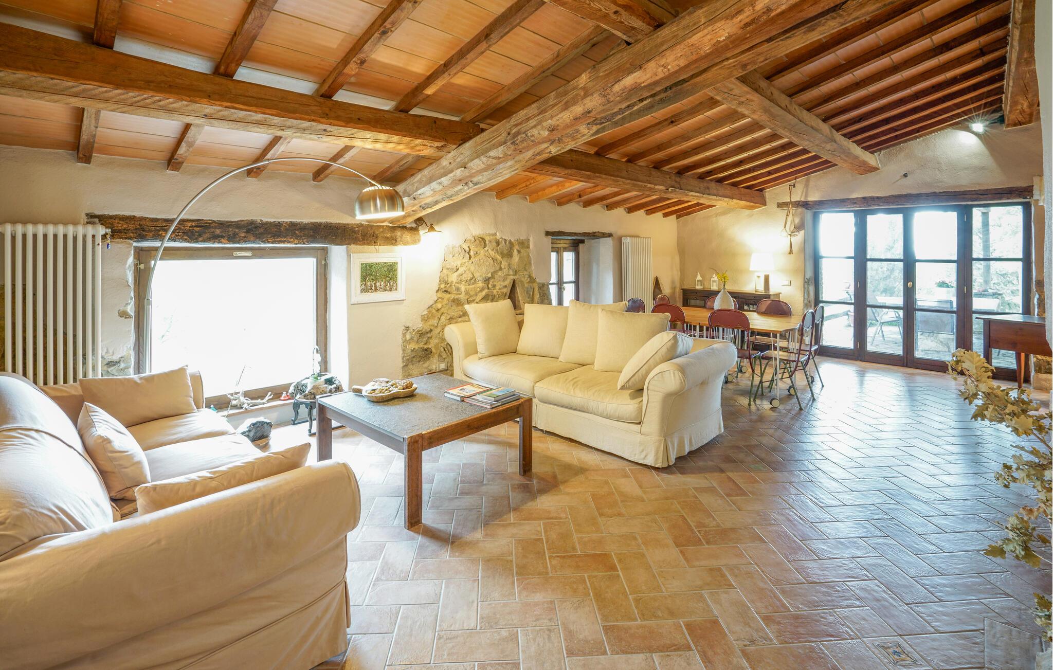 Velkommen til dette autentiske stenhus, der ligger smukt indlejret i det toscanske landskab, og hvor I ude som inde får masser af plads til en ferie med den større familie. Omgivelserne er grønne og frodige, og indvendigt emmer det af hygge og charme med høje og synlige trælofter, bjælker og stenbuer, der giver det indre et rustikt look, som det er nemt at slappe af i. Køkkenet er veludstyret, så tag jer blot god tid til madlavningen, inden der dækkes op til et hyggeligt aftensmåltid med plads til alle.
