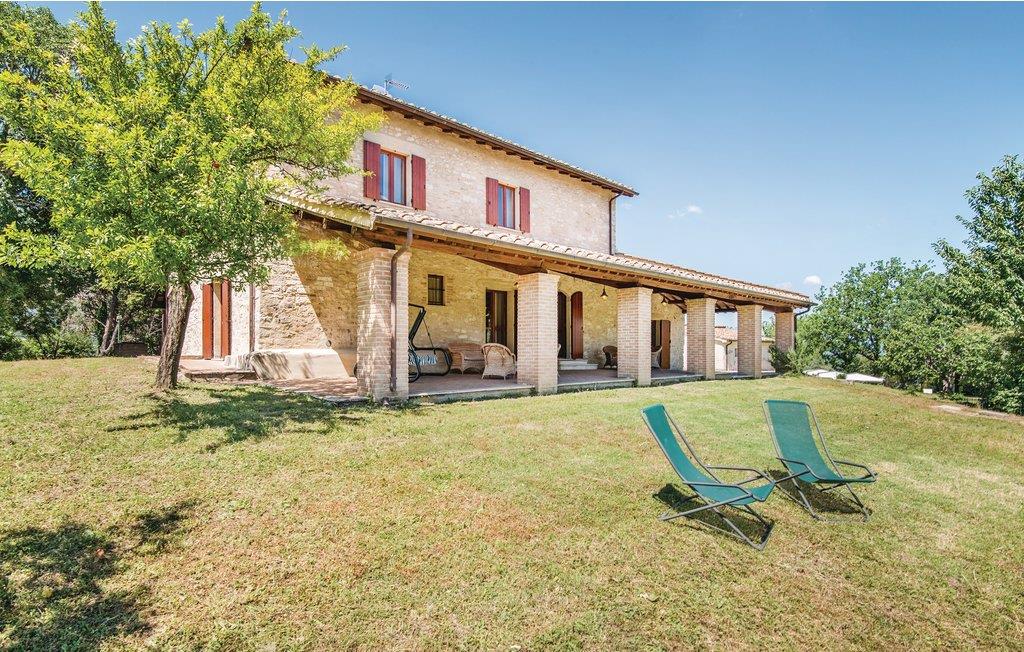 Komfortabelt feriehus beliggende i rolige, bakkede omgivelser, ca. 10 km fra Terni. Foran stuerne (med siddegrupper og et tv-rum med stort tv) og rundt om huset er der store overdækkede terrasser, og over det hele har I en fantastisk udsigt over det typiske, umbriske bakkelandskab. I det veludstyrede køkken er det en leg at lave mad: Tag på indkøb efter lokale specialiteter og drikkevarer som den lokale landvin, olivenolie, rørhatte og trøfler. Ca. 70 m nedenfor huset ligger poolen med solterrasser på den store grund, hvor I kan slappe helt af efter jeres begivenhedsfulde udflugter. Helt klart et besøg værd er den nærliggende middelalderlige lille by Stroncone, de karakteristiske byer Spoleto og Rieti, Piedilucosøen (rafting) og de imponerende vandfald ”Cascata delle Marmore”. Barneseng og kokkeservice kan bestilles (oplys venligst ved booking). Ikke asfalteret tilkørsel.