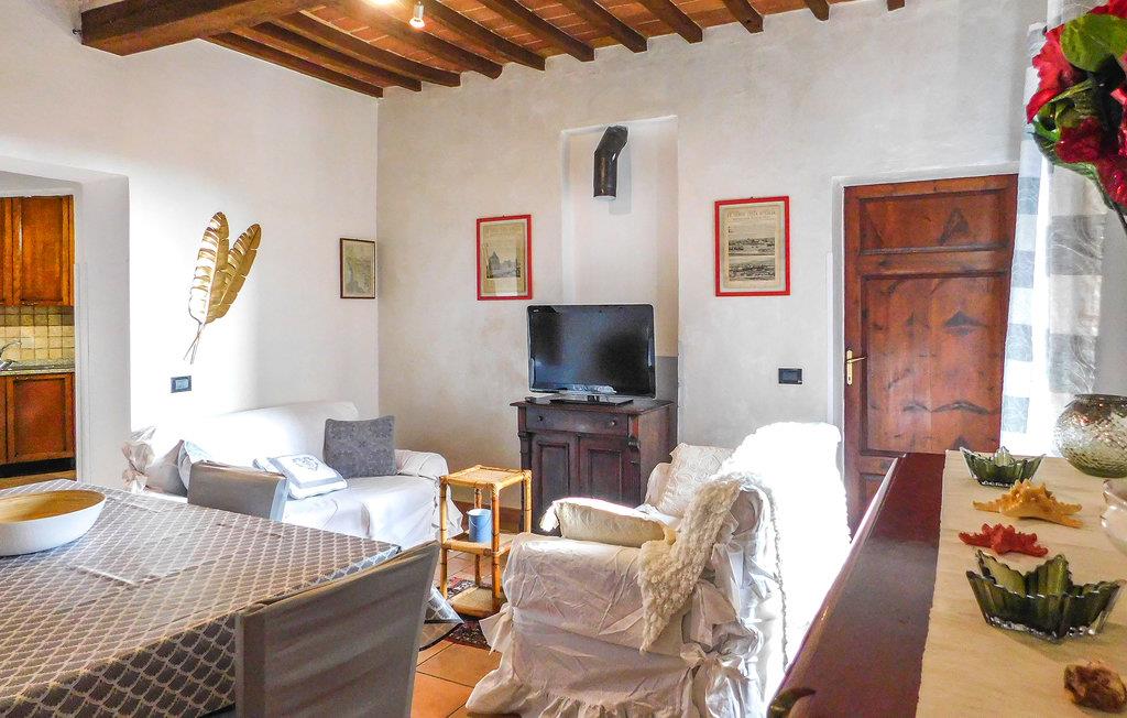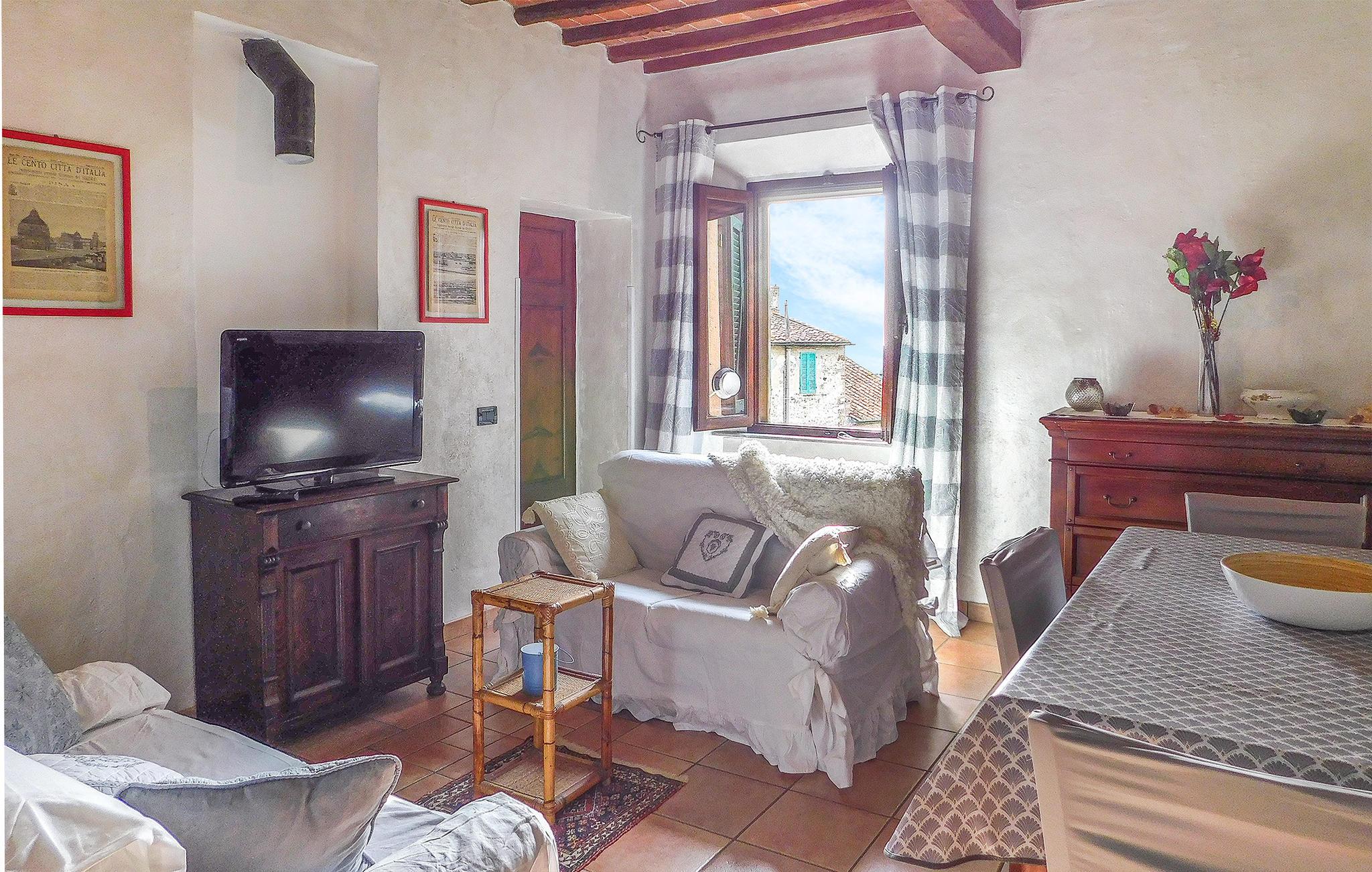 I de gamle gyder og stenhuse føler man sig nogle gange som om, man er blevet transporteret til en anden tid. Det gamle Aldobrandesca-slot i landsbyen bidrager også til den historiske atmosfære. Fra balkonen på anden sal kan I se ud over byens tage med de grønne bakker i baggrunden og falde ind i en unik stemning. I vil føle jer hjemme i lejlighedens hyggelige, autentiske indretning.