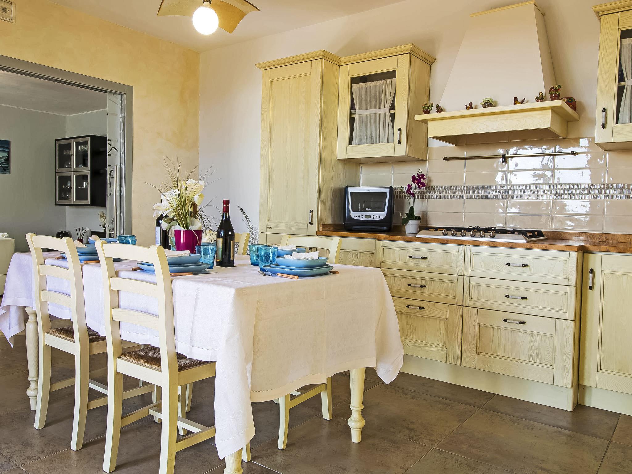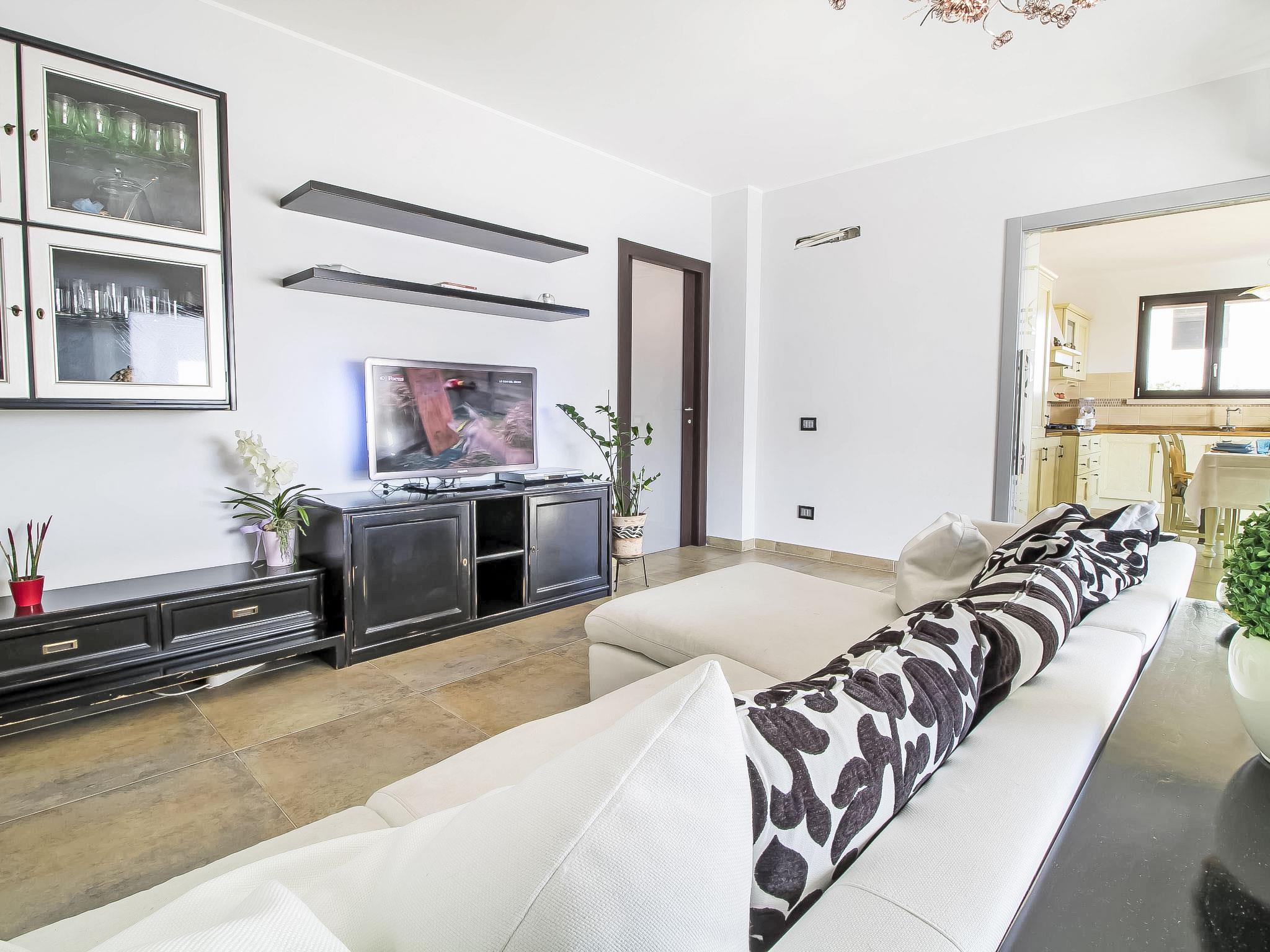 4-room house 130 m2. Spacious, very comfortable and modern furnishings: large living room with digital TV and flat screen. Exit to the garden. 1 double bedroom with TV. 1 room with 2 beds and TV. 1 room with 1 bed, 1 pull-out bed and TV. Kitchen (5 hot plates, oven, dishwasher, microwave, freezer) with dining table and TV. Shower/bidet/WC, double hand-basin. Heating (extra). Patio, garden, porch. Terrace furniture, covered balcony. Facilities: washing machine (extra). Iron, mosquito net, children's high chair, hair dryer. Internet (WiFi, free). Please note: the owner occasionally use the lower floor of the house with separate access. IT049020C2A899WJXJ