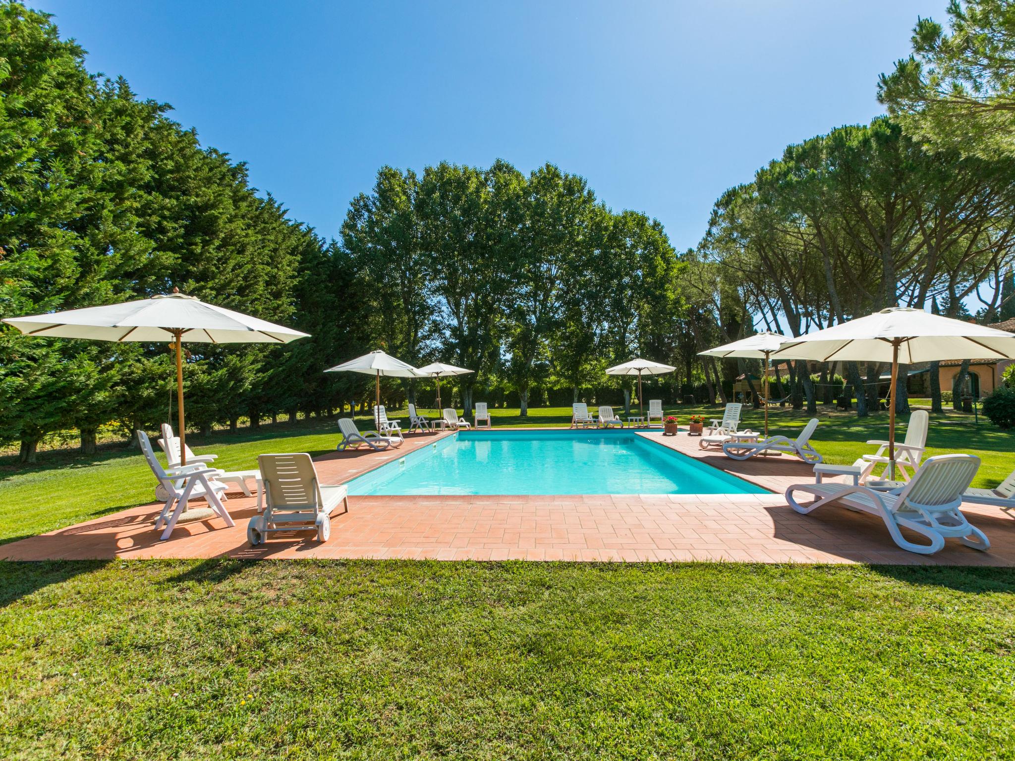 Beautiful country house "Casavecchia", 2 storeys, surrounded by fields and vineyards. 5 apartments in the residence. In the district of Calzalunga 4.5 km from the centre of Suvereto, 20 km from the sea. For shared use: property with trees, lawn for sunbathing, swimming pool (12 x 6 m, seasonal availability: 18.May. - 28.Sep.). Outdoor shower, terrace, garden furniture, barbecue, children's playground. In the complex: reception, lounge with TV, WiFi. Parking on the premises. Shop 4.5 km, supermarket 4.5 km, restaurant 3 km, bus stop 300 m, sandy beach "Parco naturale Rimigliano" 20 km, thermal baths "Calidario" 13 km. Nearby attractions: Grosseto 55 km, Siena 90 km, Isola d'Elba 90 km.