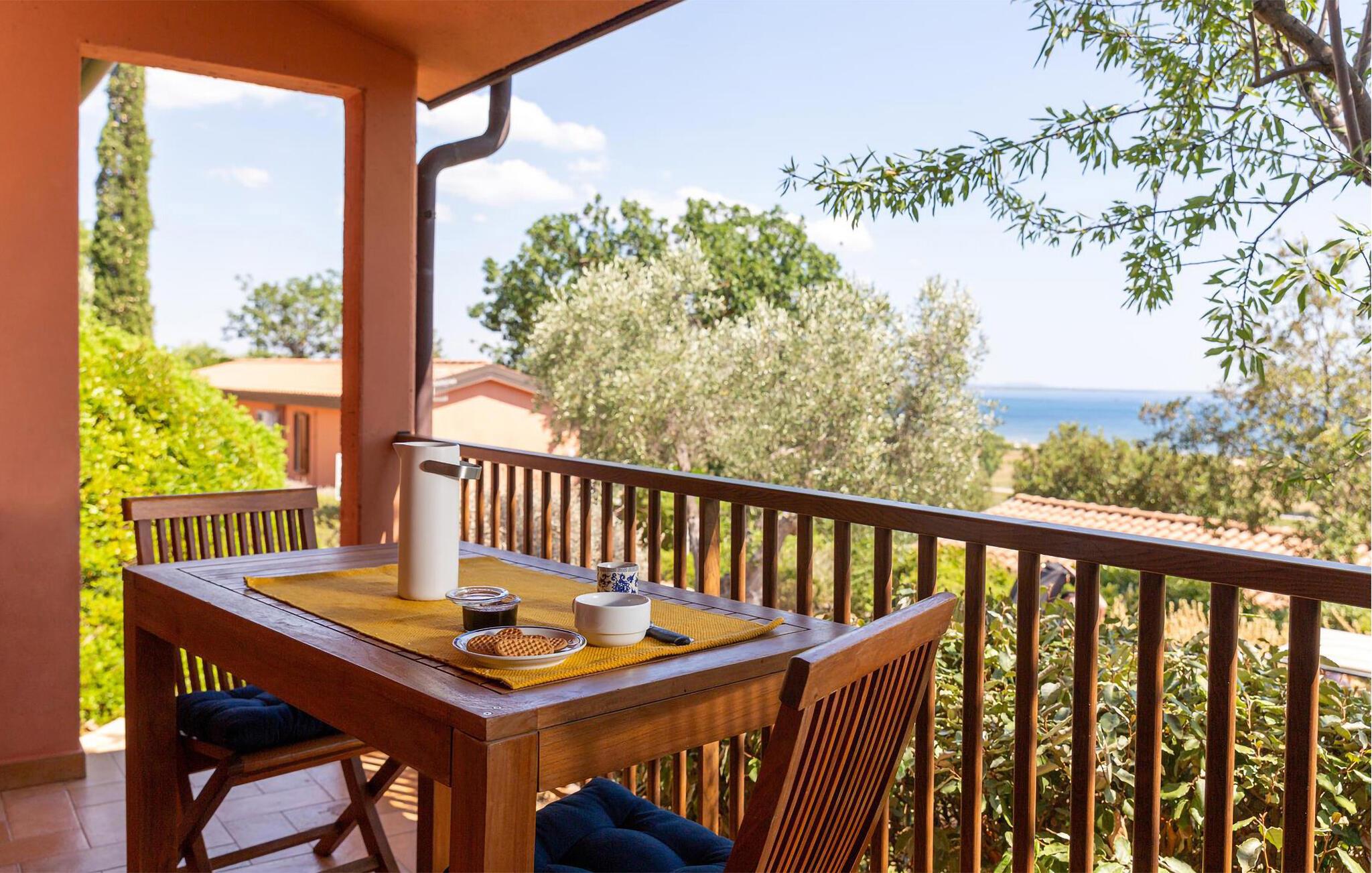 Lidt uden for Talamone, tæt på et arkæologisk område, finder I denne lejlighed, hvor I kan tage en pause fra jeres hektiske hverdag og mærke roen og harmonien i de smukke naturomgivelser. Indenfor er der tænkt nøje over indretningen og farverne, som tilføjer lidt spræl til den lyse atmosfære. De store vinduer lukker masser af naturligt lys ind og giver jer udsigt til den omkringliggende grønne natur. Indretningen skaber følelsen af en ægte sommerbolig og inviterer til at nyde et glas vin på terrassen om aftenen. Tilbring skønne timer i poolområdet med udsigt over havet eller på stranden og i havet. Se jeres børn bygge sandslotte og begrav jeres fødder i sandet.