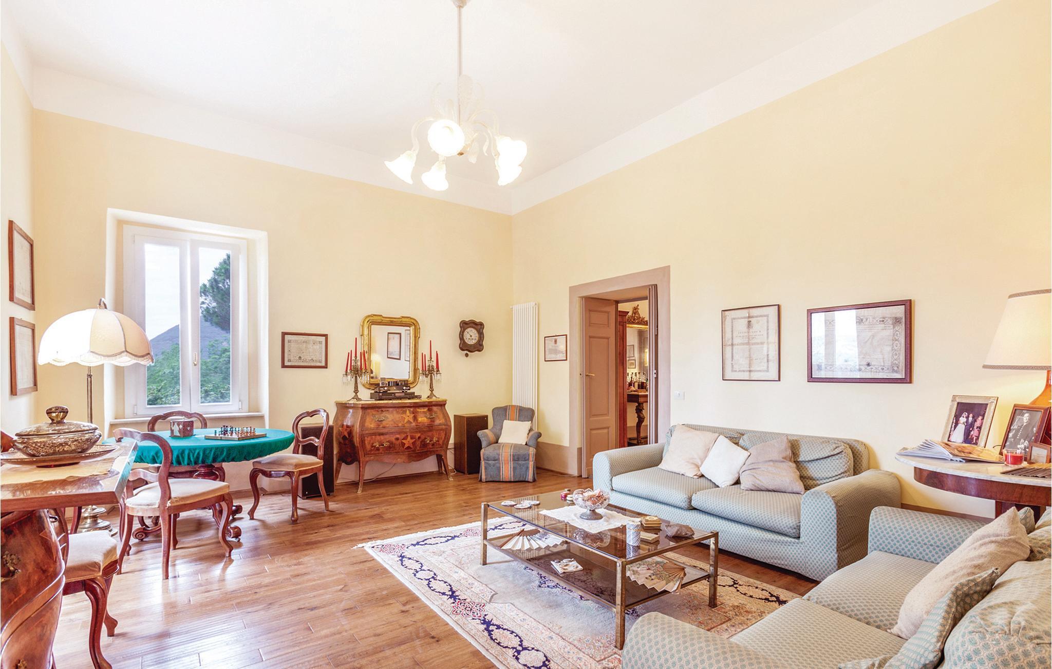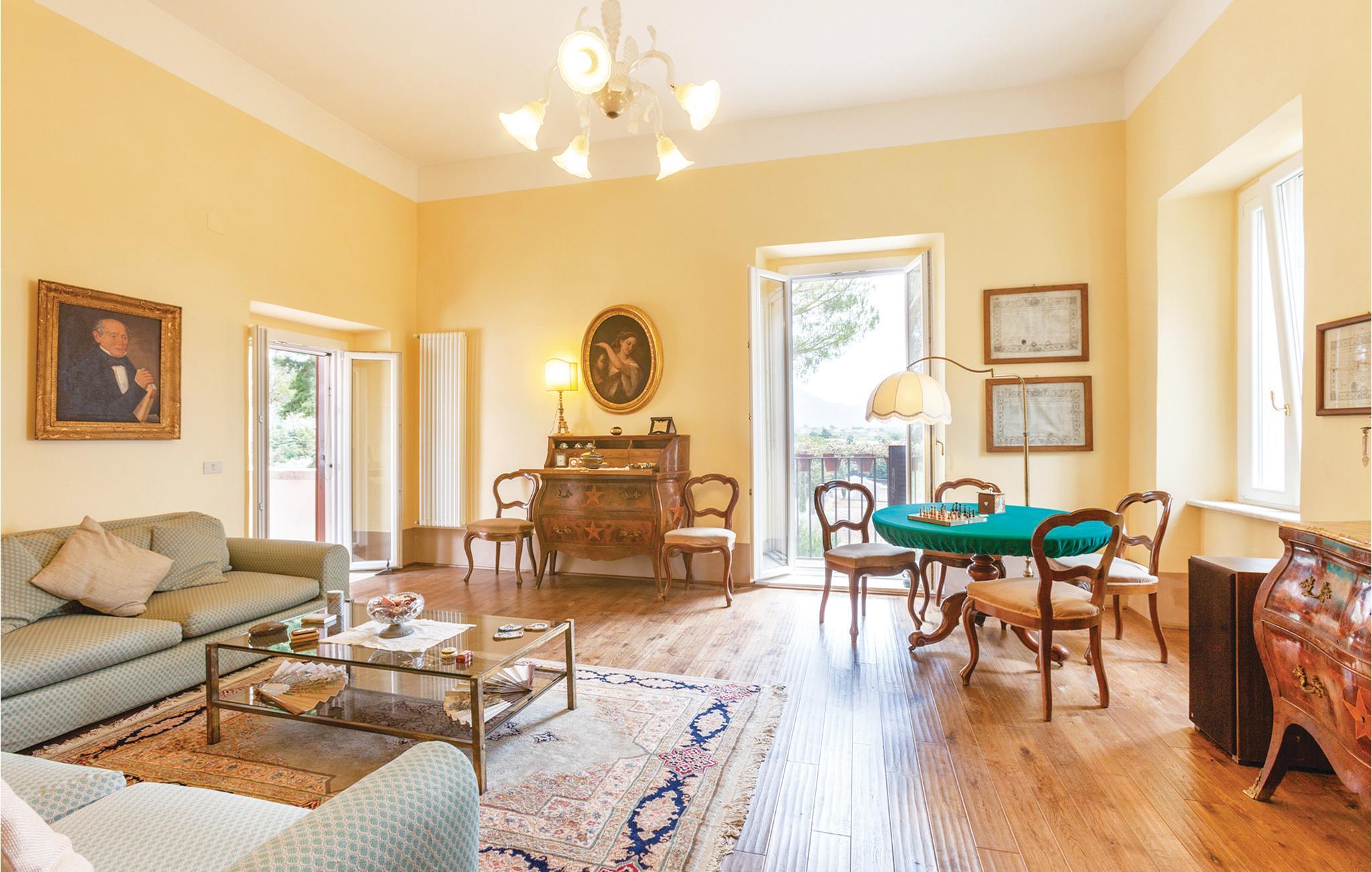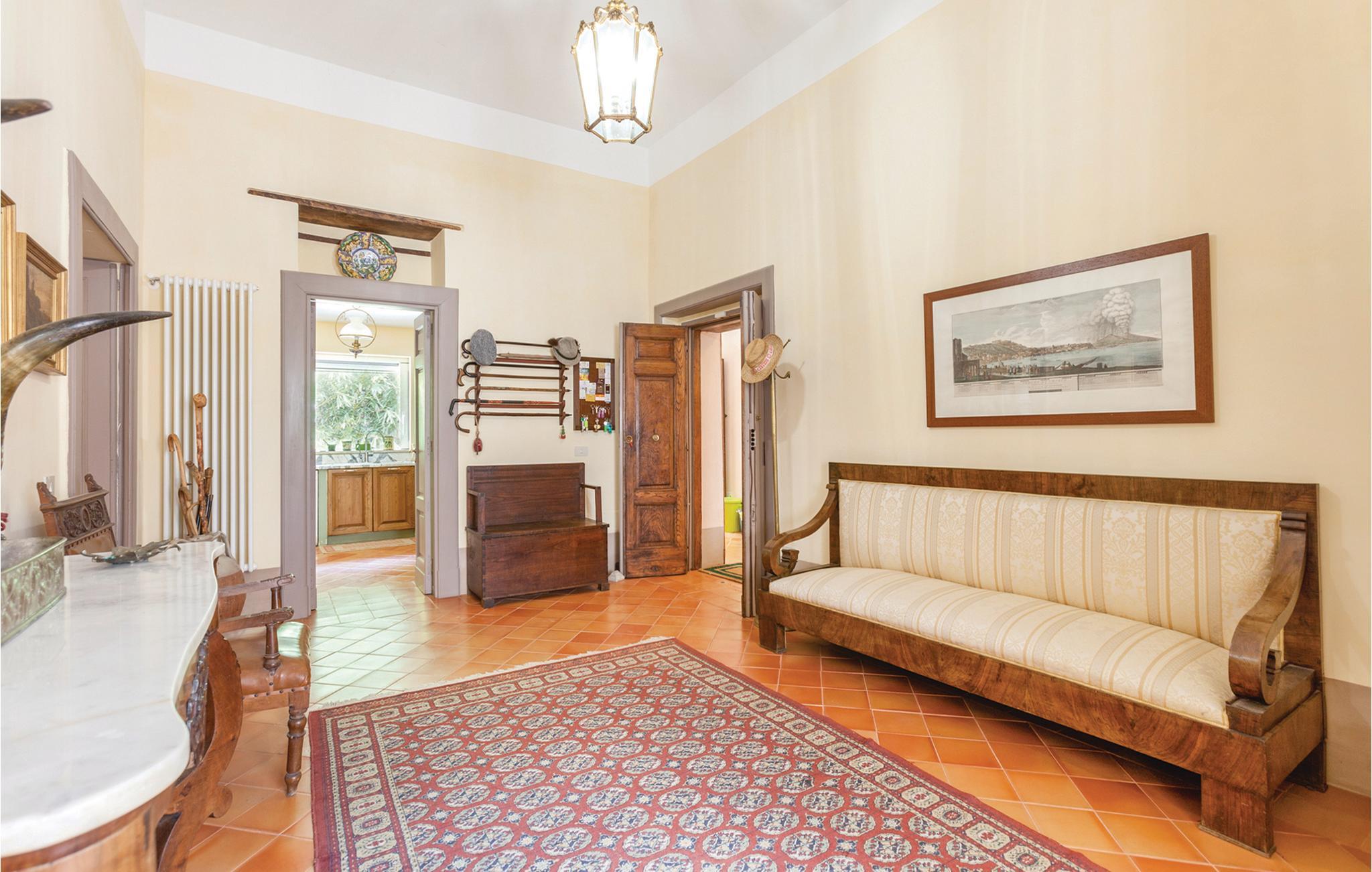 Denne pragtfulde, historiske villa ligger i San Lorenzello, i regionen af Benevento. Det drejer sig om et charmerende feriehus med swimmingpool ved Cerreto Sannita. Indretningen er smagfuld med antikke møbler. Udendørsområderne, billardbordet og bordfodbold byder på afslappede feriedage med familie og venner. San Lorenzello er kendt for sine pottemagere og antikmarkedet, der foregår året rundt på månedens sidste weekend. I de karakteristiske værksteder i den gamle bys gader tilbydes møbler, kunstkeramik og antik kunst samt lokale produkter. Gæsterne kan dertil beundre imponerende vidnesbyrd fra fortiden. 1386 m høje Monte Erbano er hævet over den gamle by af San Lorenzello. Bjerget er opkaldt efter sine helbredende urter, og derfra har I en overvældende panoramaudsigt over dalen. Der er omkring 10 km til kurbadene af Telese. På fem minutter med bilen langs Via Regia ved bredden af floden Titerno venter Parco Sebastiano med dinosaurenes by, en dannelsespark med 15 rekonstruktioner af dinosaurer i fuld skala i passende omgivelser. På omkring en times kørsel kommer I til den vidunderlige by Napoli. Dertil når I på 50 minutter i bil det berømte kongepalads af Caserta eller valfartskirken af Padre Pio i Pietrelcina. På ca. halvanden times kørsel kommer I til de verdensberømte udgravninger af Pompeji. Hvis I vil tage et bad i det skønne hav på den sorrentinske halvø kan I komme til Vico Equense på små to timer. Cerreto Sannita 2 km.