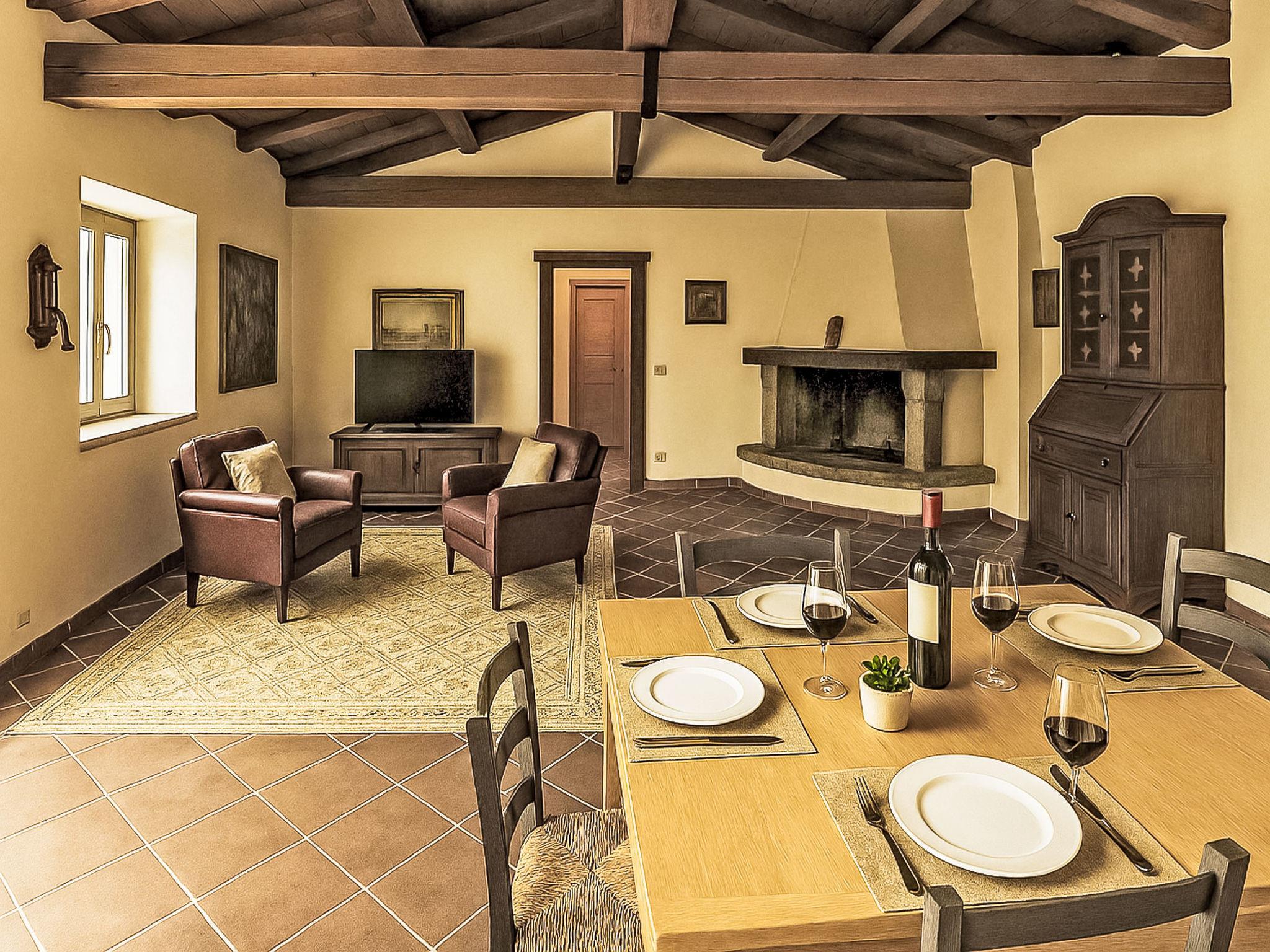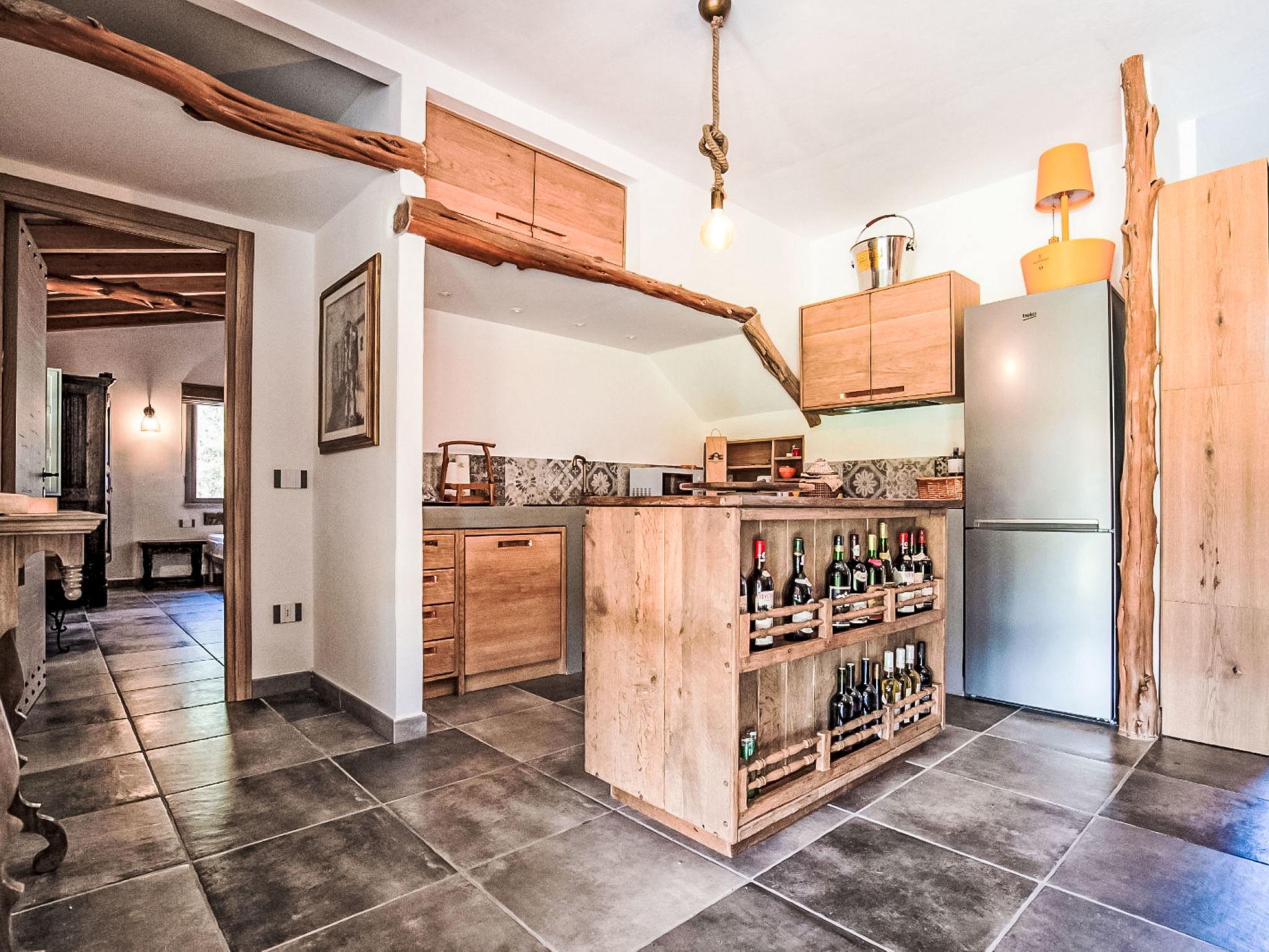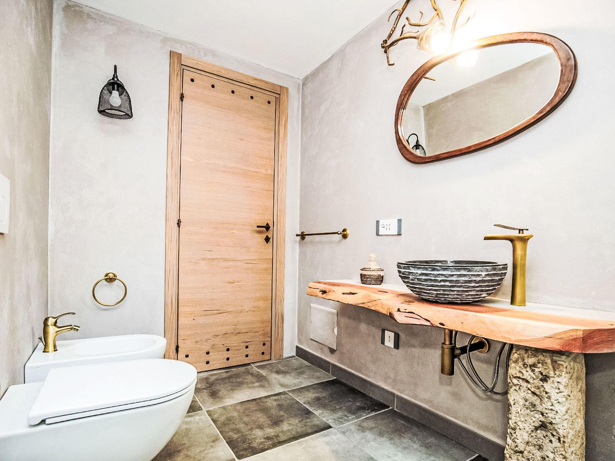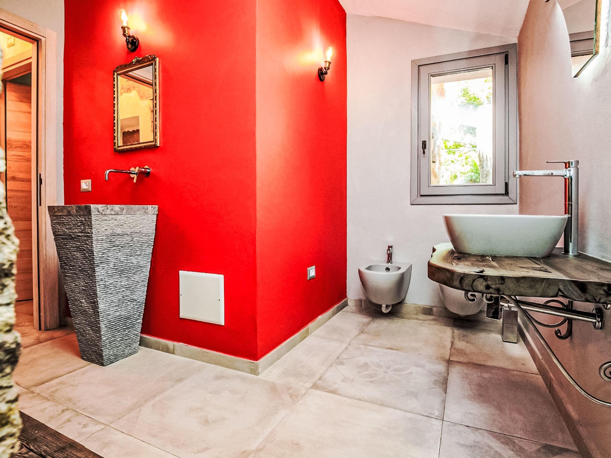 "Stazzu Sarra di Monti", 7-room villa 276 m2. Tasteful and cosy furnishings: living/dining room with open-hearth fireplace (only for decoration), satellite TV (flat screen). Exit to the veranda. Living/dining room with open-hearth fireplace (only for decoration), satellite TV (flat screen). Exit to the garden. 4 rooms, each room with 1 double bed, TV and flat screen. 1 room with 2 beds and TV (flat screen). Open kitchen (4 hot plates, oven, dishwasher, 4 induction hot plates, toaster, kettle, electric coffee machine). 4 showers/bidet/WC. Air-conditioning, forced-air heating. Large garden, lawn. Terrace furniture, deck chairs, sitting area. Beautiful panoramic view of the mountains, the valley and the swimming pool. Facilities: washing machine, iron, children's high chair, baby cot for up to 2 year olds, hair dryer. Internet (WiFi, free). Parking (4 cars). Please note: non-smoking house. Smoke alarm, fire extinguisher. No internal connecting door between the separated properties. The pool mentioned in the description is for private use. IT090021B4000F1283