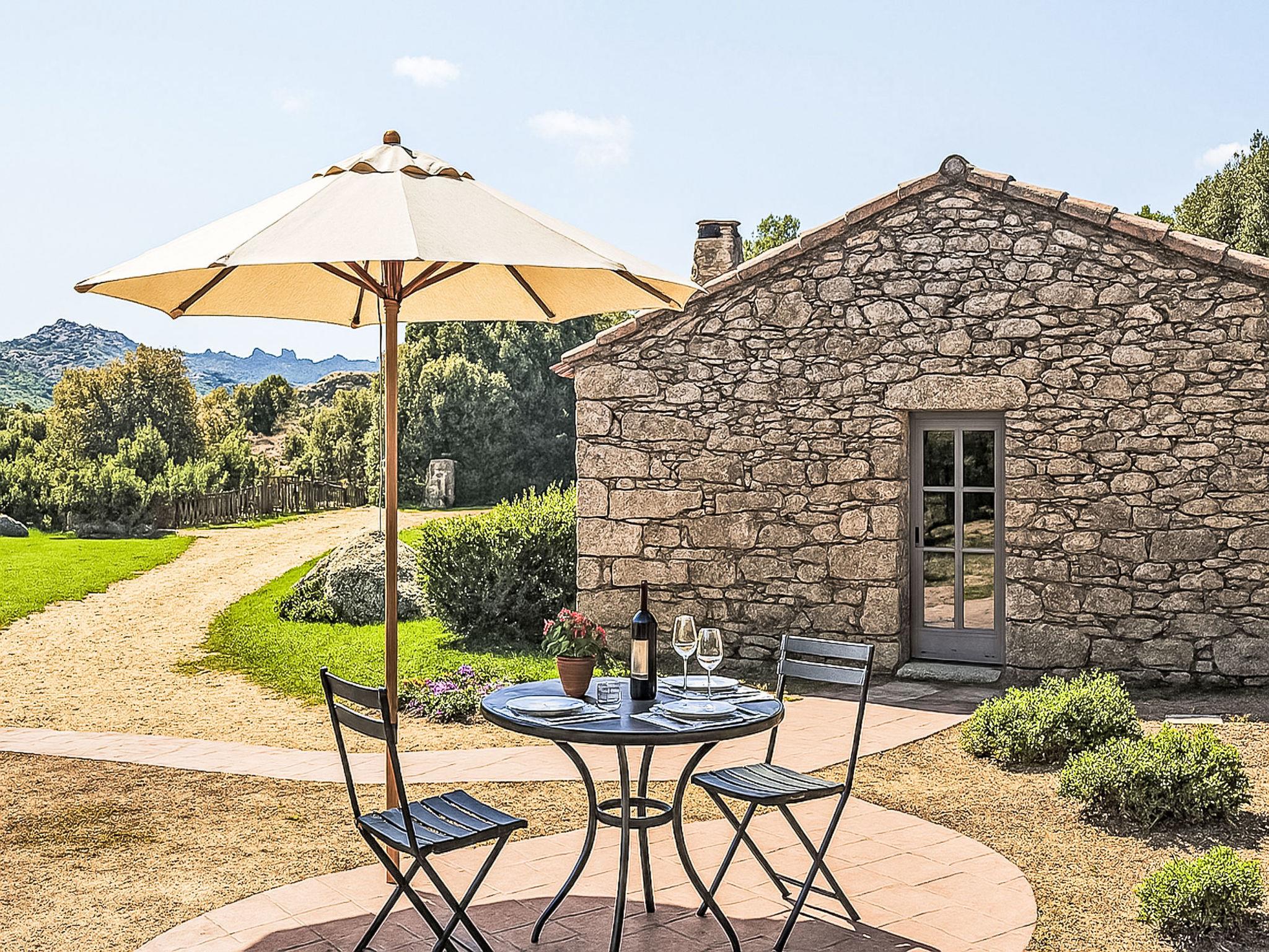 Rustic, comfortable country house "Monti di Sarra". Property composed of main house and outbuilding, 5 km from the centre of Calangianus, in a secluded, quiet, elevated position on top of a hill, 45 km from the sea, 45 km from the beach. For shared use: large garden plants and trees, meadow 2'000 m2, swimming pool (14 x 6 m, depth 150 cm, seasonal availability: 01.Apr. - 31.Oct.) with shutter cover and salt-electrolysis pool-cleaning system. Outdoor shower, pool maintenance by the owner/gardener. In the house: washing machine, tumble dryer. Motor access to 30 m from the house. Parking at the house. Grocery 6 km, supermarket 6 km, bakery 6 km, bus stop 7 km, sandy beach "Pittulongu" 45 km. Riding stable 15 km, sports centre 15 km. Nearby attractions: Olbia 45 km, Costa paradiso 42 km, Alghero 113 km, Santa Teresa 50 km, Palau 49 km. Please note: car recommended. Residence with electric gates. Animals in the neighbourhood. The tap water has no drinking water quality.