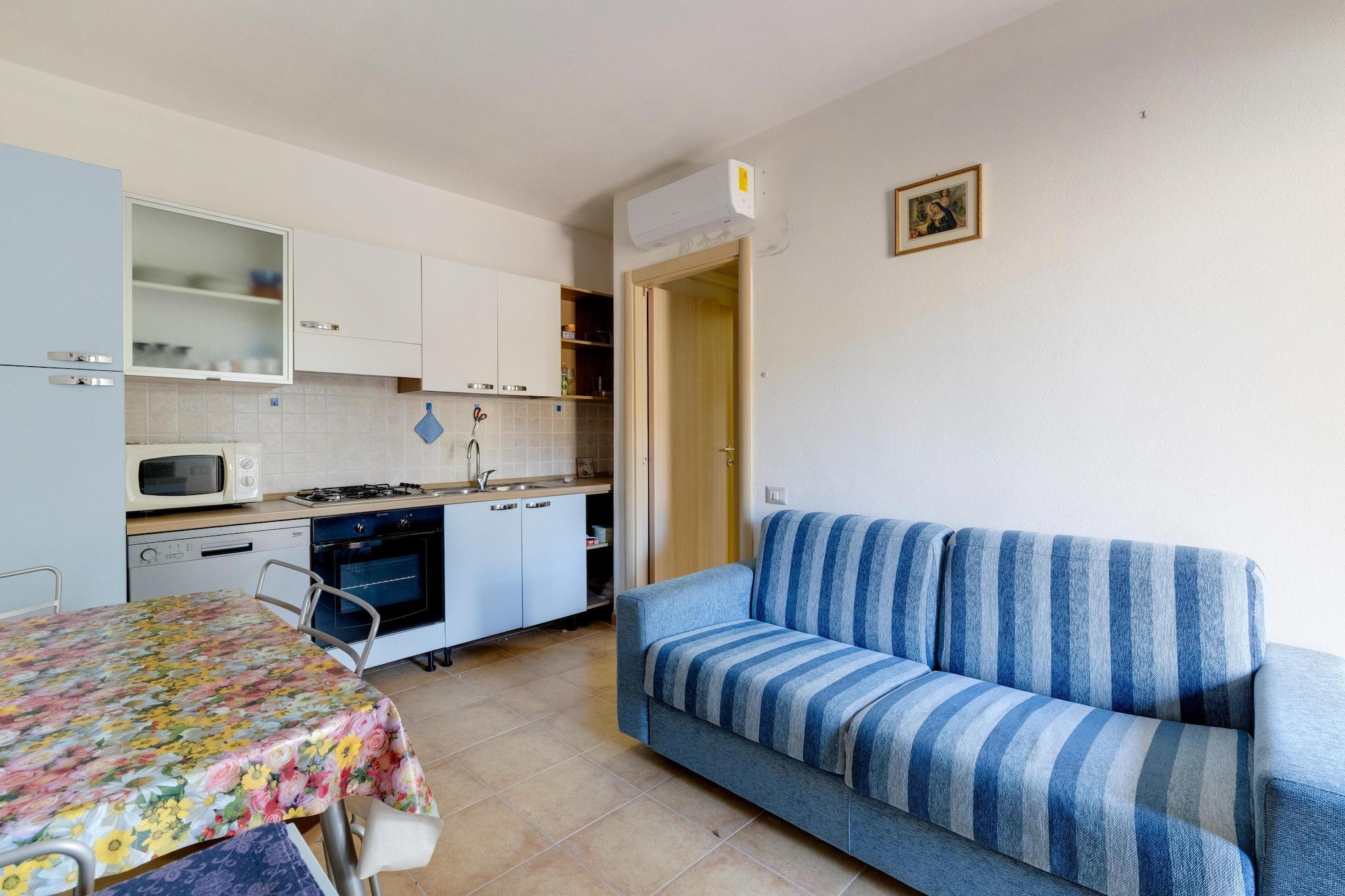 I hjertet af Tergu, kun 5 km fra Castelsardo, ligger denne hyggelige lejlighed i et roligt ejerlejlighedskompleks med fælles pool, perfekt til afslapning på sommerdage. Huset har aircondition for at sikre komfort selv i de varmeste måneder, har en vaskemaskine og en lille udendørs veranda, hvor du kan spise morgenmad eller nyde et øjebliks afslapning. Tergu er en lille, rolig landsby, omgivet af grønne områder og kendetegnet ved en autentisk og afslappende atmosfære. Her kan du besøge den stemningsfulde romanske basilika Nostra Signora di Tergu og nyde den ro, der er typisk for sardiske landsbyer. En kort køretur tager dig til Castelsardo, en af de smukkeste landsbyer i Italien, med dens Doria-slot, naturskønne gyder, kunsthåndværkerbutikker og pragtfulde strande som Lu Bagnu. Beliggenheden er ideel til at udforske det nordlige Sardinien: Du kan arrangere udflugter til øen Asinara, besøge Stintino med den berømte La Pelosa-strand eller opdage bugterne og de vilde landskaber langs kysten. Det omkringliggende område er hjemsted for et væld af traditionelle restauranter, hvor du kan nyde lokal mad, sommermarkeder og traditionelle begivenheder.