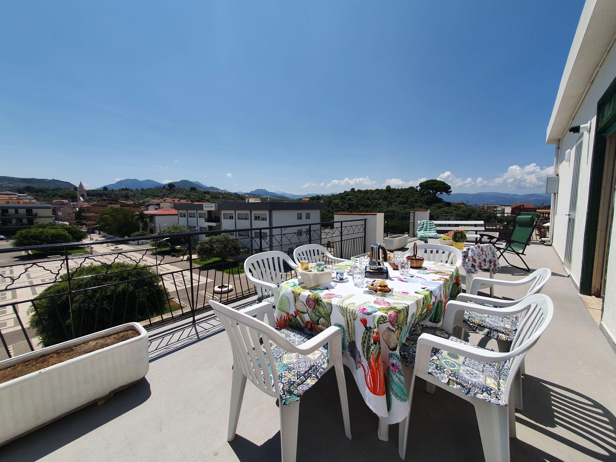 "Camalù", 4-room penthouse 150 m2 on 3rd floor. Bright, comfortable furnishings: entrance hall. Exit to the terrace. Living/dining room with 1 double sofabed, TV and fan. 2 double bedrooms, each room with air conditioning and forced-air heating. Exit to the terrace. 1 room with 2 beds. Kitchen-/living room (oven, Gas stove, 4 gas rings, toaster, microwave, electric coffee machine) with dining table, open-hearth fireplace (only for decoration). Exit to the terrace. Bath/bidet/WC, shower/WC. Heating, forced-air heating. Heating available only from 01.12. to 31.03, Heating not available in all rooms. Large terrace 30 m2. Terrace furniture. Partial view of the sea and the resort. Facilities: washing machine, iron, children's high chair, baby cot for up to 2 year olds (extra), hair dryer. Internet (WiFi, free). Please note: suitable for families. Smoke alarm, fire extinguisher, no lift. When there are less than the maximum number of guests staying at the property, not all of the bedrooms will be available for use. IT083106C29YUXEN4A