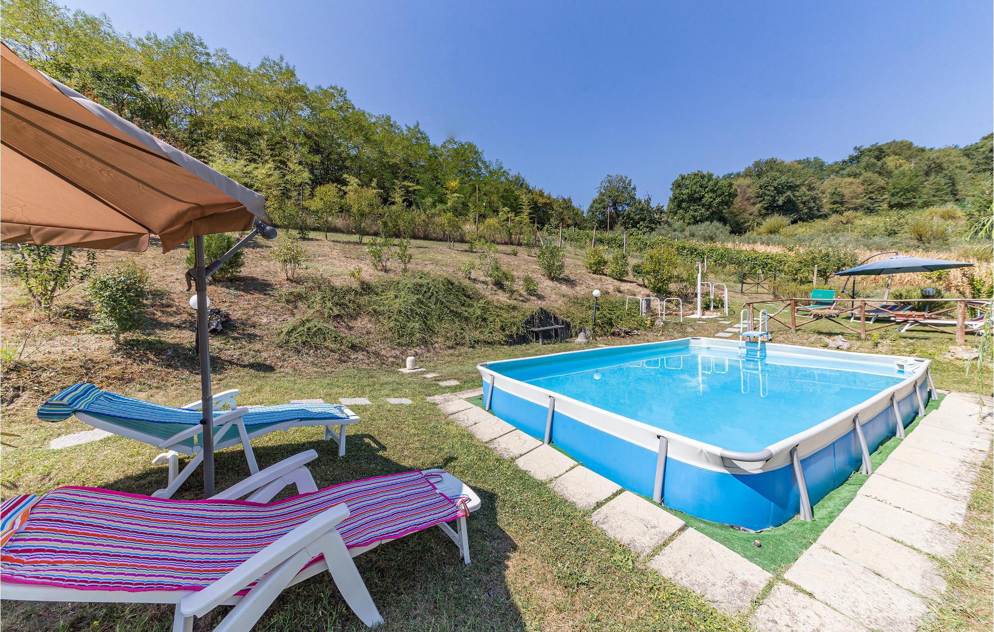 Dette indbydende rosarøde feriehus ligger omgivet af vinbjerge, blot en km fra den lille by Terranuova Bracciolini. I stuen er der åben kamin og et køkkenhjørne, huset er moderne og praktisk indrettet. Bag huset ligger en privat have med overdækket siddeplads, grill, et svømmebassin der står på jorden og en plæne til solbad. Her kan I både bade og tage solbad i fred og ro. Udflugtsmål: den nærliggende Chiantiregion, Arezzo (35 km), Siena og Firenze (begge 60 km). Ejer bor i nabohuset, hvor I kan leje ekstra værelser.