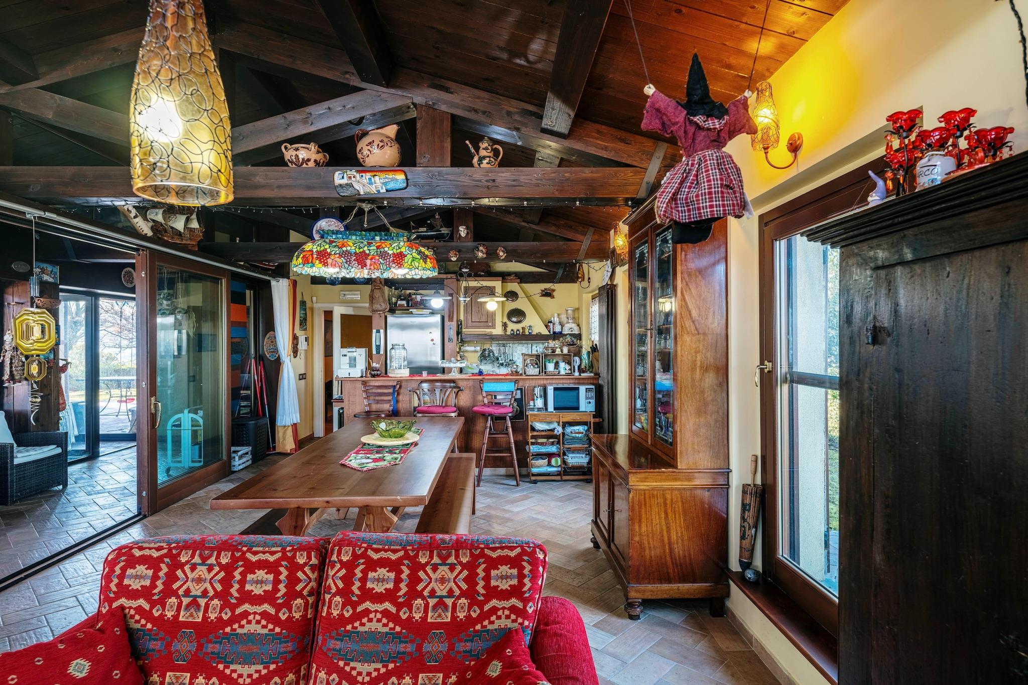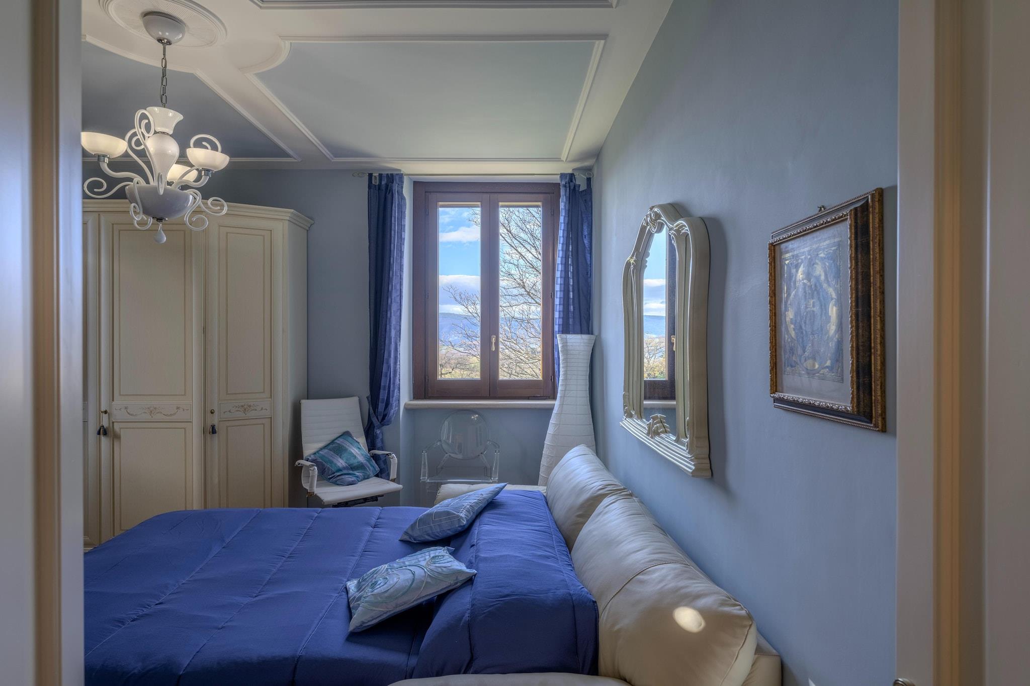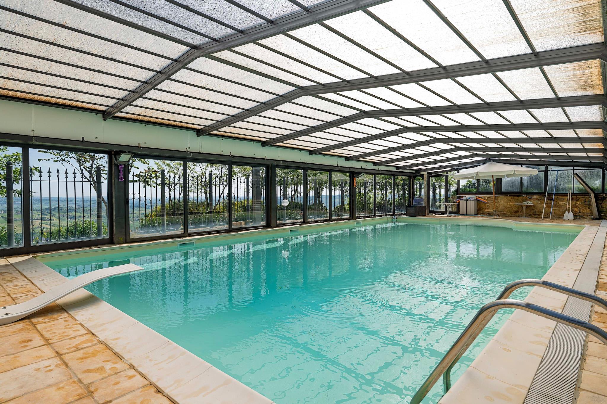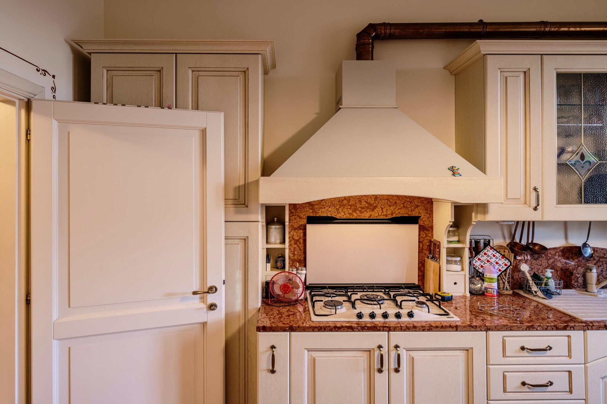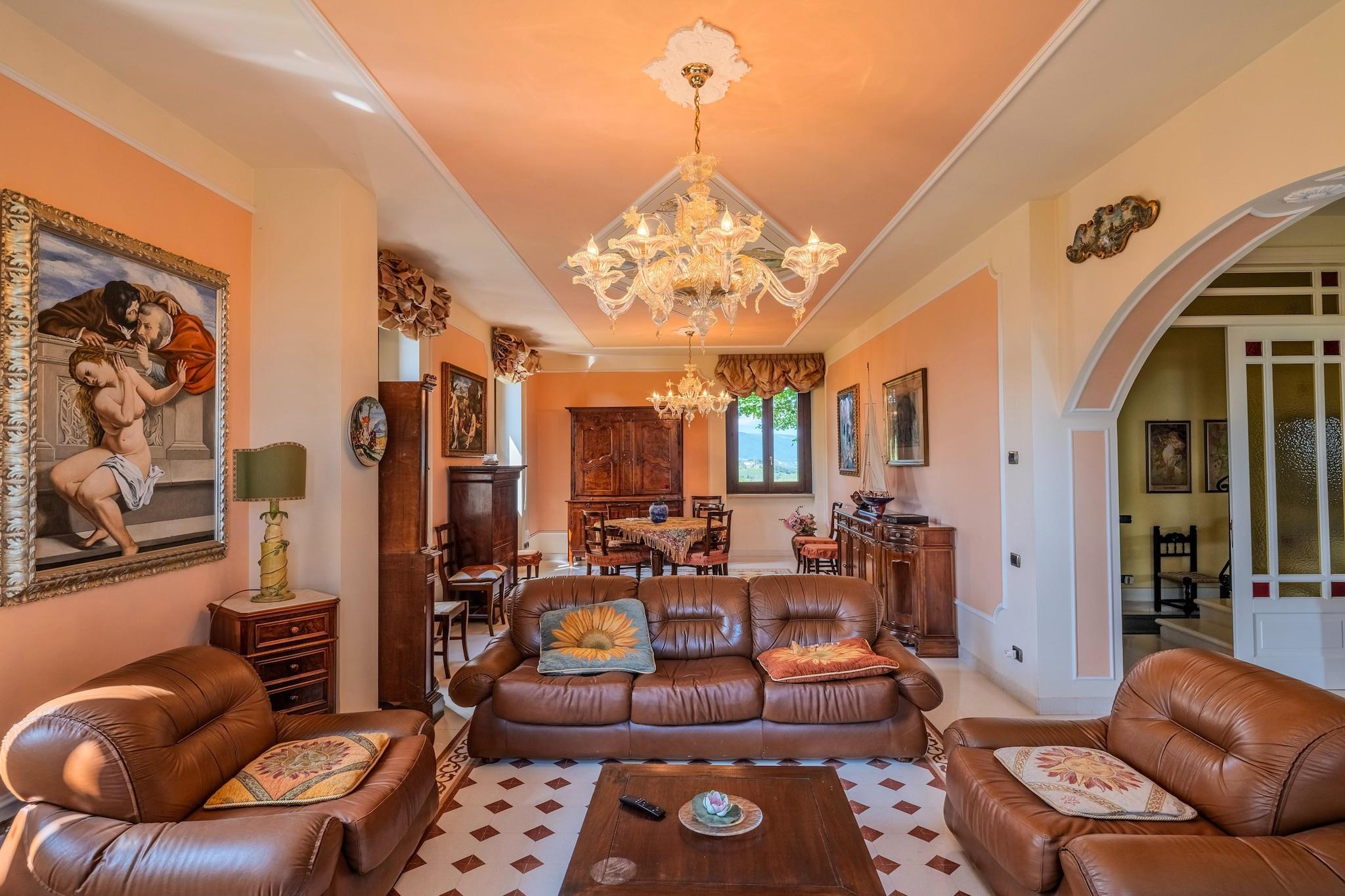 Denne raffinerede bolig er smukt beliggende cirka 500 meter over havets overflade, perfekt renoveret og omgivet af de fredfyldte landskaber i Marche-landskabet. Med et ekspansivt indre areal på 450 kvadratmeter og yderligere 110 kvadratmeter anneks kan villaen komfortabelt rumme op til 12 gæster, og byder på rummelige, elegante opholdsområder, der blander historisk charme med moderne komfort. Indvendigt kombinerer designet kunstfærdigt moderne elementer med antikke møbler og tilbyder indbydende lounger, fuldt udstyrede køkkener og smagfuldt indrettede soveværelser. Hver etage er udstyret med luksuriøse badeværelser med hydromassagebrusere, mens kælderen har et fitnesscenter, et hydromassagebadekar og et vaskerum for ekstra bekvemmelighed. Annekset, der er forbundet med en stilfuld jern- og glaskorridor, sikrer privatlivets fred og uafhængighed for gæsterne. Beliggende på en generøs 3.800 kvadratmeter grund inviterer de udendørs rum til afslapning med en indendørs swimmingpool på 8x14,5 meter, tilgængelig til brug fra maj til oktober. En udendørs spiseplads beliggende midt i frodige grønne områder forbedrer oplevelsen af at spise under åben himmel. Beliggende kun en kort afstand fra Tolentino og tilbyder nem adgang til den fantastiske Conero Riviera og Sibillini Mountains Park, fungerer denne villa som en ideel base for eksklusive kulturelle, kulinariske og naturalistiske eventyr. Det er velegnet til at rumme tre familier, så alle kan nyde deres eget private rum, mens de deler mindeværdige øjeblikke sammen.