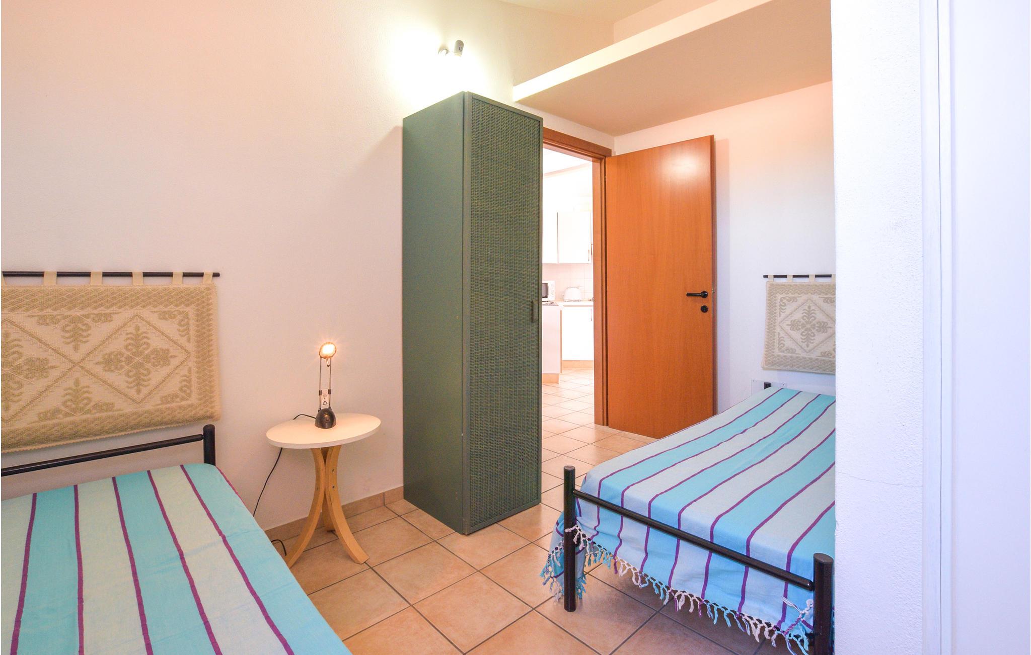 Den funktionelt indrettede ferielejlighed ligger på første sal i en beboelsesbygning og har to soveværelser, et med en dobbeltseng og et med to enkeltsenge, hvilket plads til fire personer, som får en skøn ferie her. Der er myggenet i soveværelset og på badeværelset. Glæd jer til en vidunderlig udsigt over havet.