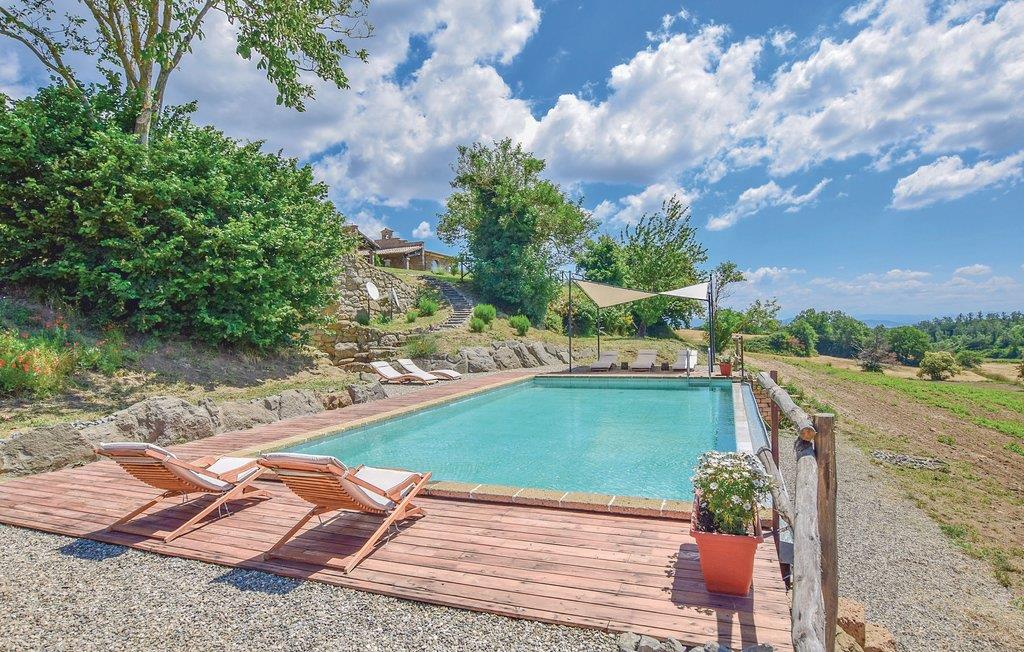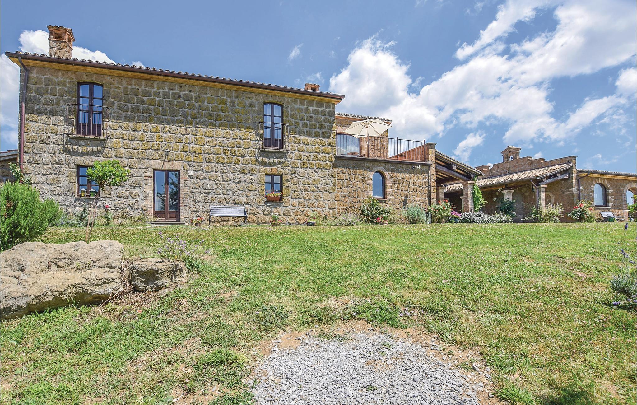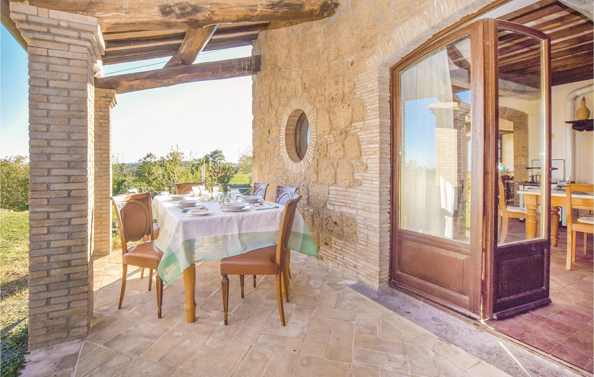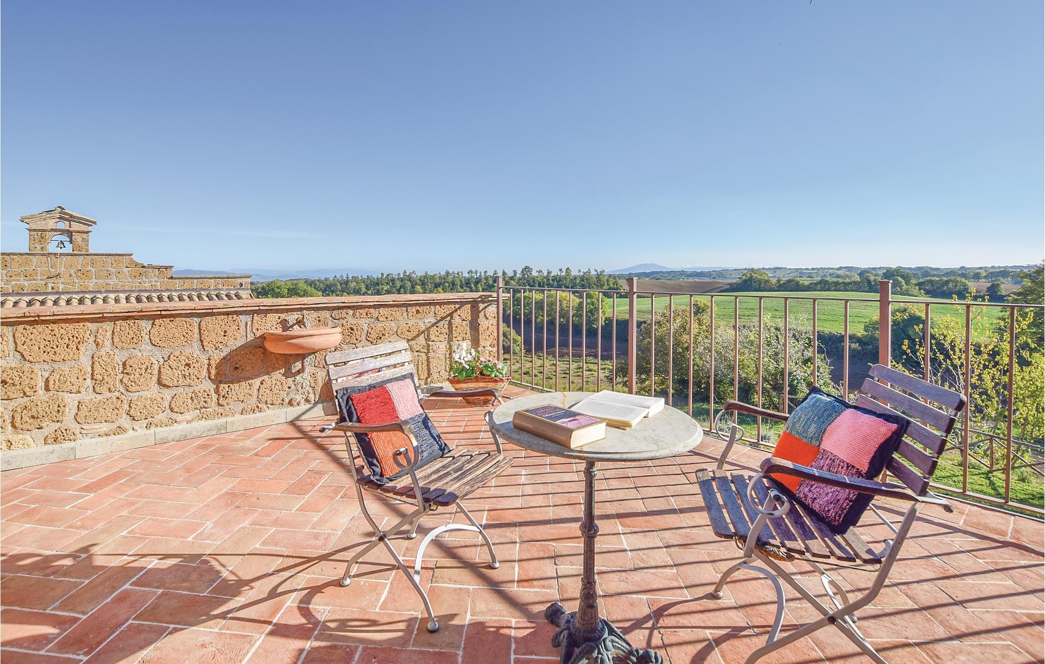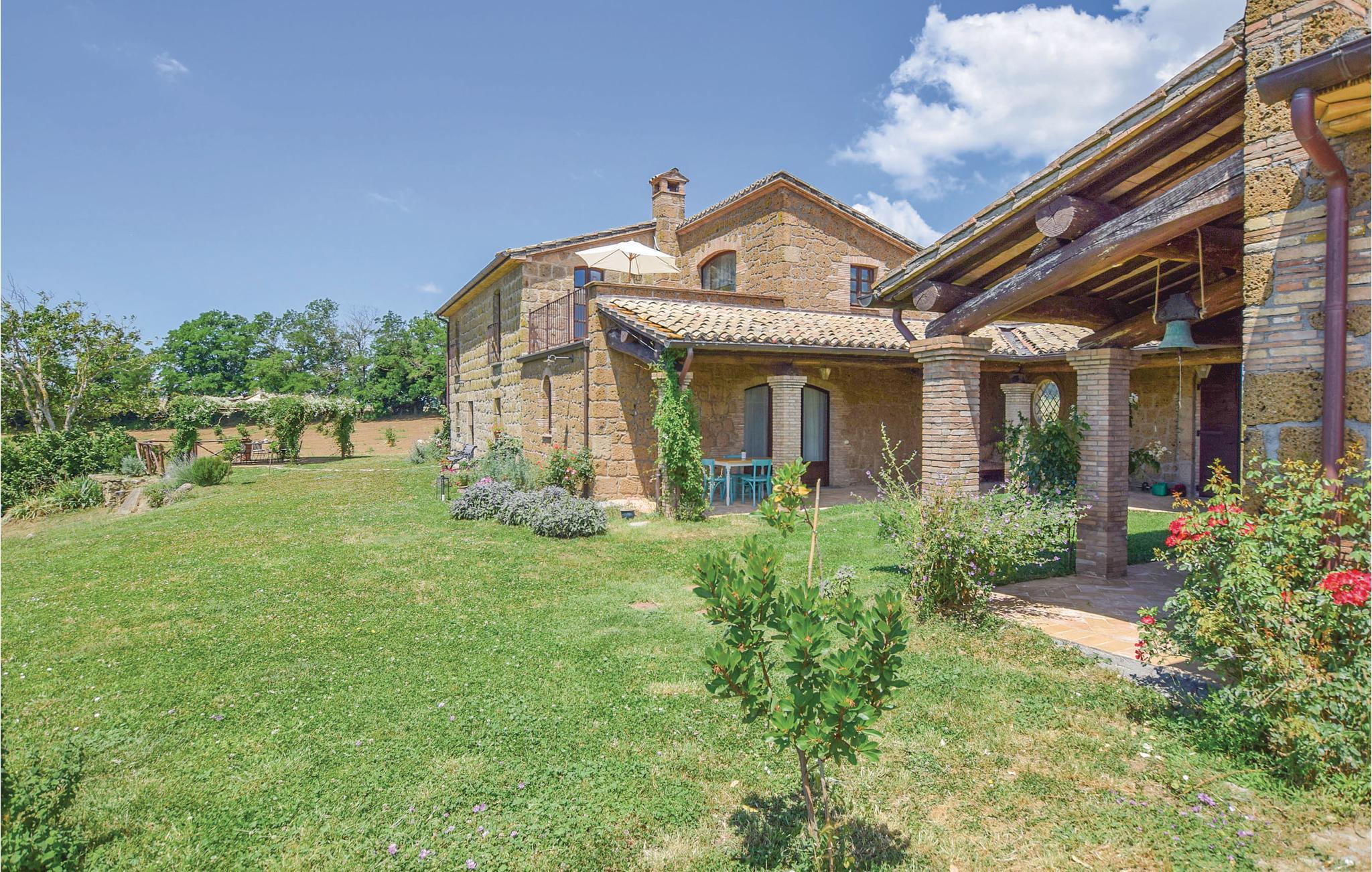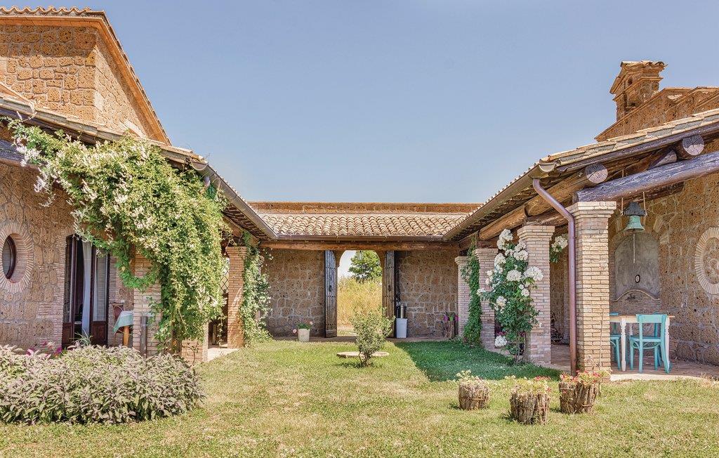 Her har I en stor del af et landhus med privat pool til rådighed. Feriehuset ligger på landet i bakkerne mellem regionerne Umbrien og Latium med en skøn panoramaudsigt. Feriedomicilet består af to separate enheder, der er forbundet med en smuk indre gård. Den meget diskrete ejer bor i en lille del af huset på samme grund og har helt egen indgang udefra. I kan slappe af på den indbydende overdækkede veranda med bord og stole, samt har store udendørs områder i haven og en grill til rådigheden. Den del af bygningen, som I beboer, er i to etager og smagefuldt indrettet og her er god plads. Husets beliggenhed er helt unik og alle der holder af natur er på rette sted. Der er et utal af interessante udflugtsmål: Civita di Bagnoregio, 7 km, Orvieto med sin vidunderlige domkirke 14 km, Bolsenasøen 14 km, Tuscania 45 km, Todi, 48 km og Tarquinia med sine velholdte etruskergrave, strande og havet 70 km. Vil I en tur til Rom (132 km) så tag motorvejen E35/A1 i Orvieto (17 km). Eller tag toget fra Orvieto Scalo og bliv sat af direkte i centrum af Rom.