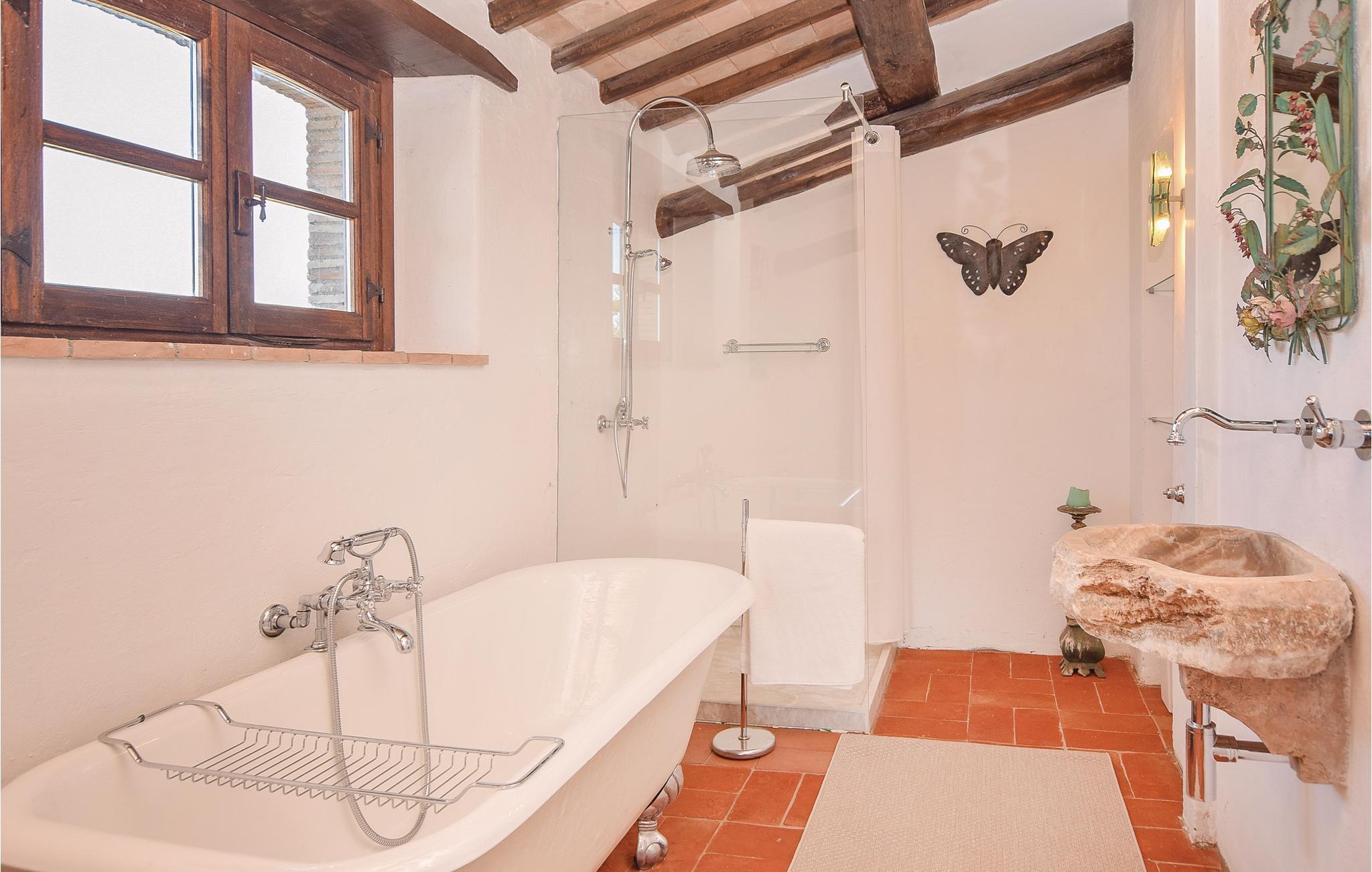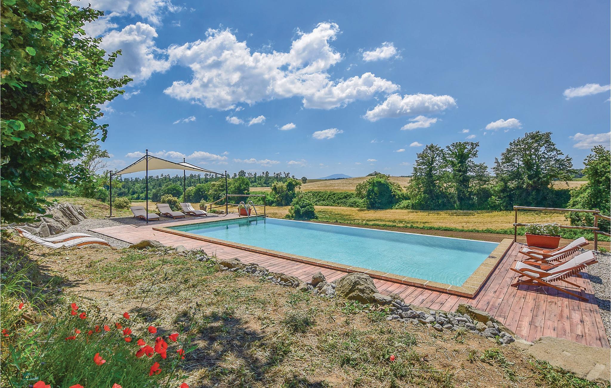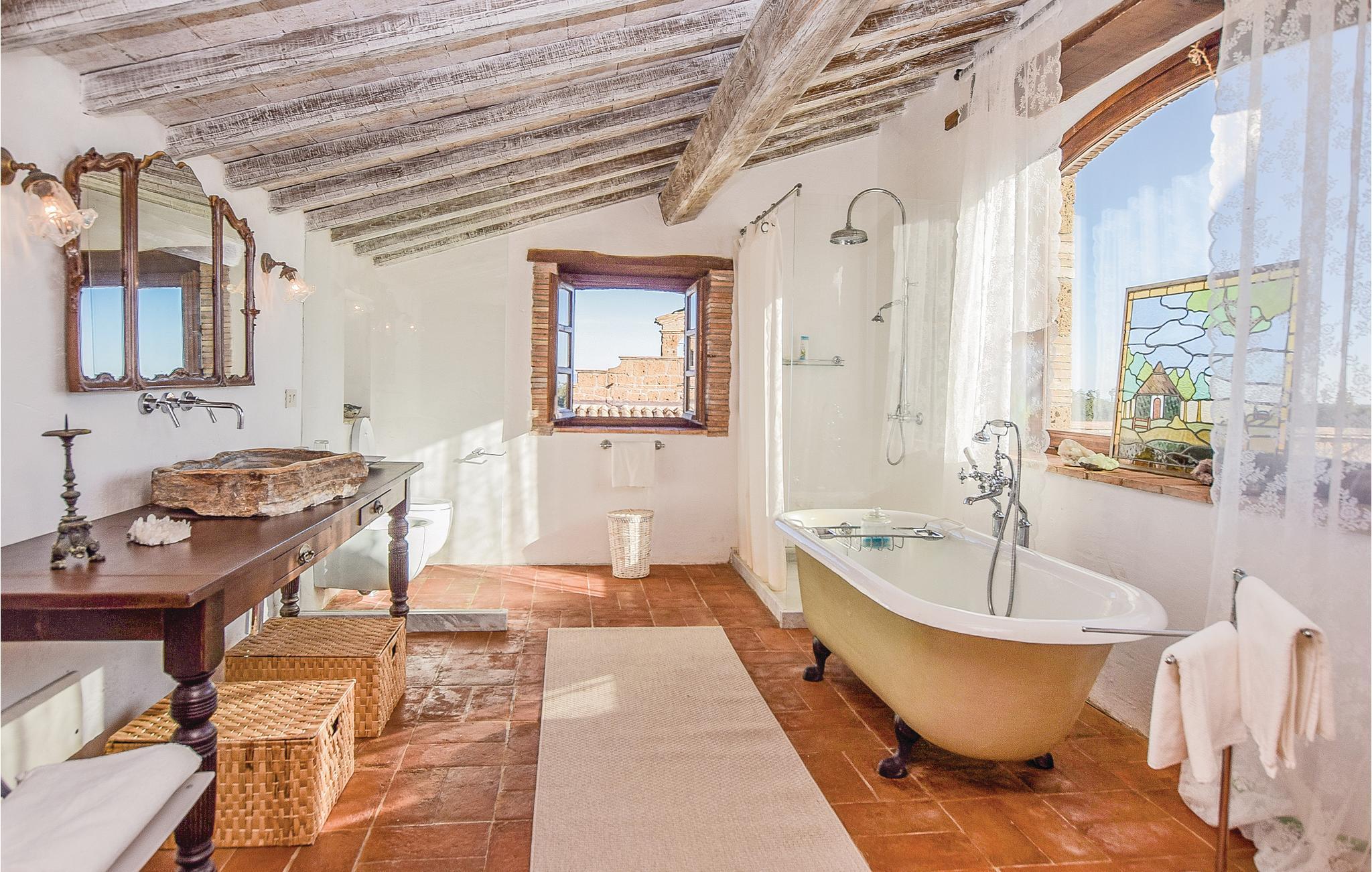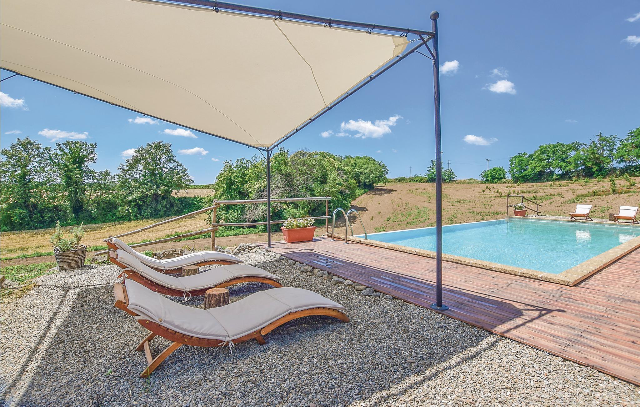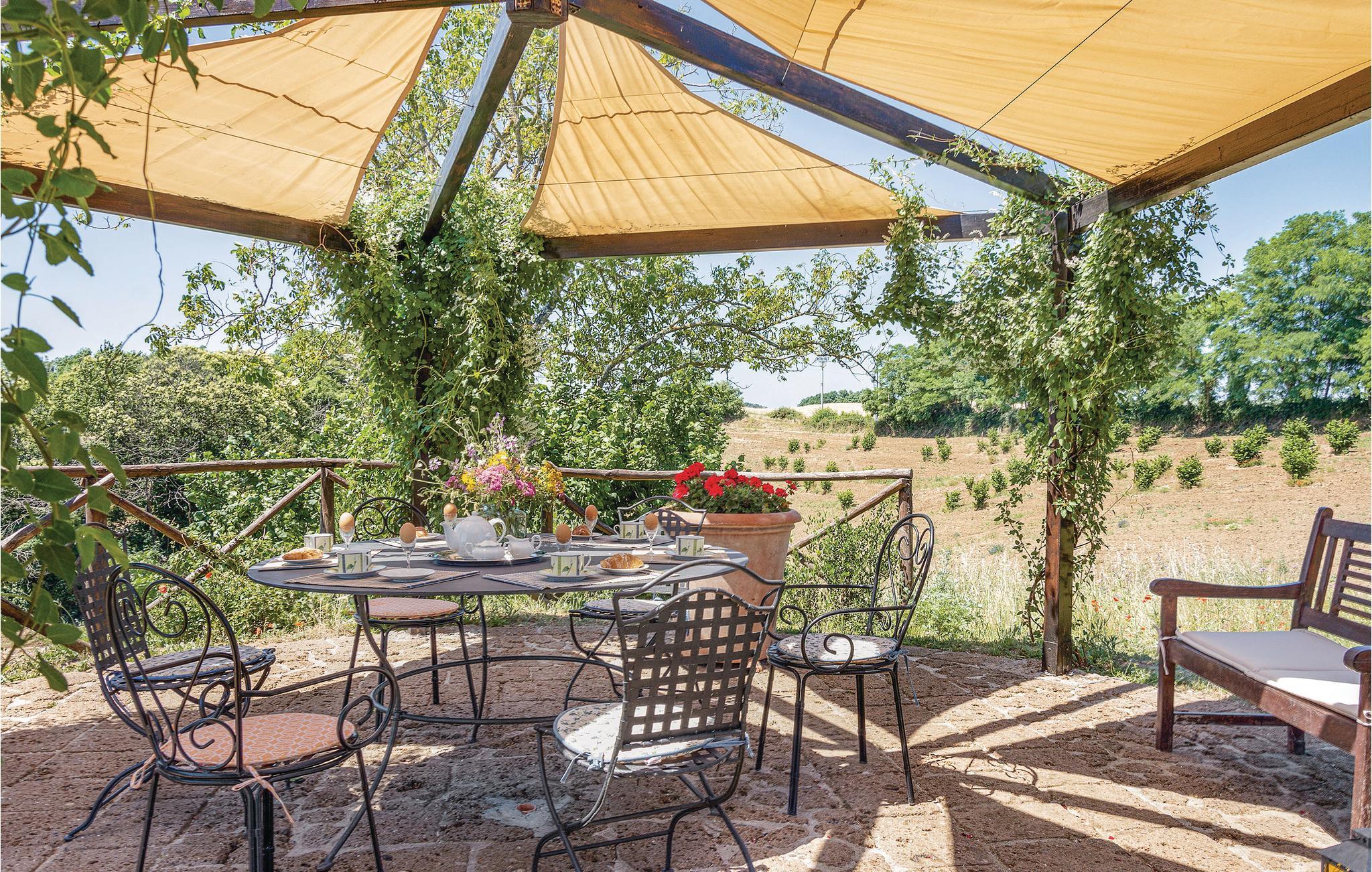 Her har I en stor del af et landhus med privat pool til rådighed. Feriehuset ligger på landet i bakkerne mellem regionerne Umbrien og Latium med en skøn panoramaudsigt. Feriedomicilet består af to separate enheder, der er forbundet med en smuk indre gård. Den meget diskrete ejer bor i en lille del af huset på samme grund og har helt egen indgang udefra. I kan slappe af på den indbydende overdækkede veranda med bord og stole, samt har store udendørs områder i haven og en grill til rådigheden. Den del af bygningen, som I beboer, er i to etager og smagefuldt indrettet og her er god plads. Husets beliggenhed er helt unik og alle der holder af natur er på rette sted. Der er et utal af interessante udflugtsmål: Civita di Bagnoregio, 7 km, Orvieto med sin vidunderlige domkirke 14 km, Bolsenasøen 14 km, Tuscania 45 km, Todi, 48 km og Tarquinia med sine velholdte etruskergrave, strande og havet 70 km. Vil I en tur til Rom (132 km) så tag motorvejen E35/A1 i Orvieto (17 km). Eller tag toget fra Orvieto Scalo og bliv sat af direkte i centrum af Rom.