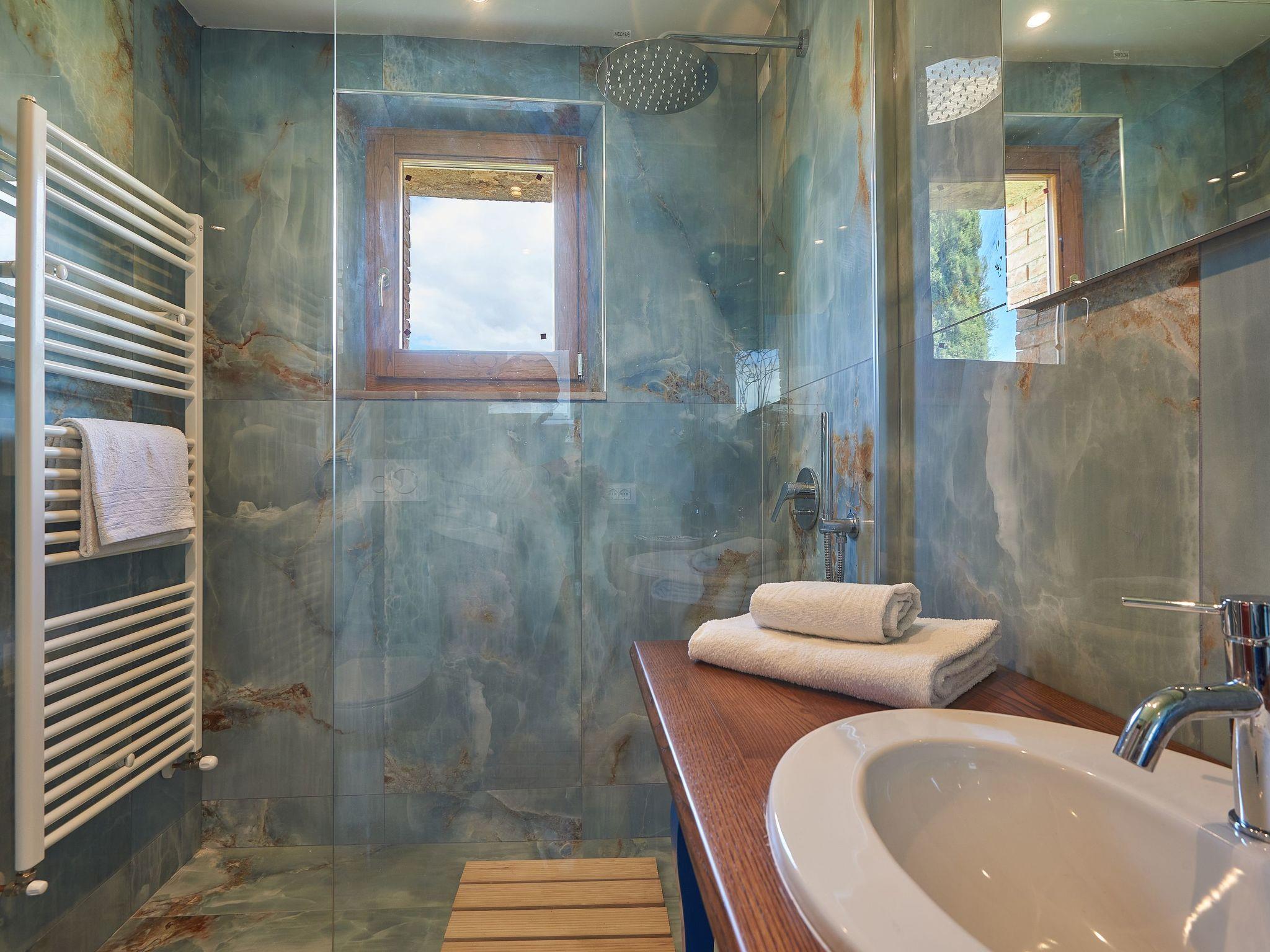 There is a large infinity pool, open from May to October, with panoramic views, and also a room with a washing machine for shared use, with a toilet, and a barbecue.