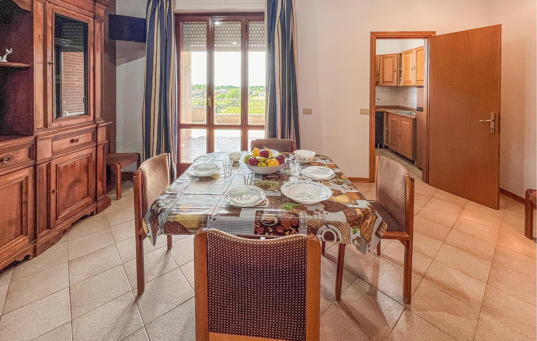 Velkommen til denne skønne lejlighed, der ligger i et charmerende feriekompleks i Tuoro sul Trasimeno sammen med flere andre lejligheder. Boligerne er funktionelt indrettede, ligger på forskellige etager og varierer i størrelse, så I har her en fantastisk destination, hvis I gerne vil rejse med en større flok eller flere vennefamilier. Alle lejligheder er veludstyrede i behagelige farveskalaer, som gør det nemt at slappe af efter en aktiv feriedag.