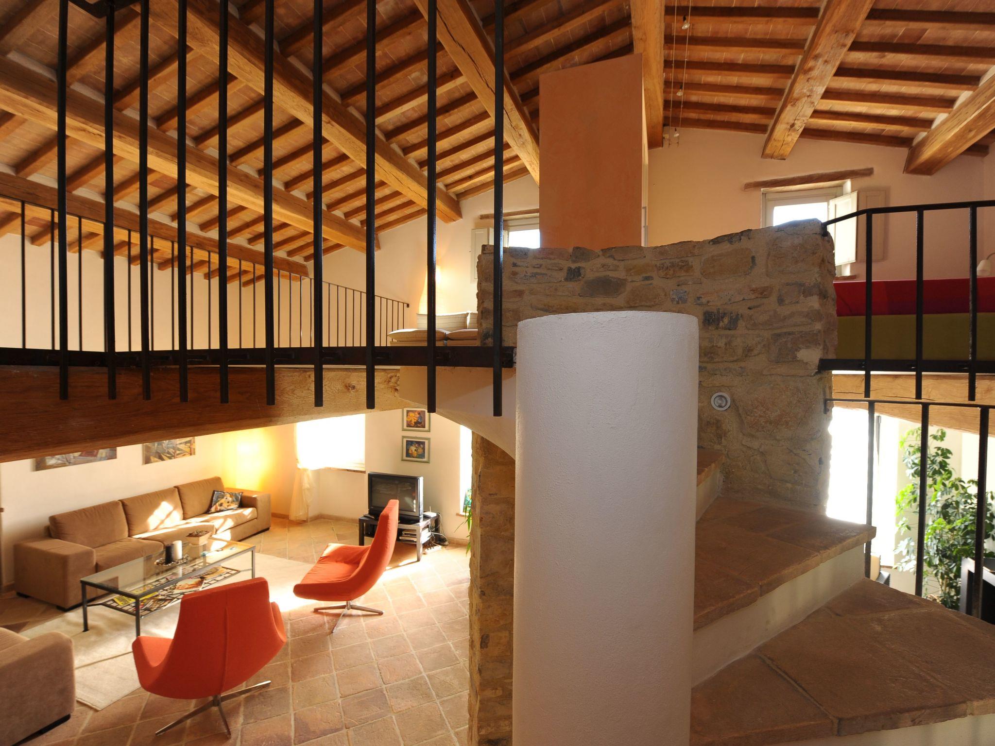 Il piano nobile è costituito da soggiorno, cucina e una prima camera matrimoniale con bagno. L'large living room has a fireplace, sofas and armchairs; the kitchen is modern and fully functional, with a view of the garden and pool. From the dining area with a table for ten people there is direct access to the pergola, also'esso comodamente attrezzato per pranzi estivi all'open. Above the living room is a large mezzanine, consisting of the second bedroom with bathroom, a hidden wardrobe to make it more private, and the relaxation area overlooking the living room. As can be seen in the photos, the bedroom on the mezzanine is open to the living room below, but thanks to the conformation of the mezzanine itself and the'armadio a muro, è impossibile vedere ciò che sta accadendo nella camera da letto sul soppalco. Una comoda scala a chiocciola in muratura collega il piano nobile sia con il soppalco sia con il piano sottostante. Quest'last is a laundry room, wine cellar, storage room, the other two double bedrooms with respective bathrooms, one with shower and the'altro con vasca. Dalle stanze da letto si accede ad un secondo pergolato, attrezzato con tavolo e sedie per la colazione in giardino. Tutte le finestre e le porte sono munite di zanzariere. La struttura può ospitare comodamente fino a otto adulti e un bambino ed è provvista di riscaldamento autonomo, aria condizionata (con oneri aggiuntivi), TV satellitare e Wi-Fi gratuito."