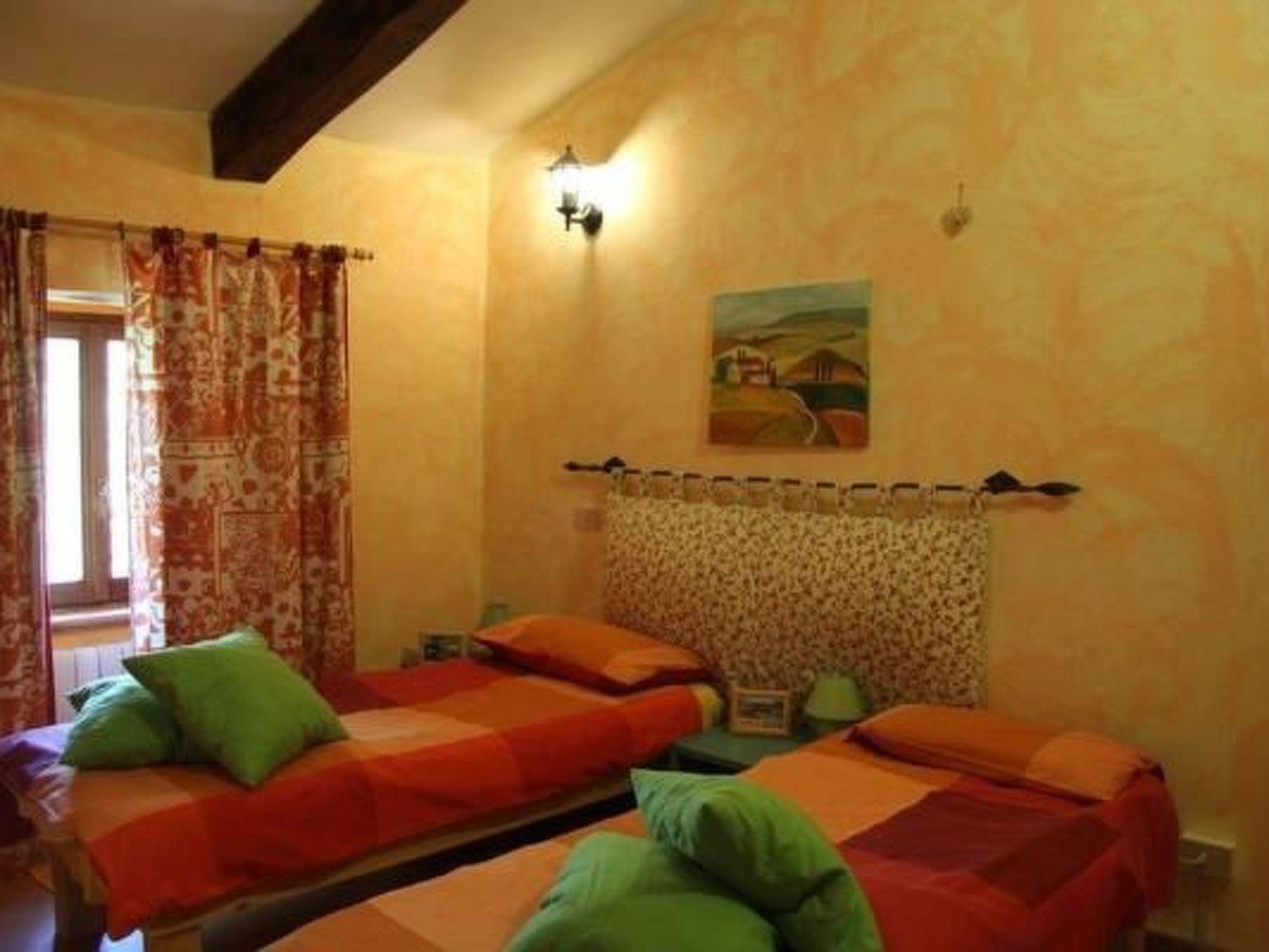 Die Inneneinrichtung von Ca' Piero with its cosily furnished double rooms with private bathrooms, individually designed with great attention to detail. Each room radiates the warmth and hospitality of the south. The small living room with sofa bed, fireplace and pellet stove is ideal for cosy hours together. Two fully equipped kitchens and a large dining room with an impressive open fireplace create the perfect setting for culinary experiences in convivial company. Modern amenities such as a stereo system, DVD player, television, internet connection, an extensive library and games collections provide entertainment and comfort.