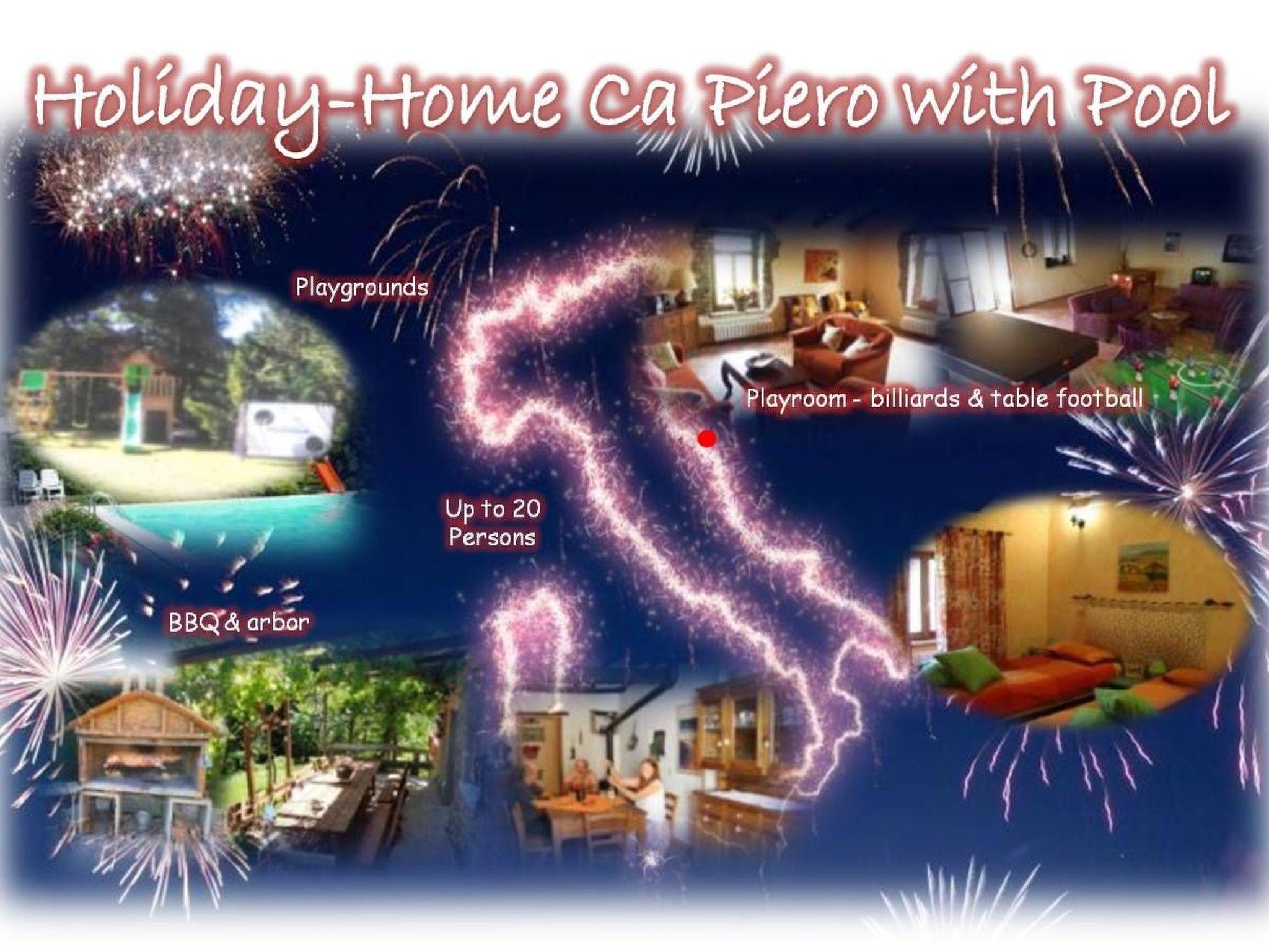In the outdoor area, i.e. in the park-like garden, the house offers many possibilities for families with children or groups: Whether a large barbecue with a vine arbour and corresponding seating, a covered terrace, an antique pizza oven or, for refreshment, the large pool. While you relax, the children can play in the children's playground with tower, slide and swing or in the other children's playground with sandpit, Indian tent and seesaw.