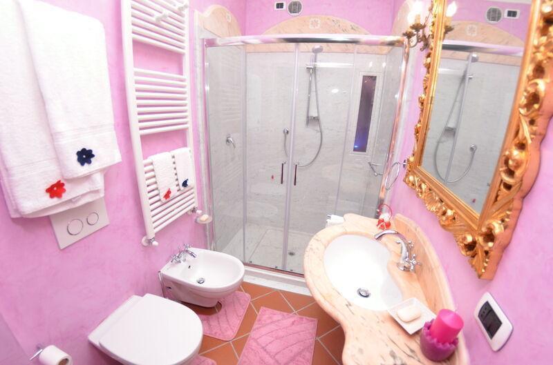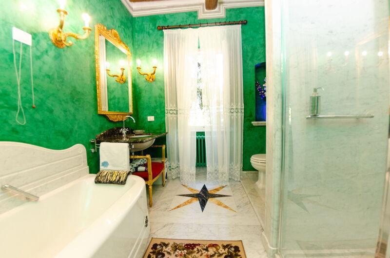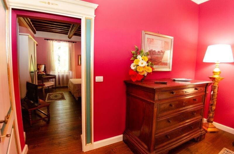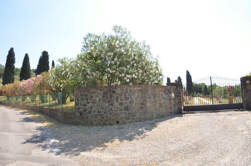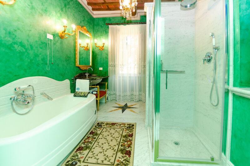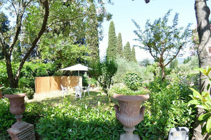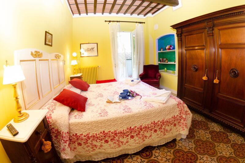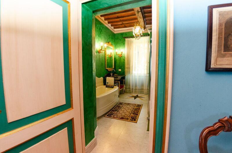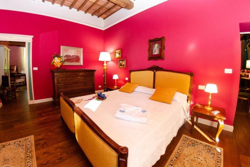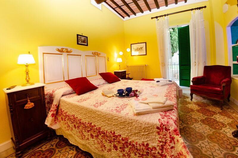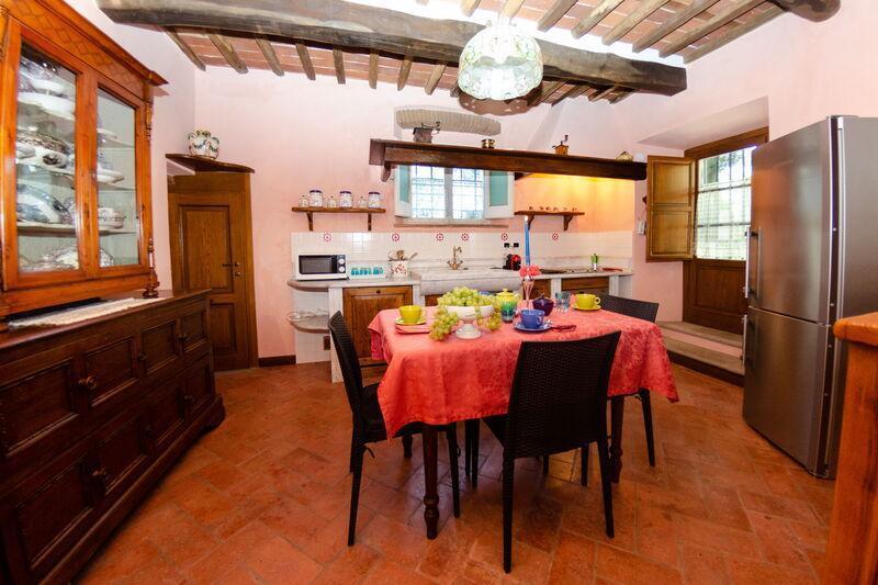Magnificent villa dated 600, completely renovated with period furniture surrounded by a completely fenced huge garden/property of 50’000 sqm! Wonderful swimming pool at the exclusive use of the guests (8 x 4m, depth: 1.20m)Parking within the property.The owner lives in the dependence, attached to the villa, with independent entrance – he will obviously respect to the full guests’ privacy. The garden and the swimming pool are at the exclusive use of the guests. PETS ALLOWED ON REQUEST.There is a little chapel next to the villa, perfectly restored, ideal to organize a private wedding!Visit the surroundings!The villa is located at the border of the village of Uzzano, 900 m from a grocery and shops, 500m from an excellent restaurant. Guests may reach within an easy reach Montecatini Terme at only 7 km, Monsummano at 13km with its splendid therapeutic springs Grotta Giusti and golf course, at 30 km from Lucca, 60 km from Florence, 45 km from Pisa and the sea. You may have wonderful strolls in the surroundings – discover the little villages of the area: Buggianio, Uzzano Castello, Massa e Cozzile.Visit the surroundings!The villa is located at the border of the village of Uzzano, 900 m from a grocery and shops, 500m from an excellent restaurant. It is possible to recharge electric cars at the nearby supermarkets. Guests may reach within an easy reach Montecatini Terme at only 7 km, Monsummano at 13km with its splendid therapeutic springs Grotta Giusti and golf course, at 30 km from Lucca, 60 km from Florence, 45 km from Pisa and the sea. You may have wonderful strolls in the surroundings – discover the little villages of the area: Buggianio, Uzzano Castello, Massa e Cozzile. Parking within the property.The owner lives in the dependence, attached to the villa, with independent entrance – he will obviously respect to the full guests’ privacy. The garden and the swimming pool are at the exclusive use of the guests. There is a little chapel next to the villa, perfectly restored, ideal to organize a private wedding!Entrance on the ground floor: spacious entrance hall with table, wooden benches, dining room with dining table, fire-place, fully fitted kitchen with induction hob, electric oven, microwave, dishwasher, fridge/freezer, coffee-machine, fire-place, angle with 2 upholstered chairs, SAT-TV, exit onto a patio equipped with table, chairs, barbeque, sun-umbrella, fountain, 1 ante-bathroom with marble basin, 1 bathroom with shower, wc, bidet, basin, locker room.Marble staircase to the 1st floor: spacious, centrally located, living room with table, chairs, upholstered chairs, 2 pouf beds, parquet tiled floor, all 4 bedrooms are connected with this living room. 1 spacious double bedroom with cupboard, chest of drawers, SAT-TV, exit onto a big terrace (40 sqm) with swing and stunning views onto the hills, 1 bedroom with 1 double bed with cupboard, SAT-TV, terracotta tiled floors, fresco – it is said that Napoleon Bonaparte slept in this bedroom, 1 double bedroom with cupboard, SAT-TV and 1 double bedroom with exit onto a terrace (12 sqm), cupboard, SAT-TV – connecting door from this bedroom to the French sized bedroom, 1 big and beautiful bathroom with green marble, tub, separate shower, basin, wc, bidet. Stairs to the 2nd floor: 1 big bathroom with tub/shower, washing machine, wc, bidet and basin. All bathrooms dispose of a hair-dryeer.The villa is furnished with great care, cheerful painted walls (pink, light blue, green and red), beamed ceilings, terracotta tiled floors, period furniture, luxury tapestry, air-conditioning in all bedrooms, wifi included.It is not permitted to charge electric cars by using the electricity provided by the Villa.Pool opened from beginning of May until end of September, for the exact dates please contact us.