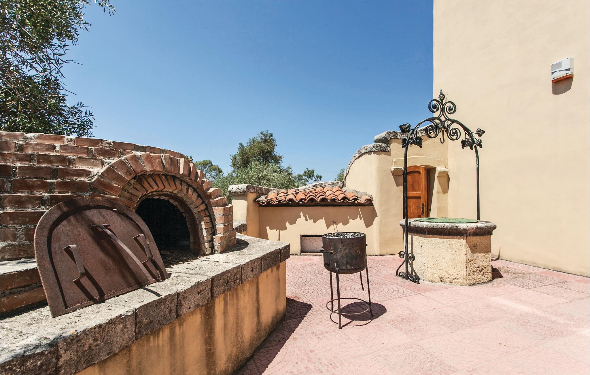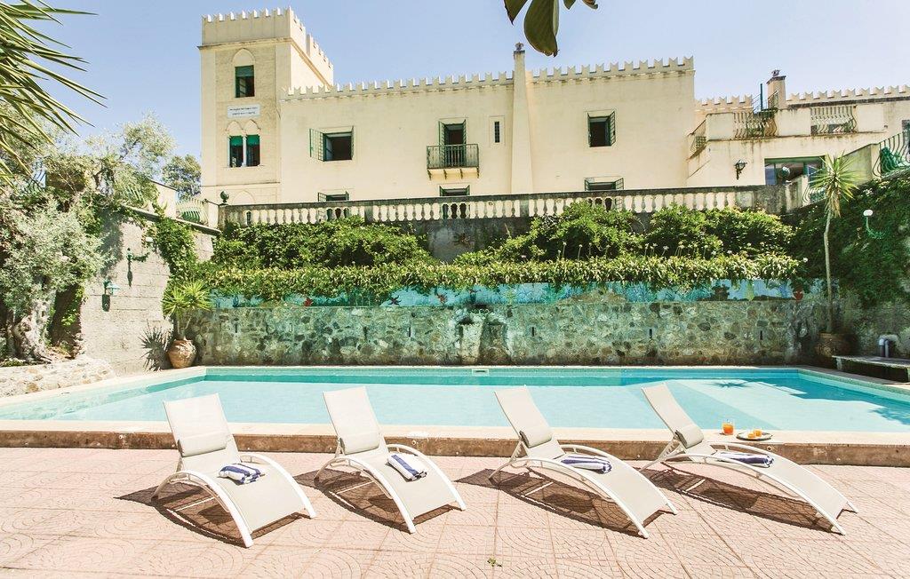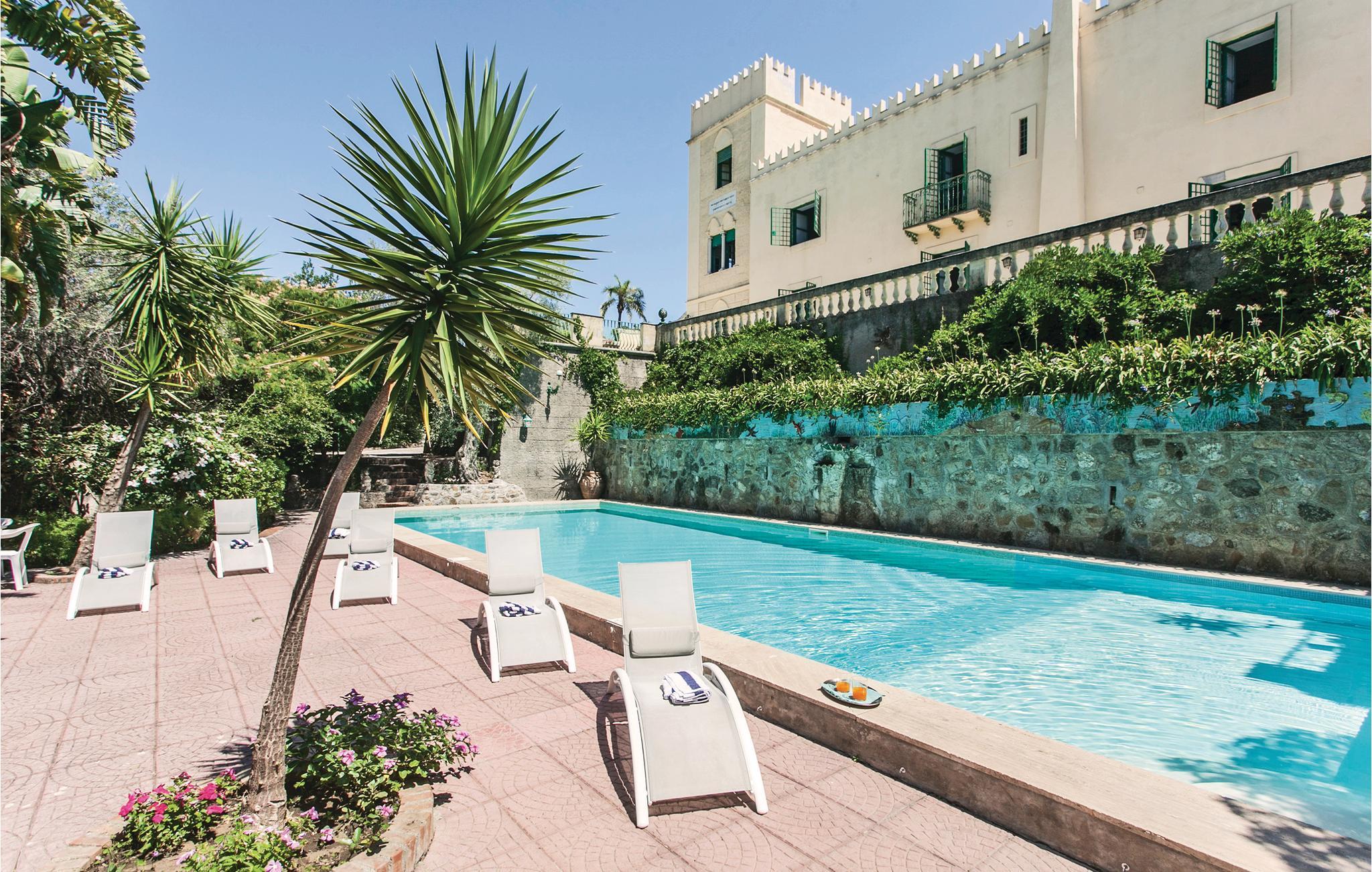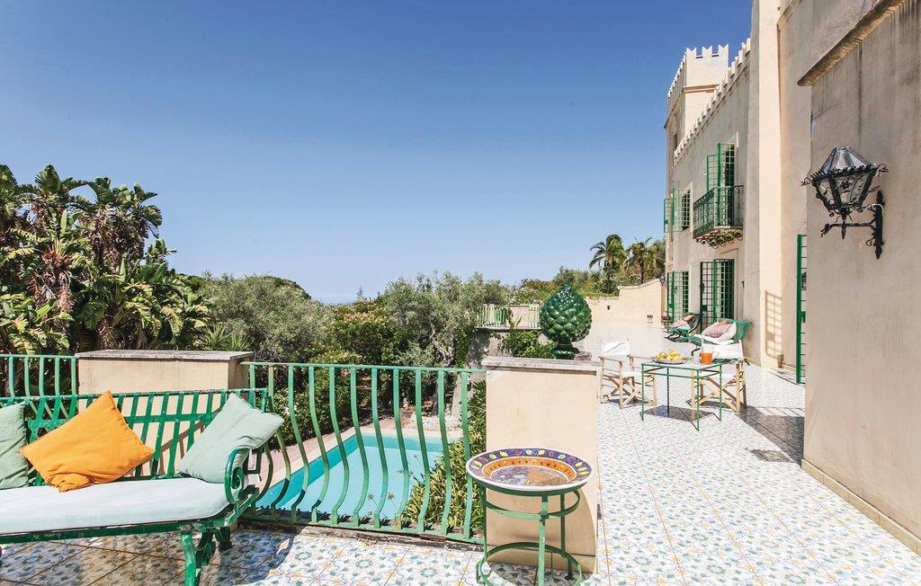 Slottet er omgivet af flere store solterrasser midt mellem palmer, bougainvillea og enorme streliti. Den flotte pool (17x7m, 2m dyb) ligger på en af ??disse terrasser. Boligen er indrettet med elegante møbler og udsøgt smag, fra den store spisestue til det vidunderlige bibliotek med mange gamle og dyrebare bind. Varme og klimaanlæg efter behov.