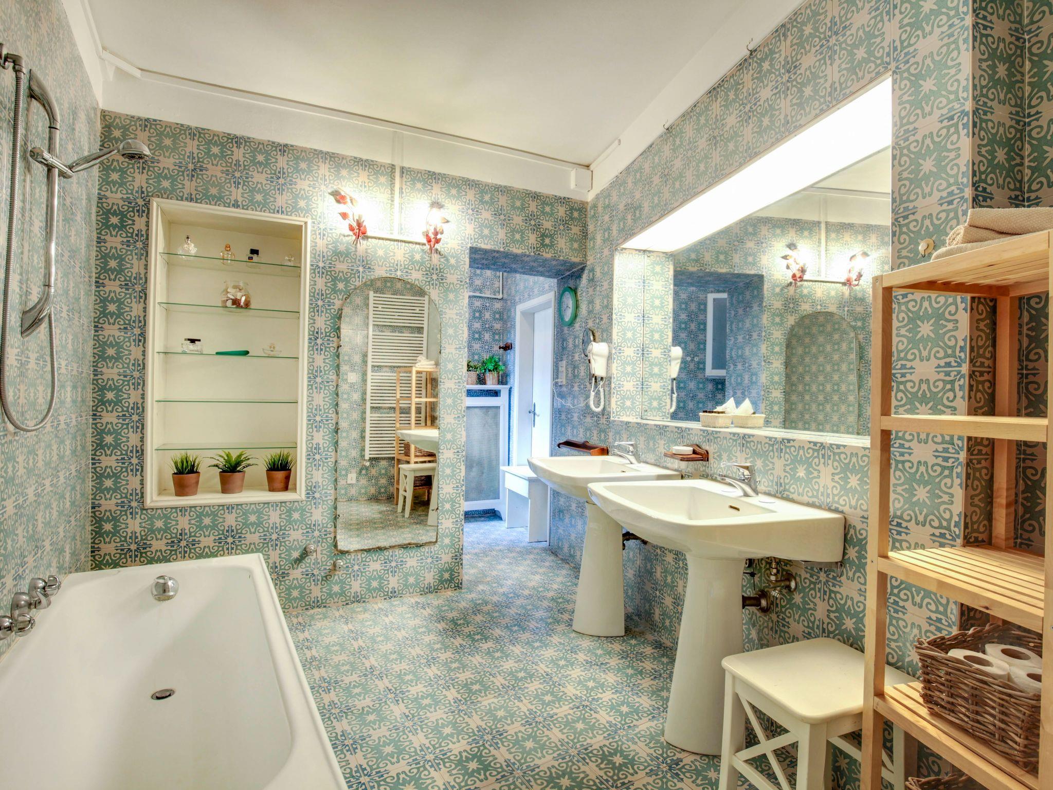 It consists of 1 double bedroom, 1 large room with 1 double bed and 1 single bed, a living room, a kitchen and two bathrooms (with shower and bathtub). The flat is equipped with WIFI internet connection, dishwasher, washing machine, safe, hairdryer, iron and ironing board, cot. The kitchen is fully equipped with everything you need to eat at home including crockery, pots and cutlery, coffee maker, water boiler and toaster, electric and microwave oven, dishwasher.