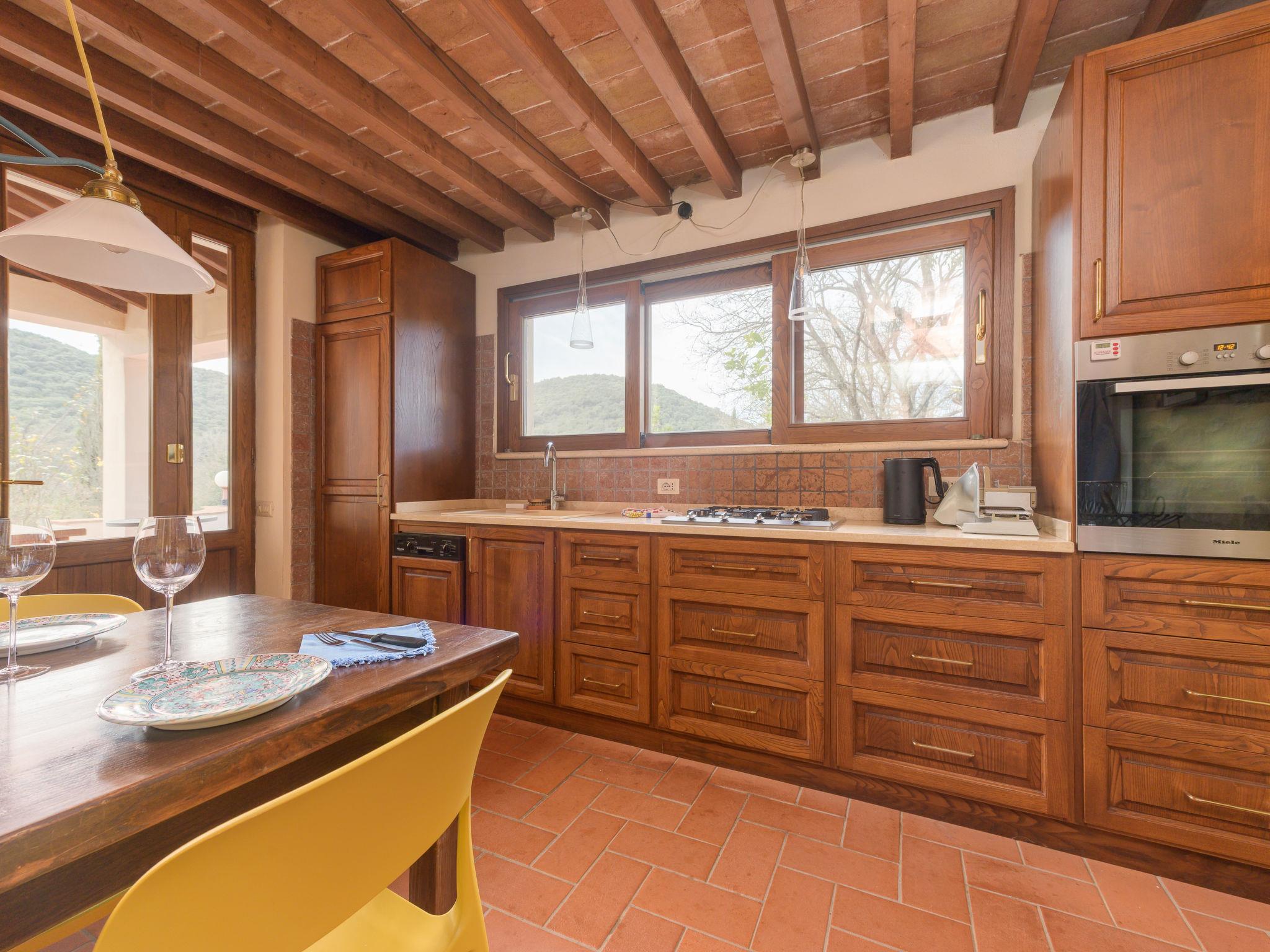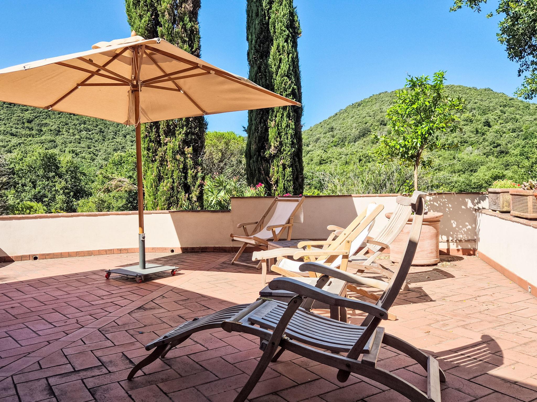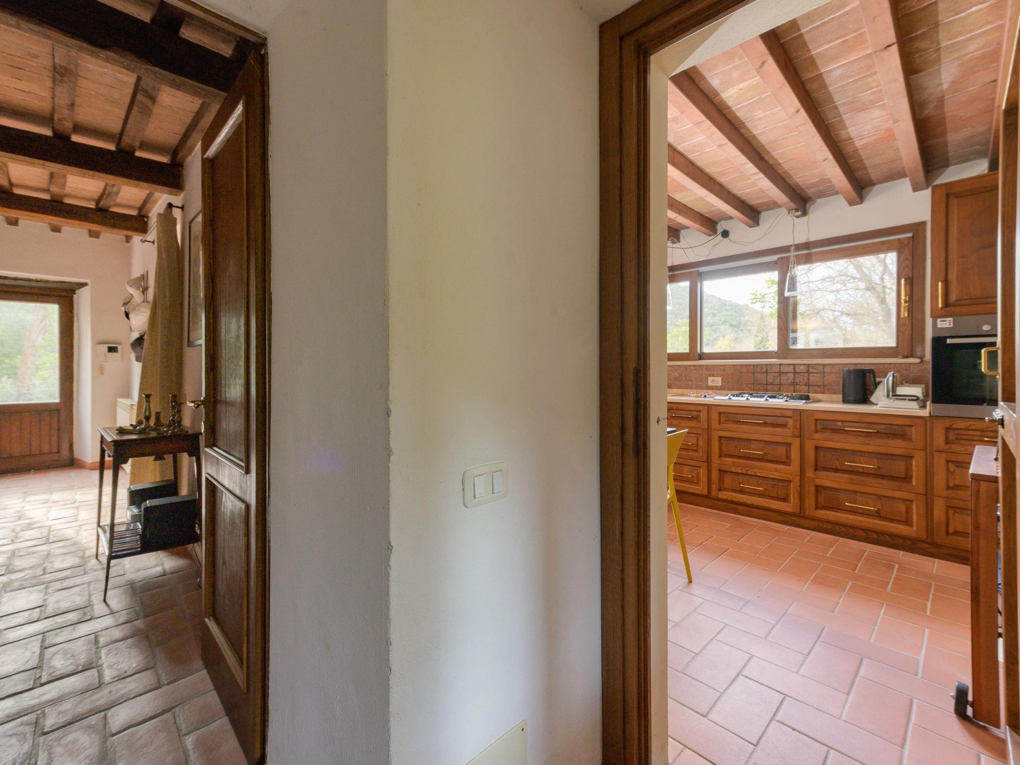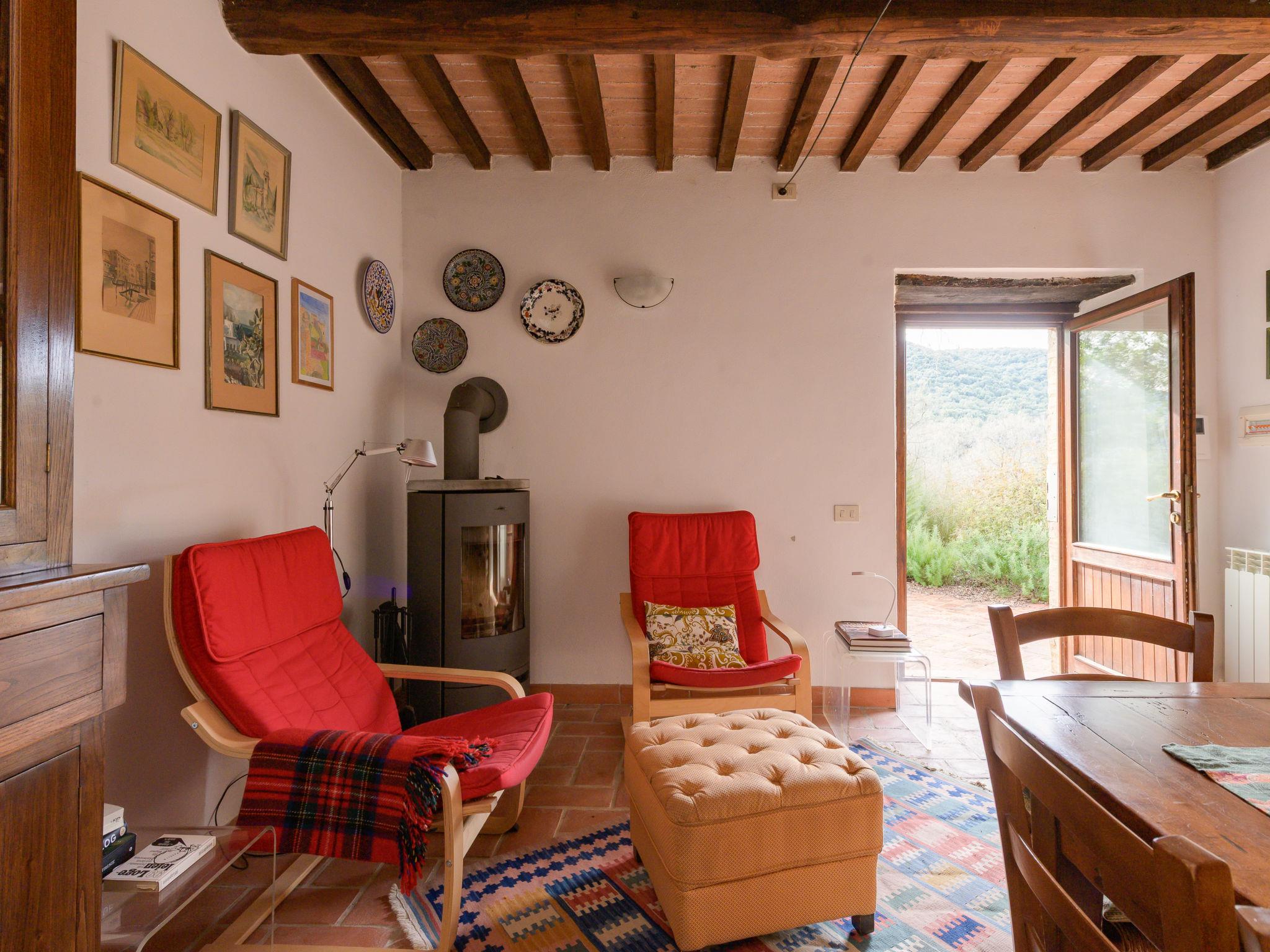 Cosy, rustic house "La Valle", surrounded by trees and meadows. 4 km from the centre of Buriano, 8 km from the centre of Vetulonia, in a quiet, sunny position on top of a hill, 15 km from the sea, 15 km from the beach, in the woods. Private: natural state property 3 ha, large garden (not fenced). 2 km long bumpy, narrow motor access (via unmade road, mountain road). 4x4 car recommended in winter. Parking on the premises. Supermarket 7 km, restaurant 4 km, bus stop 5 km, sandy beach "Castiglione della Pescaia" 15 km, thermal baths "Venturina" 40 km. Sports harbour 15 km, golf course (18 hole) 25 km, riding stable 3 km, walking paths from the house 50 m. Nearby attractions: Tirli / Caldana 11 km, Grosseto / Le Rocchette 20 km, Punta Ala 30 km, Castiglione della Pescaia 14 km. Hiking paths: Riserva Naturale Diaccia Botrona 16 km. Please note: car recommended. 1st floor is closed and not occupied.