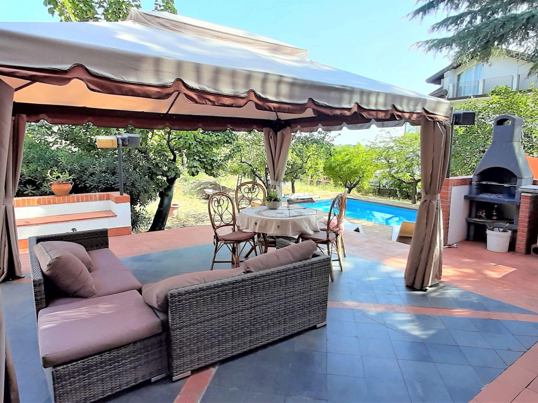 The charm of Casa Siciliana extends to its exterior where you can enjoy a private swimming pool surrounded by an inviting solarium, perfect for cooling off on sunny days. A terrace with a large furnished gazebo and barbecue area offers the ideal space for al fresco dining, while the view of Mount Etna adds a touch of magic to the ambience. All this is enhanced by the presence of free WIFI and private parking for your convenience.