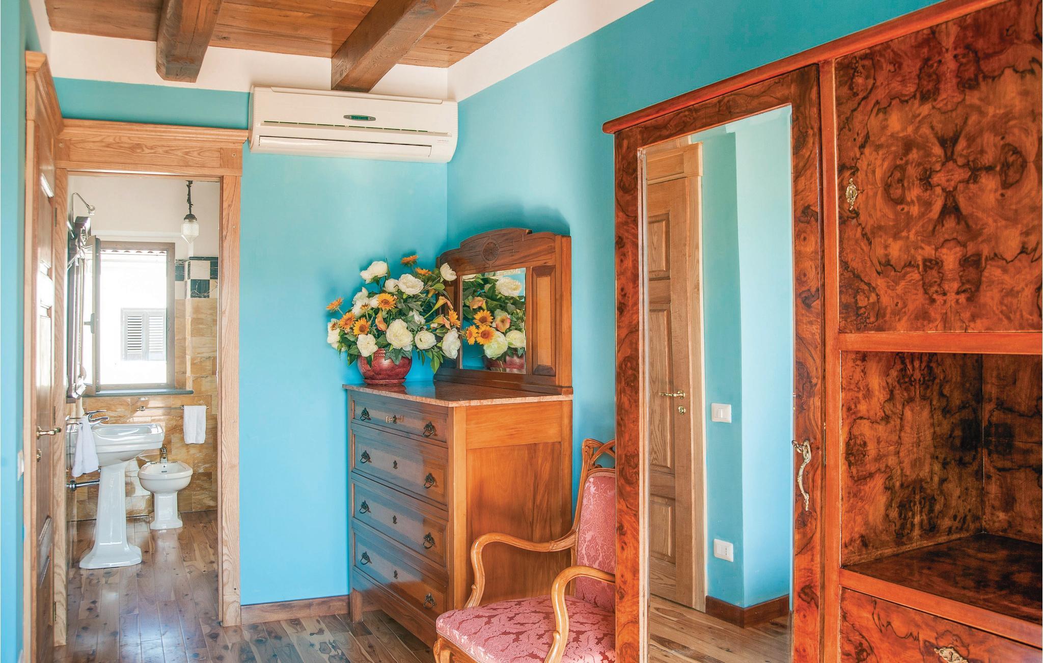 Denne dejlige halvdel af et dobbelthus med egen swimmingpool ligger i Vibonati, en typisk by på Cilentos sydligste spids, i regionen Campanien i syditalien. Fra huset er der kun to km til kysten. Fra den store, overdækkede terrasse med havemøbler er der udsigt over poolen og det omkringliggende landskab. Tilbring nogle dejlige, afslappende feriedage ved poolen og hyggelige aftener sammen med familie eller venner, og kom helt ned i gear.