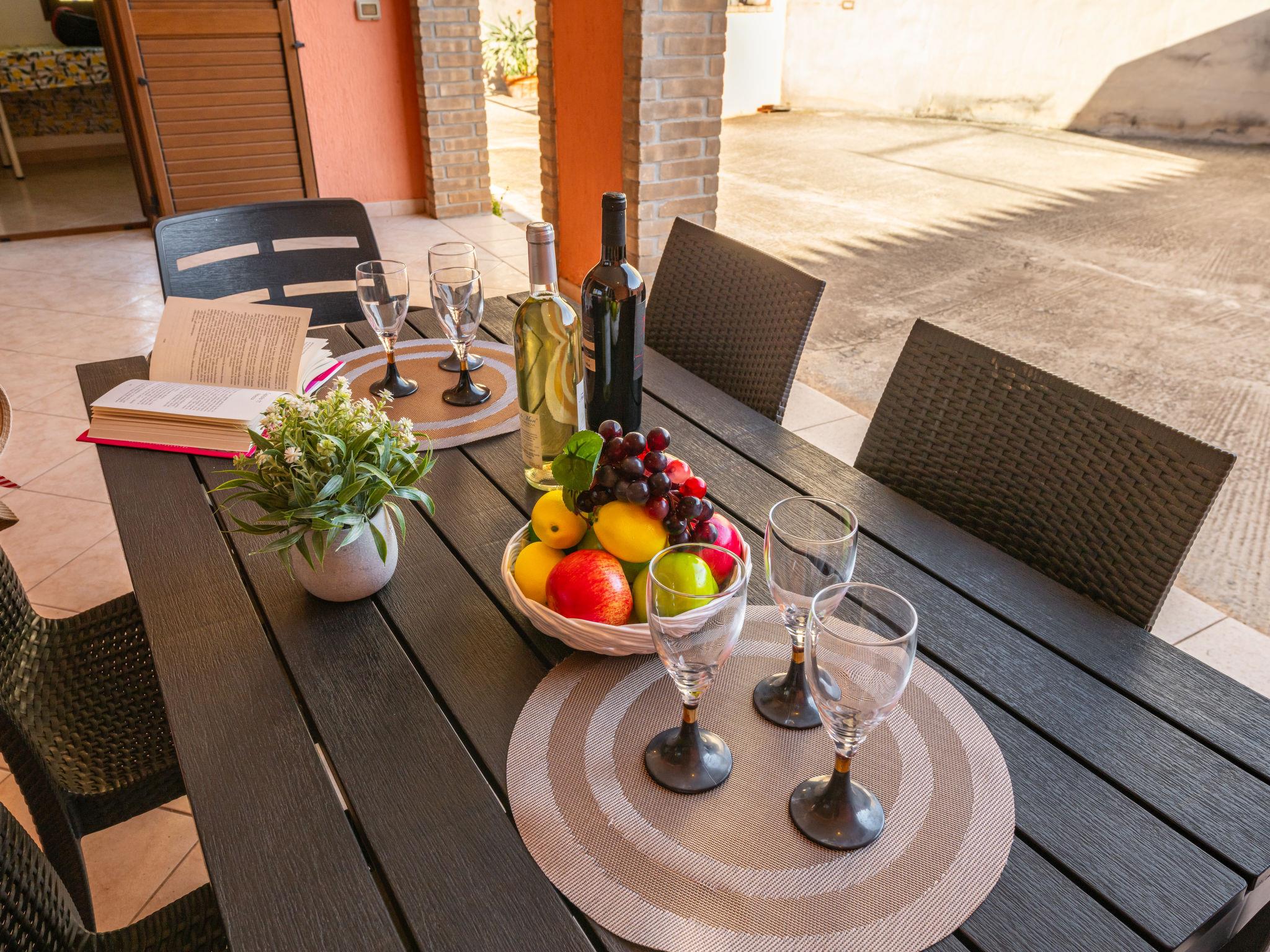 "Rosy", 5-room house 110 m2 on 2 levels, on the ground floor. Comfortable and cosy furnishings: large living/dining room with dining table and digital TV. Exit to the veranda. Kitchen (oven, dishwasher, 4 gas rings, kettle). Shower/bidet/WC. Upper floor: 1 double bedroom. Exit to the balcony. 1 small room with 2 beds. 1 room with 2 beds. Exit to the balcony. Shower/bidet/WC. No heating option. Terrace roofed. Terrace furniture, barbecue. View of the town. Facilities: washing machine, children's high chair, baby cot (extra), hair dryer. IT111105C2000P7881