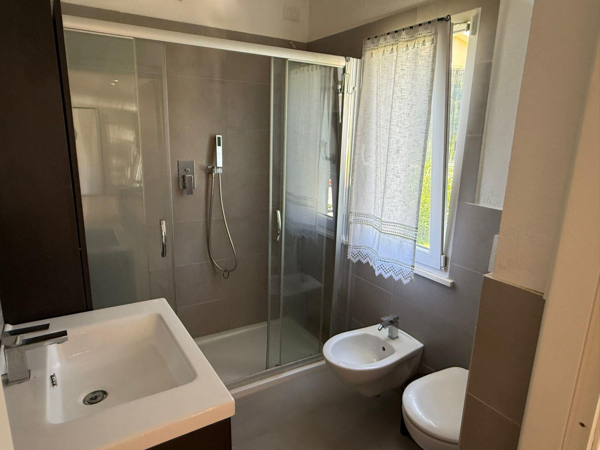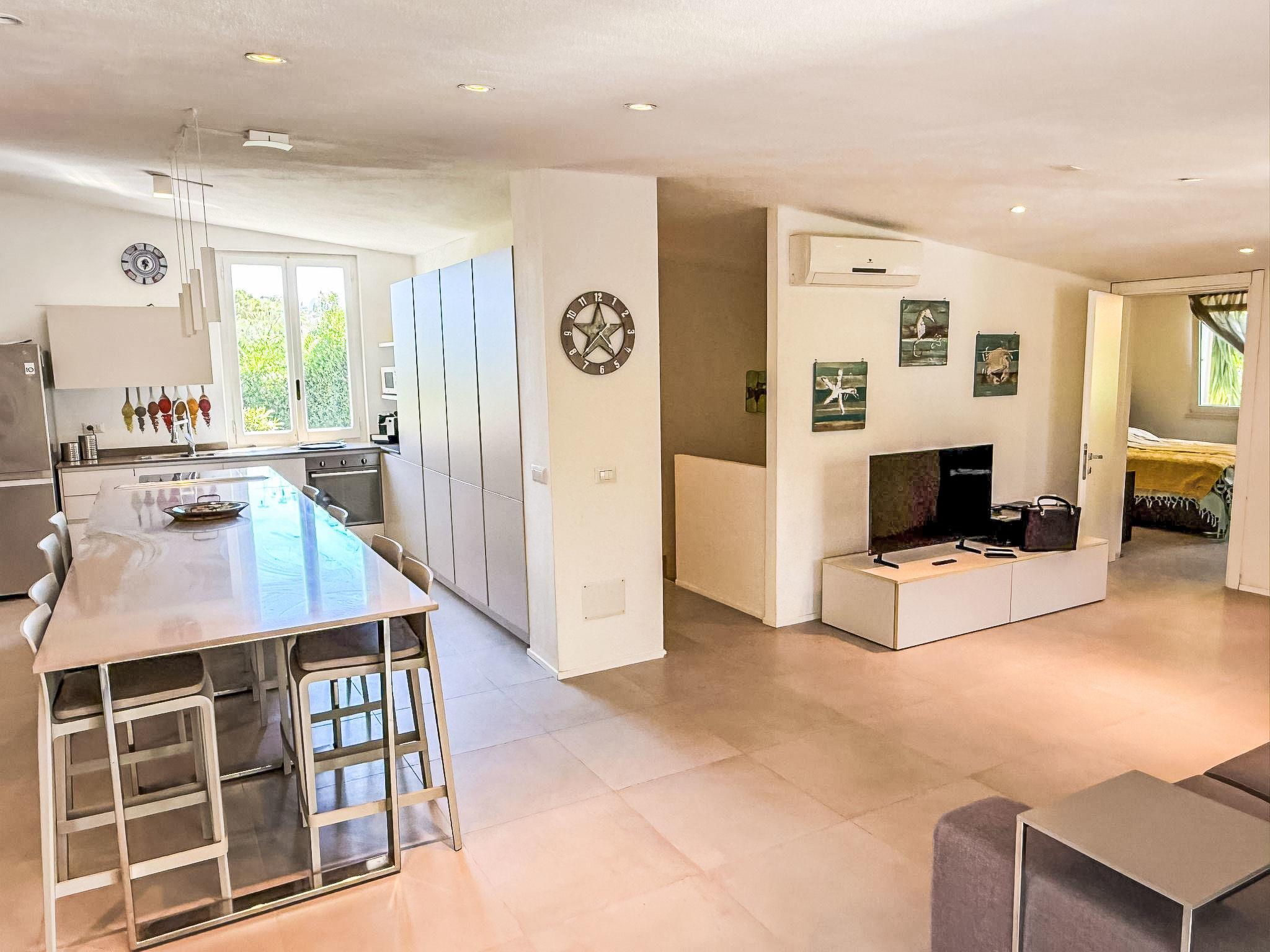"Villa Mandorli", 6-room villa 150 m2. Comfortable and tasteful furnishings: living/dining room with TV and air conditioning. Exit to the garden, to the veranda. 1 double bedroom. 1 room with 3 beds. Large kitchen (oven, 4 ceramic glass hob hotplates, toaster, kettle, microwave, electric coffee machine). Exit to the garden. Shower/bidet/WC. Air-conditioning, forced-air heating. Heating not available in all rooms. On the lower ground floor: 1 room with 2 beds. 2 double bedrooms. Shower/bidet/WC. Large patio roofed, large garden. Terrace furniture, barbecue. View of the countryside. Facilities: washing machine, children's high chair, baby cot (extra), hair dryer. Internet (WiFi, free). Parking at the house. Please note: suitable for families. Non-smoking house. Smoke alarm, fire extinguisher. When there are less than the maximum number of guests staying at the property, not all of the bedrooms will be available for use. IT111105C2000S5052