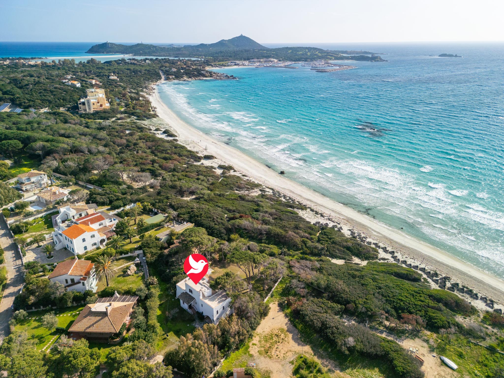 Very beautiful villa, 2 storeys, detached, surrounded by trees. 2 km from the centre of Villasimius, in the district Campolongu, in a sunny position residential area (villas), 50 m from the sea, in the countryside. For shared use: outdoor shower. Private: large, beautiful garden (fenced) wildlife garden and trees. Tennis, boules, parking on the premises. Supermarket 1 km, restaurant, bar 400 m, bus stop "via Roma La Lanterna" 3 km, railway station "Cagliari" 55 km, ferry "Cagliari" 55 km, sandy beach "Dei Bambini e delle conchiglie" 50 m. Sports harbour 1.5 km, marina 1.5 km, golf course (18 hole) 1.5 km. Nearby attractions: Punta Molentis 3 km, Costa Rei 15 km, Mari Pintau 35 km, Cagliari 50 km. Please note: car recommended. Fishing [permit required]. Loading and unloading of baggage is possible at the holiday house. Animals in the neighbourhood. Neighbourhood highly sensitive to noise. Quietness and good behaviour expected.