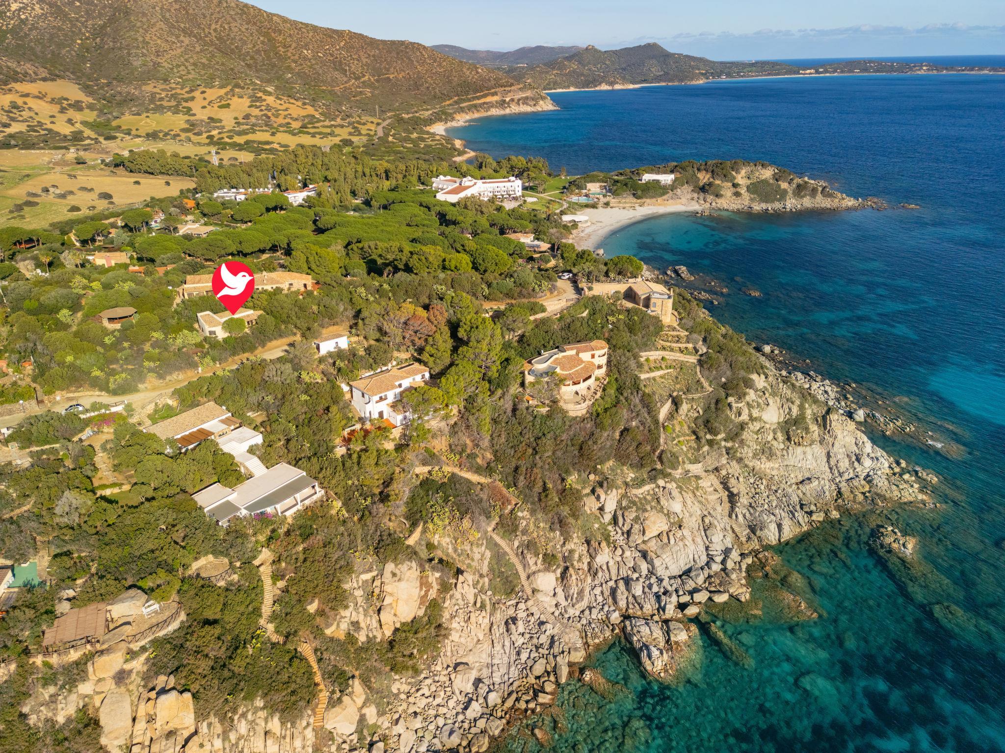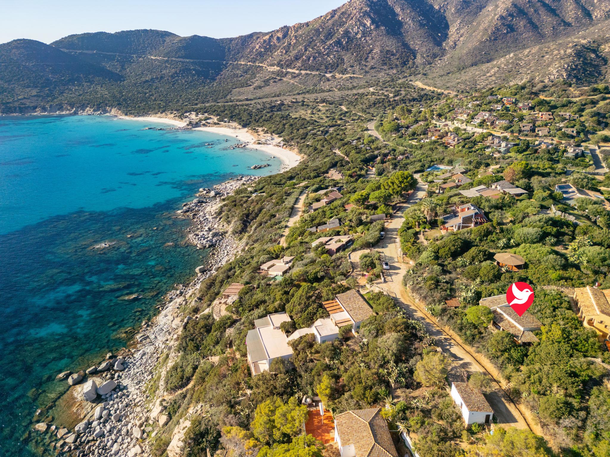 Beautiful residence "Capo Boi", surrounded by trees and meadows. 6 km from the centre of Villasimius, 300 m from the sea, 300 m from the beach, in the countryside. Private: property (fenced). 500 m long steep motor access (via unmade road). Public parking on the road. Supermarket 2 km, restaurant 2 km, bus stop "Capo Boi" 500 m, railway station "Cagliari" 50 km, ferry "Cagliari" 50 km, sandy beach "Capo Boi" 300 m. Sports harbour 10 km, golf course (18 hole) 6 km. Nearby attractions: Punta Molentis 12 km, Costa Rei 20 km, Cagliari 50 km. Please note: car recommended. Guarded residence. Residence with electric gates.