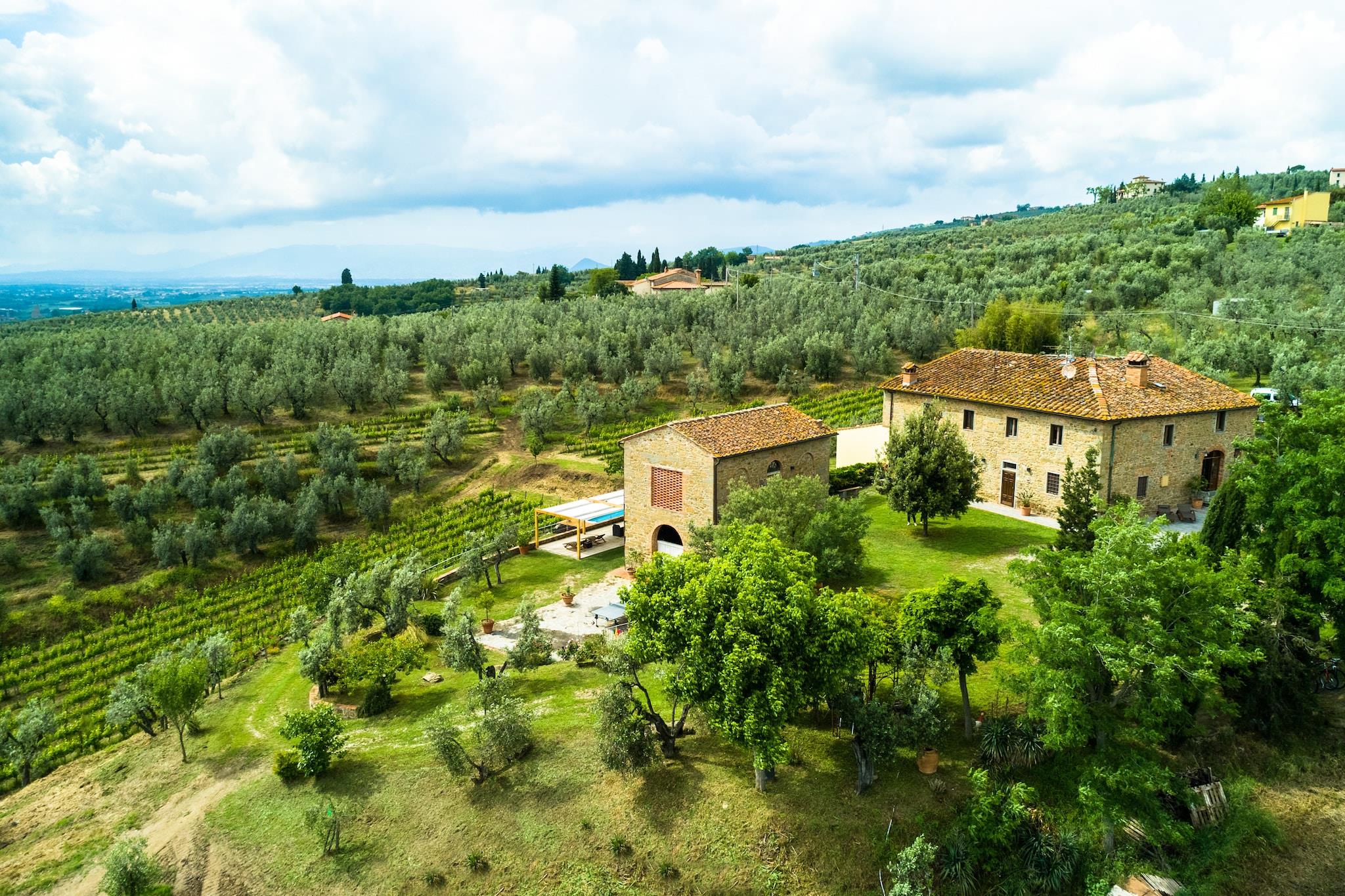 Gård i Vinci med pool og udsigt over Toscana